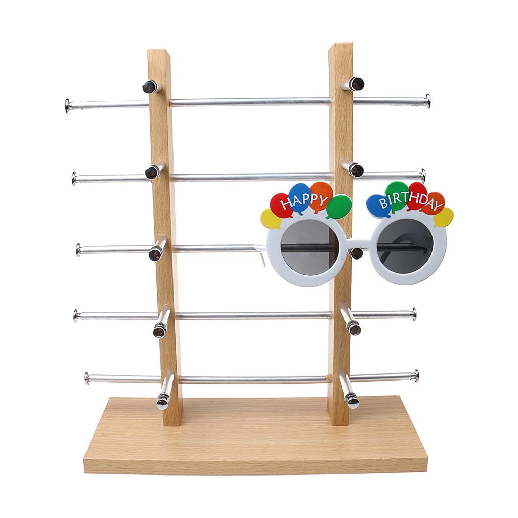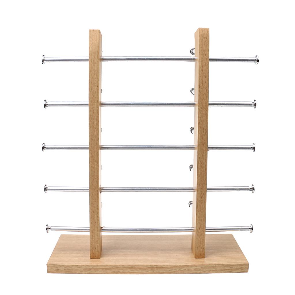 5-Layer Sunglasses Eyeglasses Display Wooden Frame Rack Stand Holder Organizer Silver