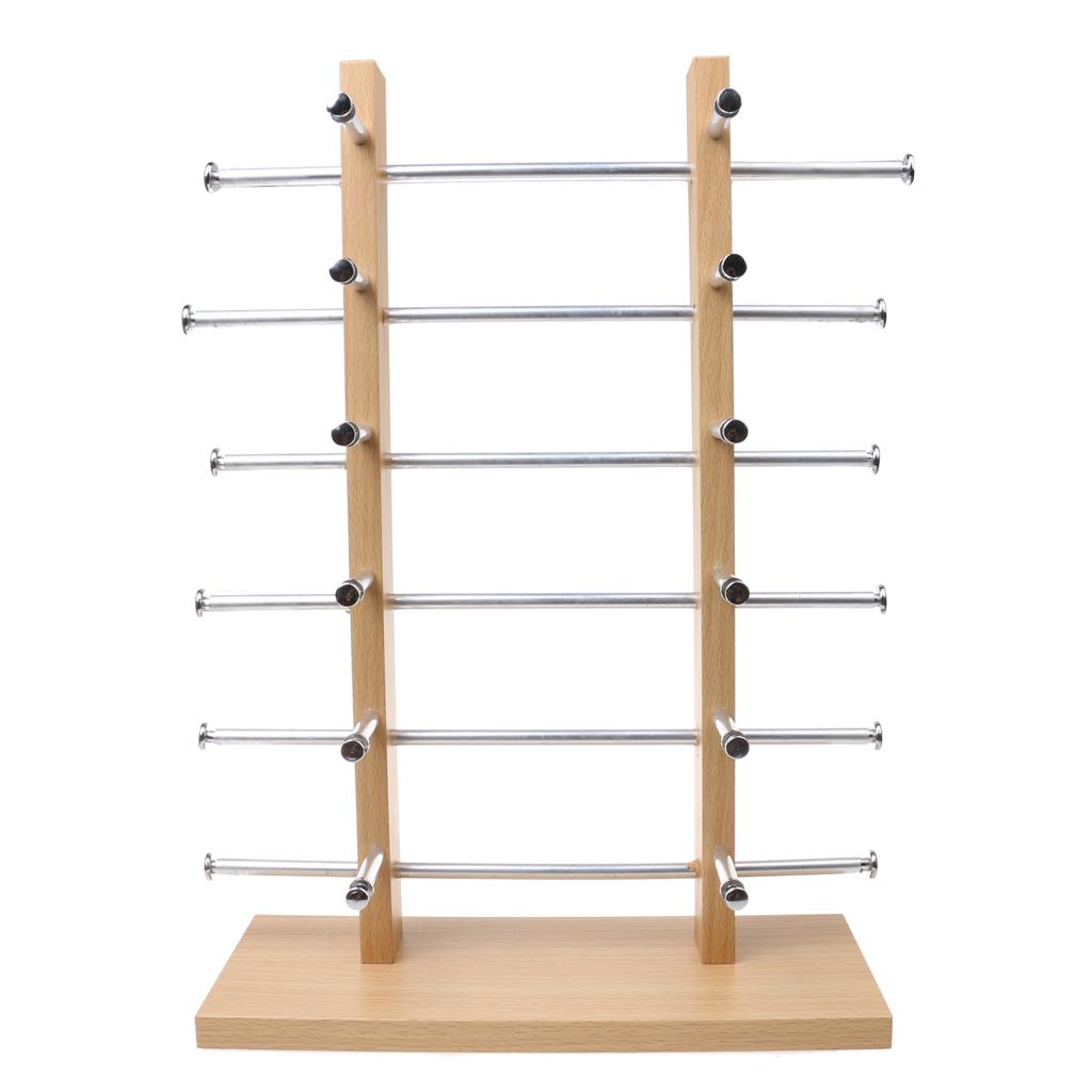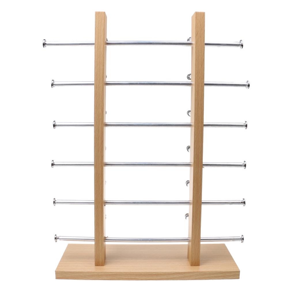 6-Layer Sunglasses Eyeglasses Display Wooden Frame Rack Stand Holder Organizer Silver
