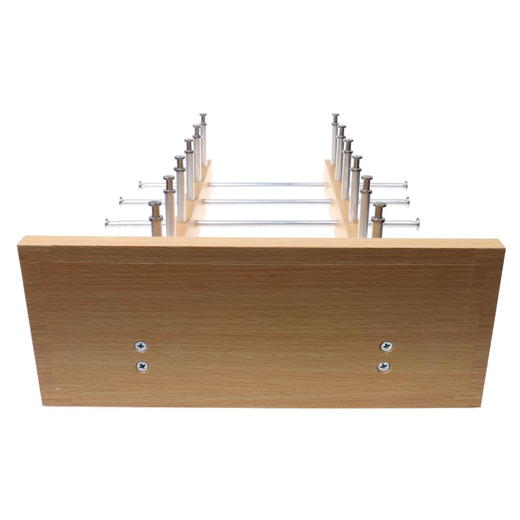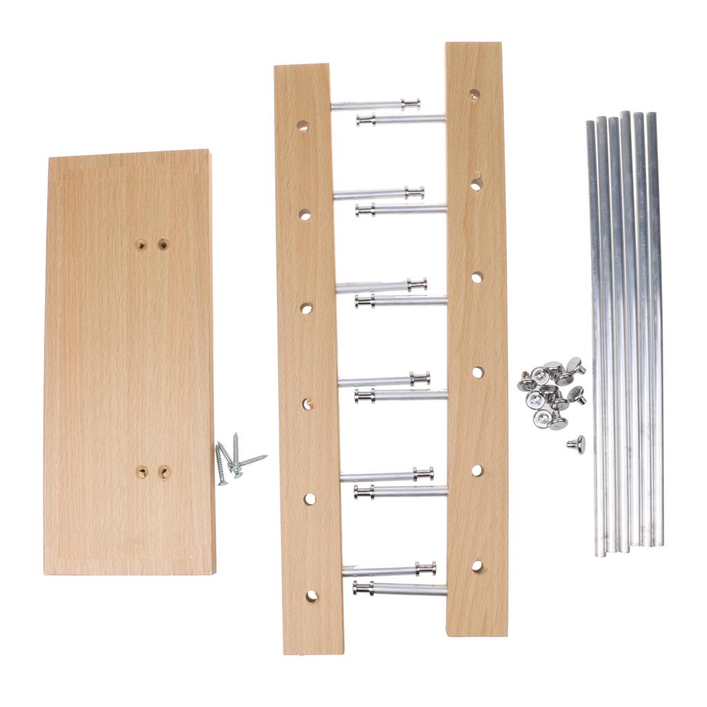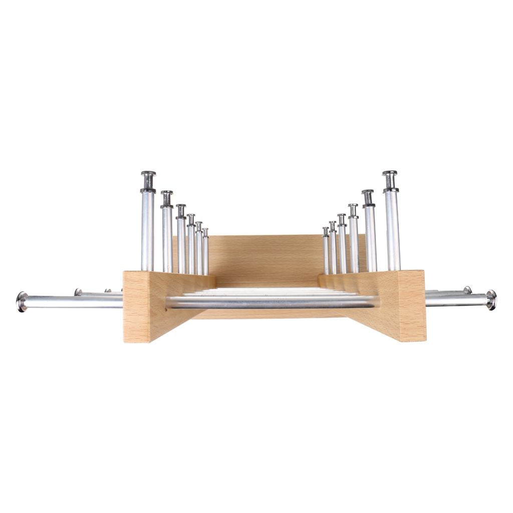Please push the metal bar through holes on base plate and wood bars slightly, be carefully and poke the hole-film one by one, outside to in.