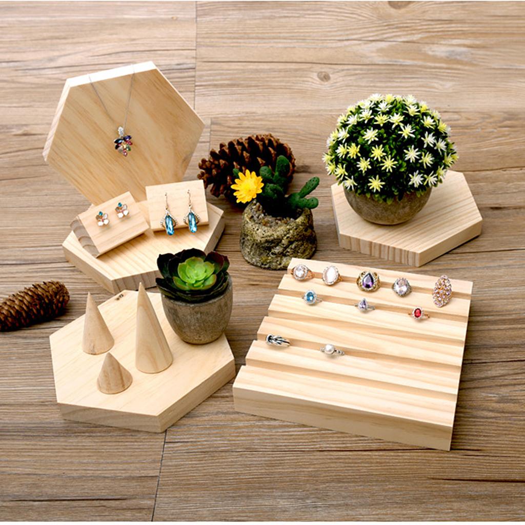 Plain Wooden Ring Jewelry Display Holder Tray Rack Organizer