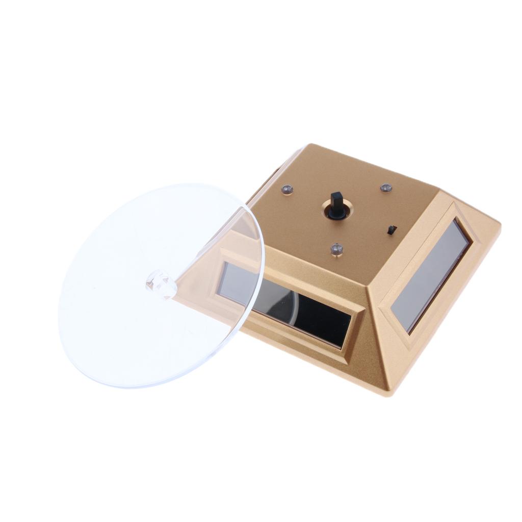 Solar Powered Rotating Jewellery Mobile Phone Ring Watch Display Stand Gold