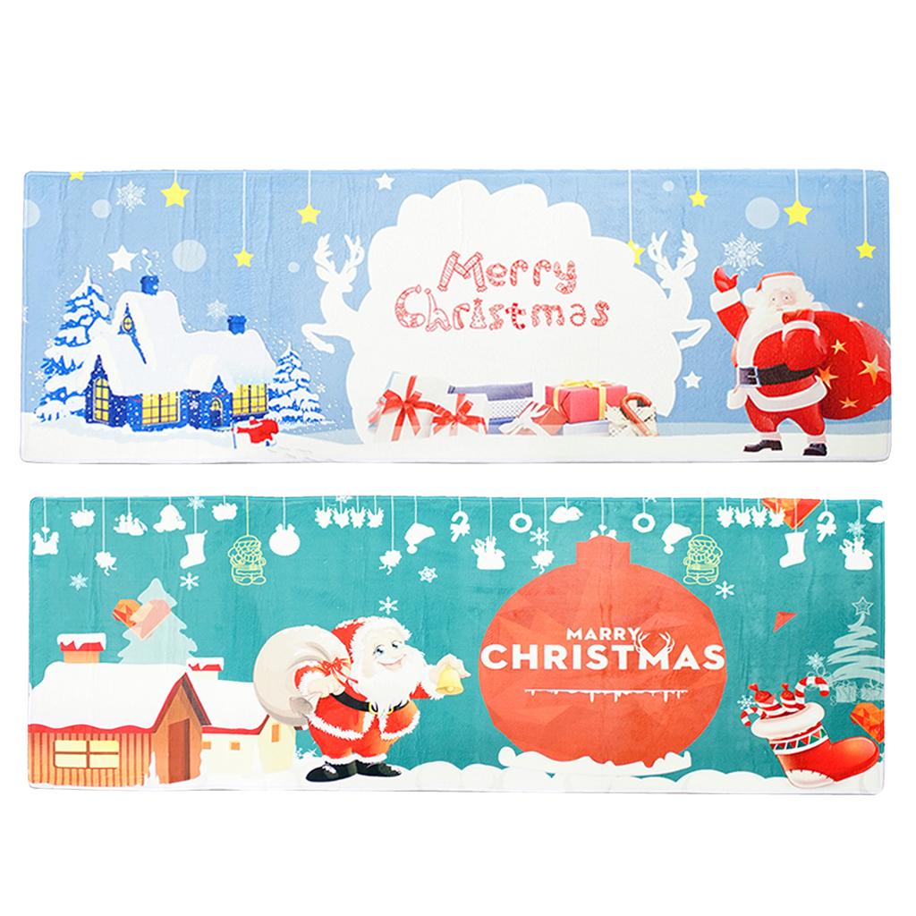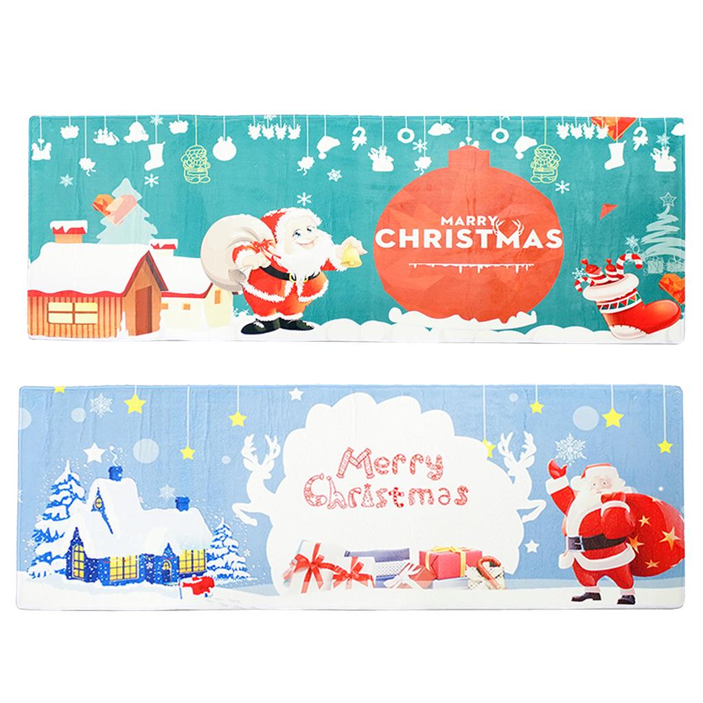 2 Pieces Xmas Print Extra Long Floor Runner Room Area Rug Carpet Doormat 60x180cm