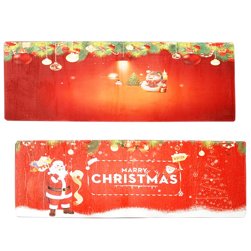 2Pcs Xmas Print Extra Long Floor Runner Room Area Rugs Carpet Doormat 180cm