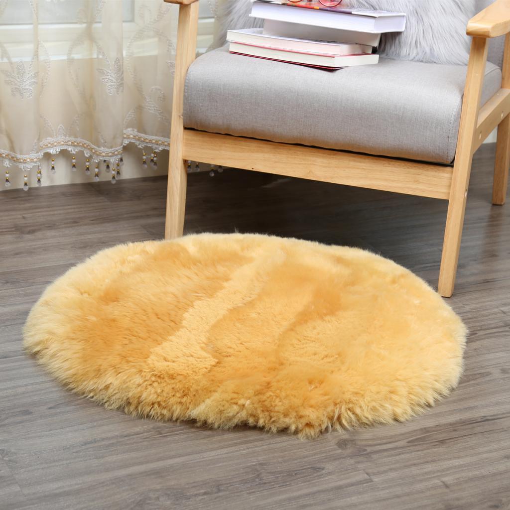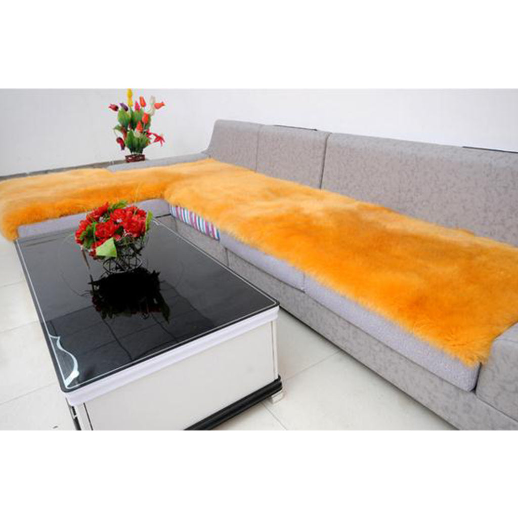 2x Artificial Wool Rug Fluffy Floor Carpet Mat Chair Seat Cushion Gold Tan