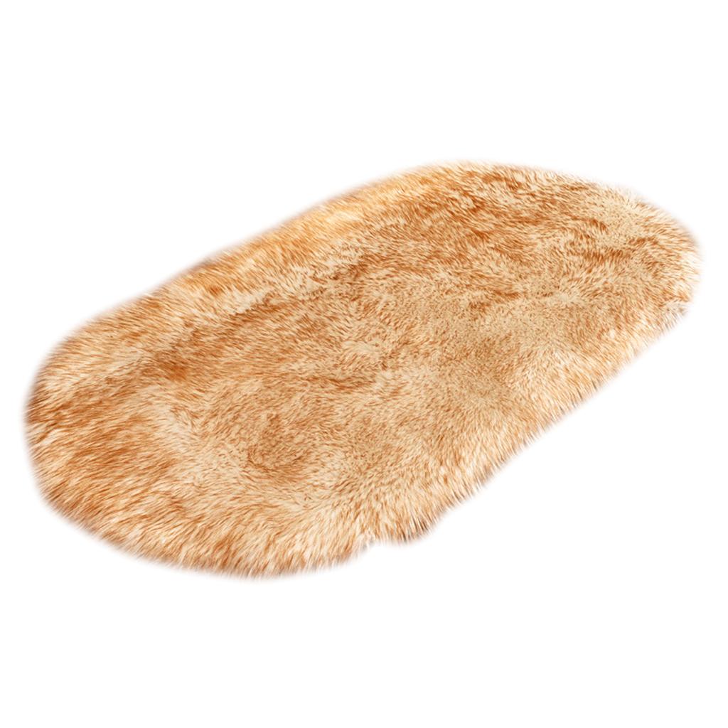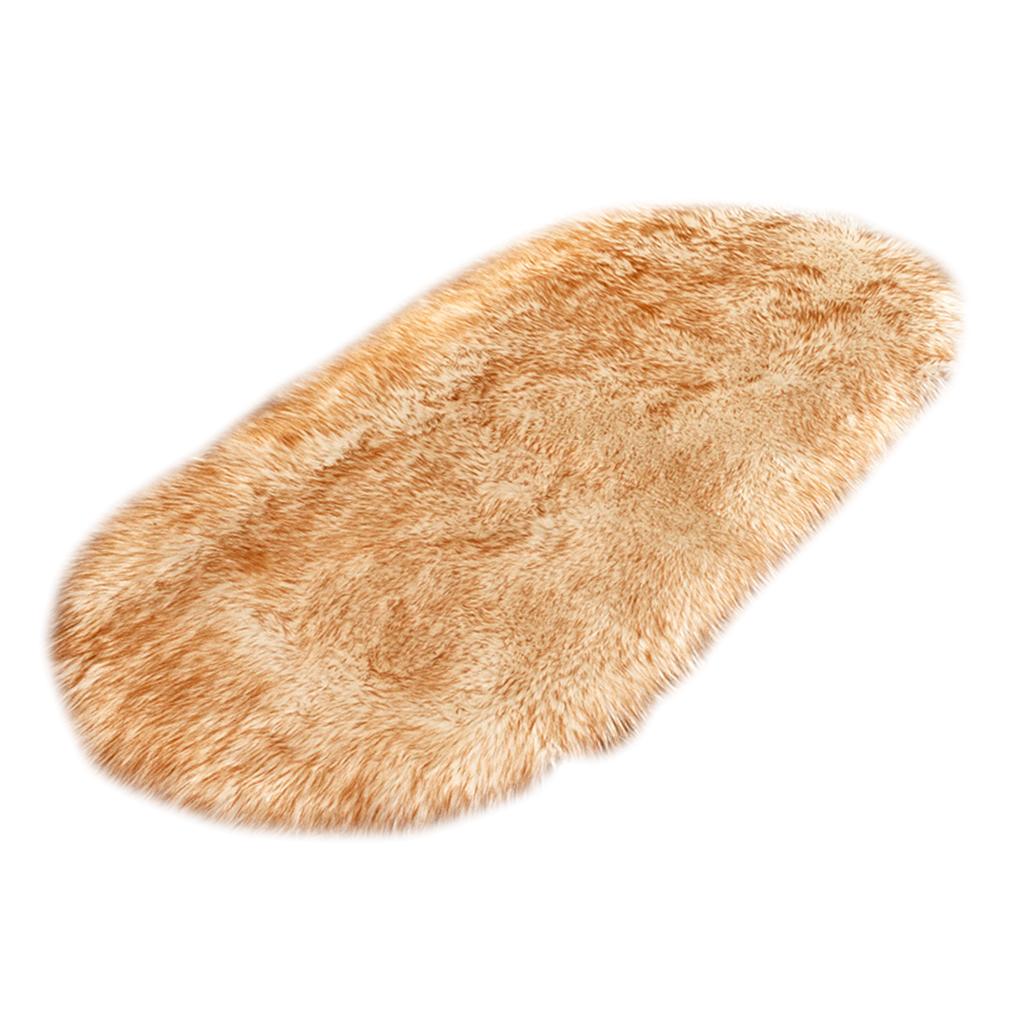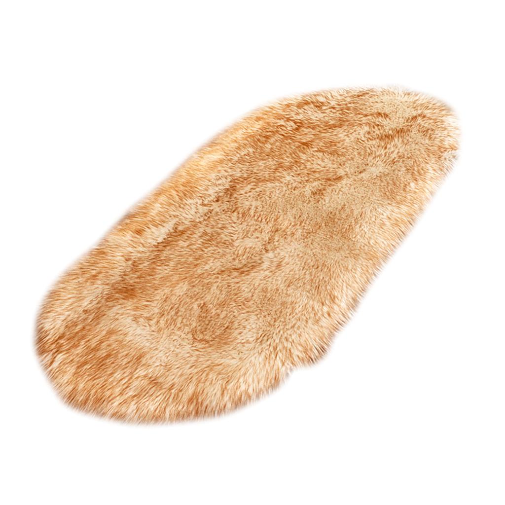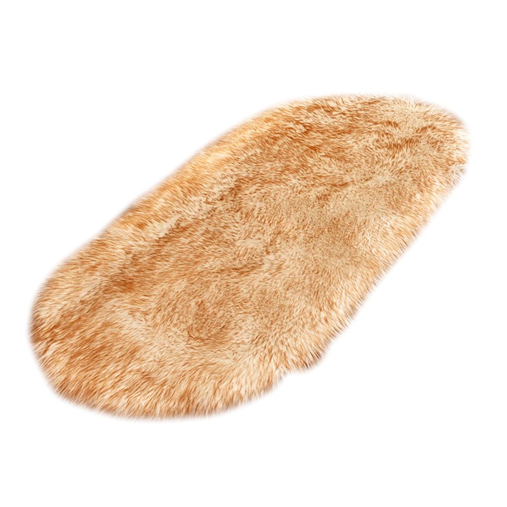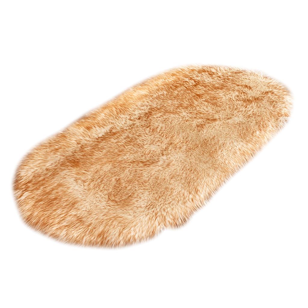 60 x 90cm Fluffy Oval Area Rug Living Room Bedroom Carpets White Yellow