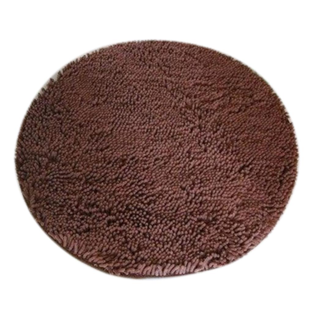 Round Non-slip Microfiber Shaggy Bathroom Mat Absorbent Carpet Dia. 100cm Coffee
