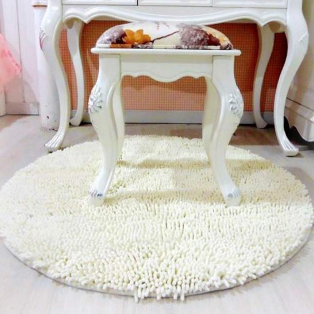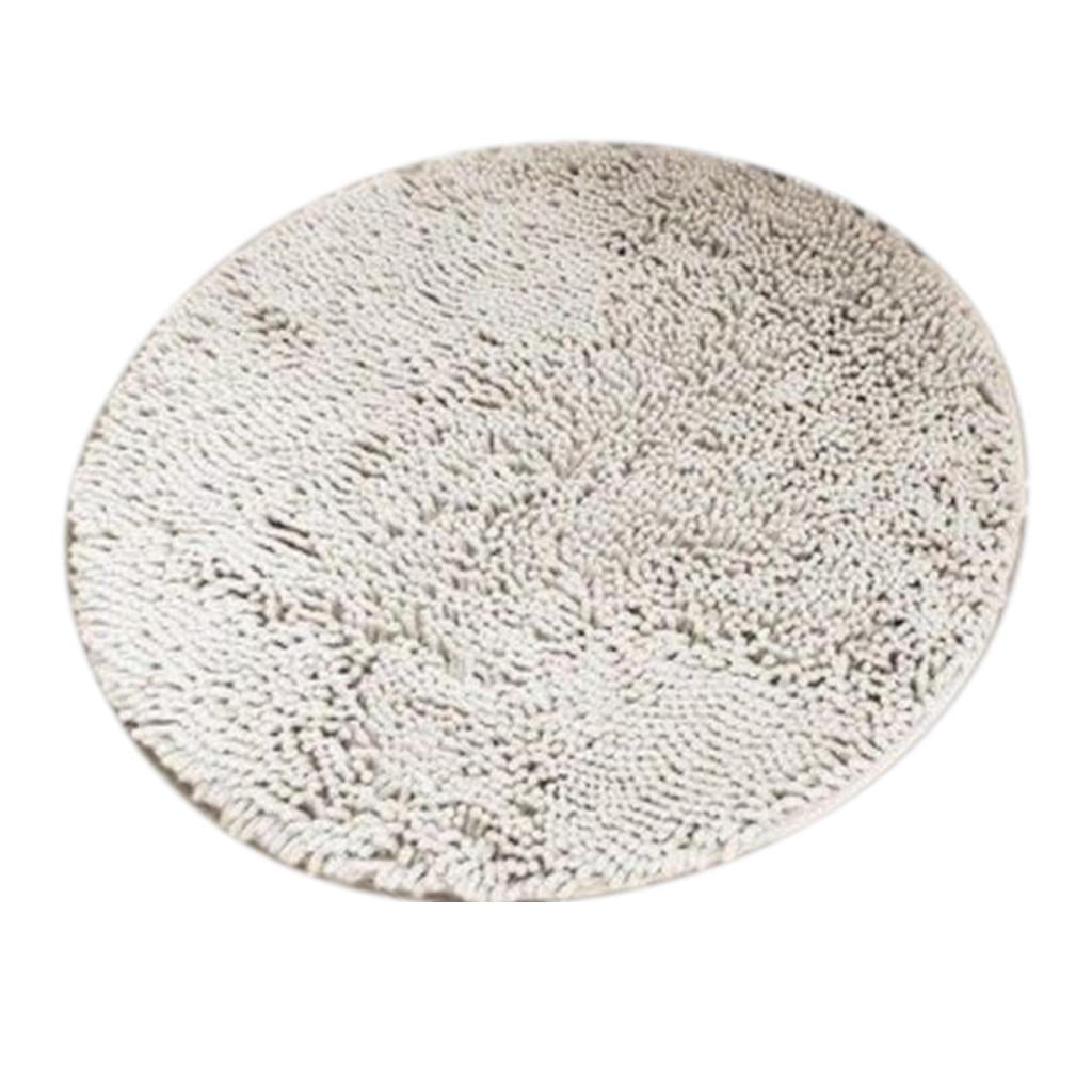 Round Non-slip Microfiber Shaggy Bathroom Mat Absorbent Carpet Dia. 80cm White