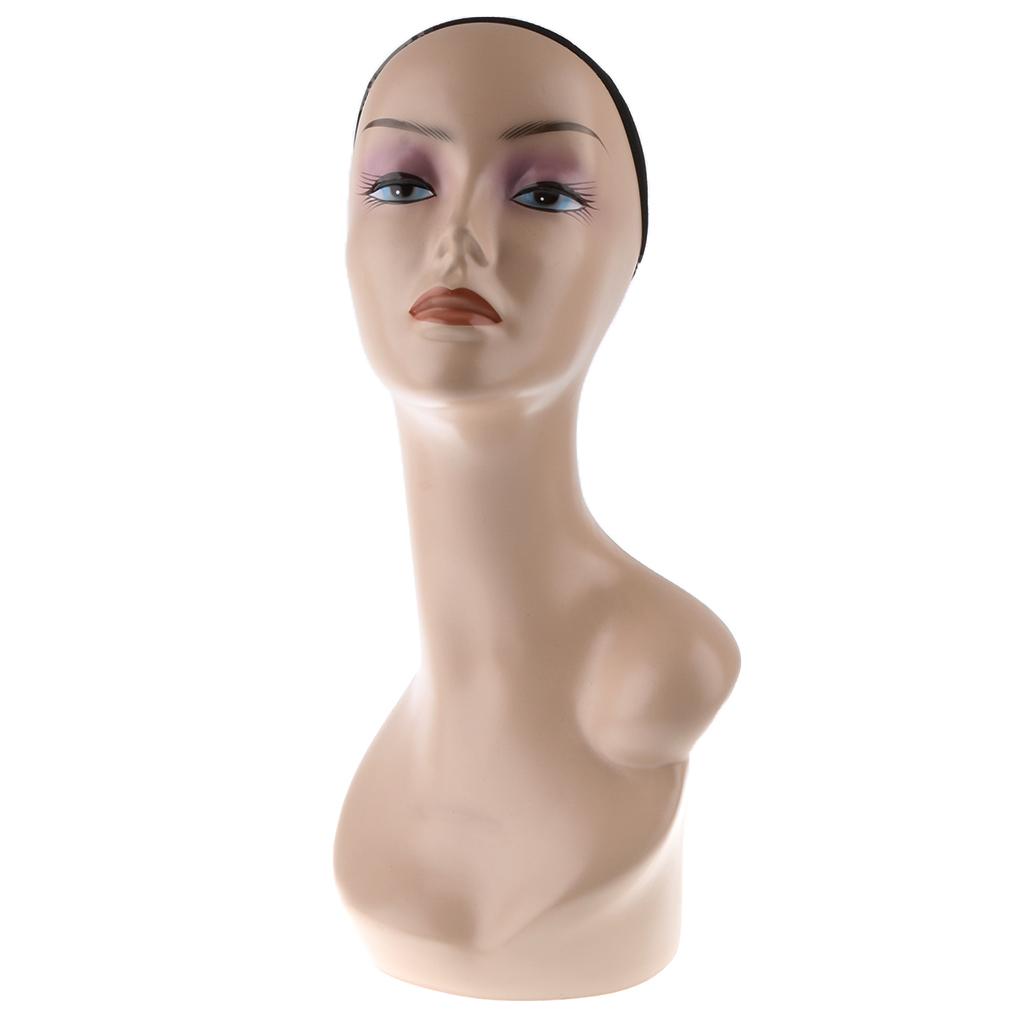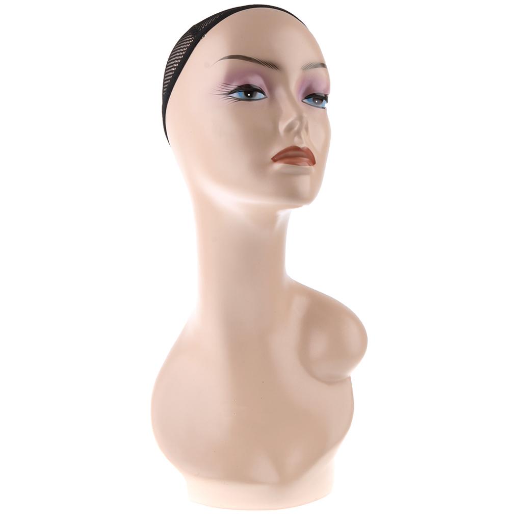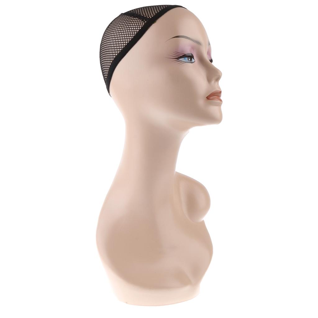 18 Inch ABS Female Mannequin Head Manikin Model Stand for Jewelry Hat Wig Scarves Display Showcase with Net Cap