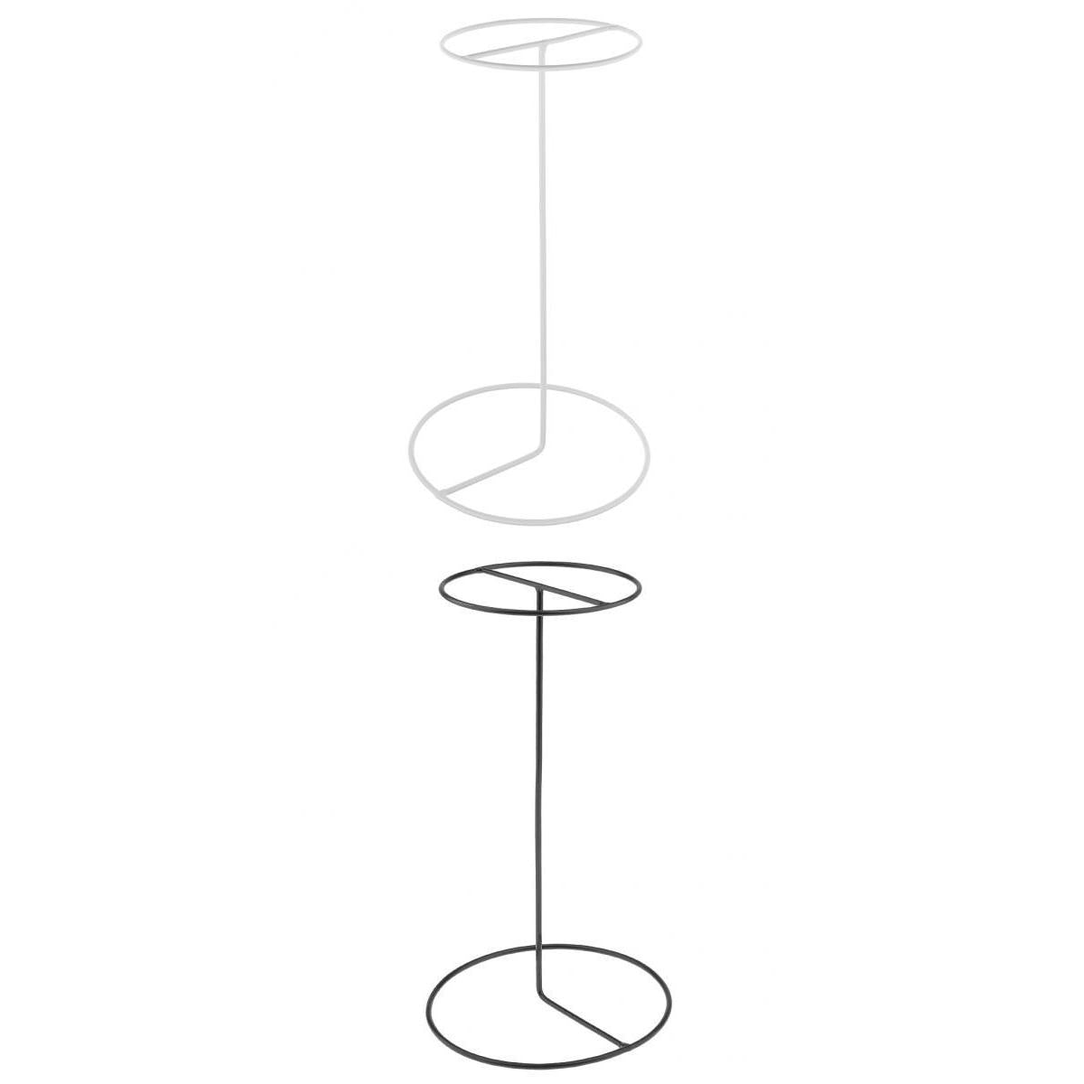Curved Metal pole and round Metal base help keep this hat & wig stand sturdy and upright.