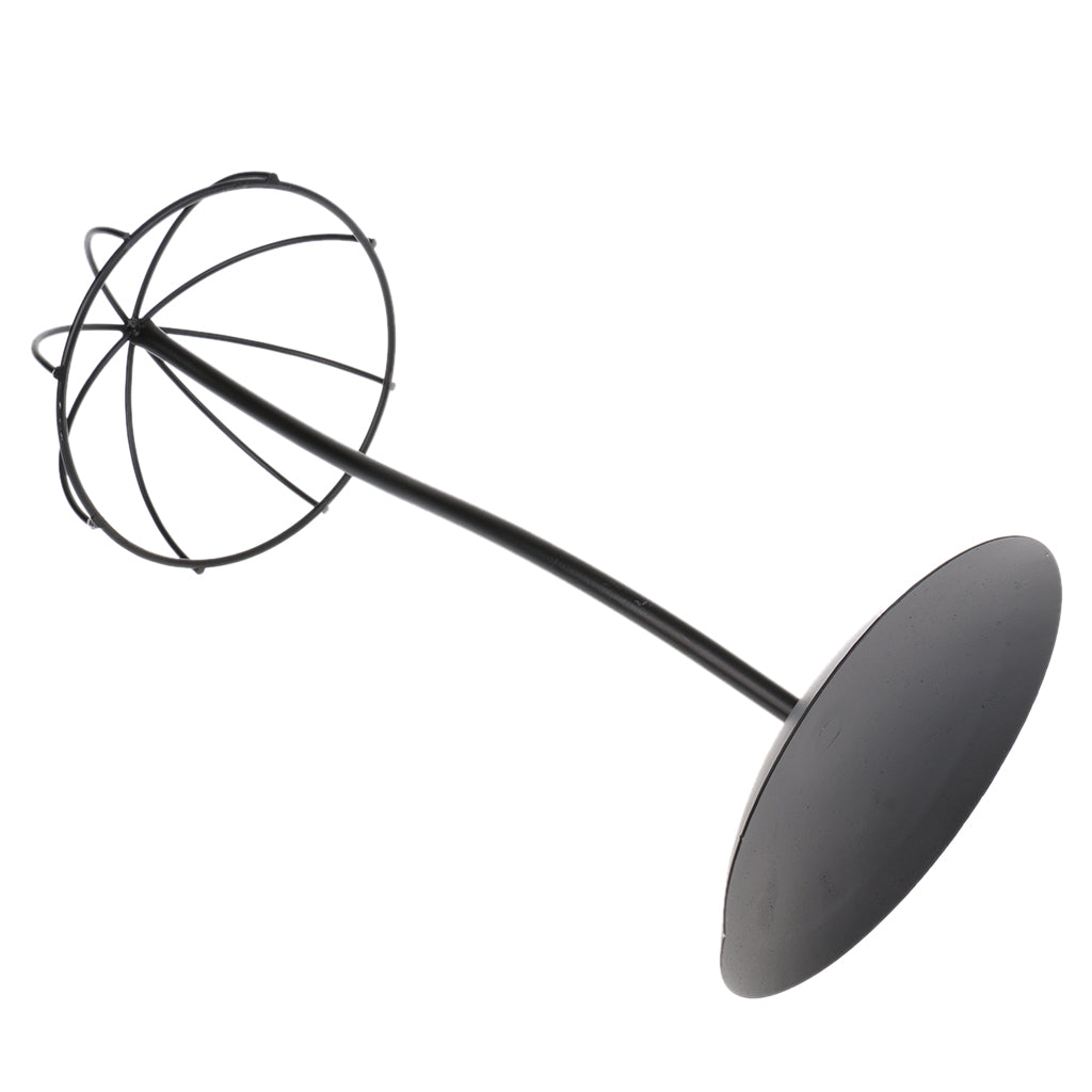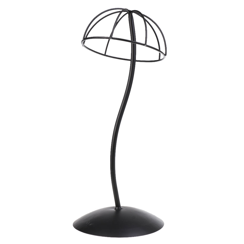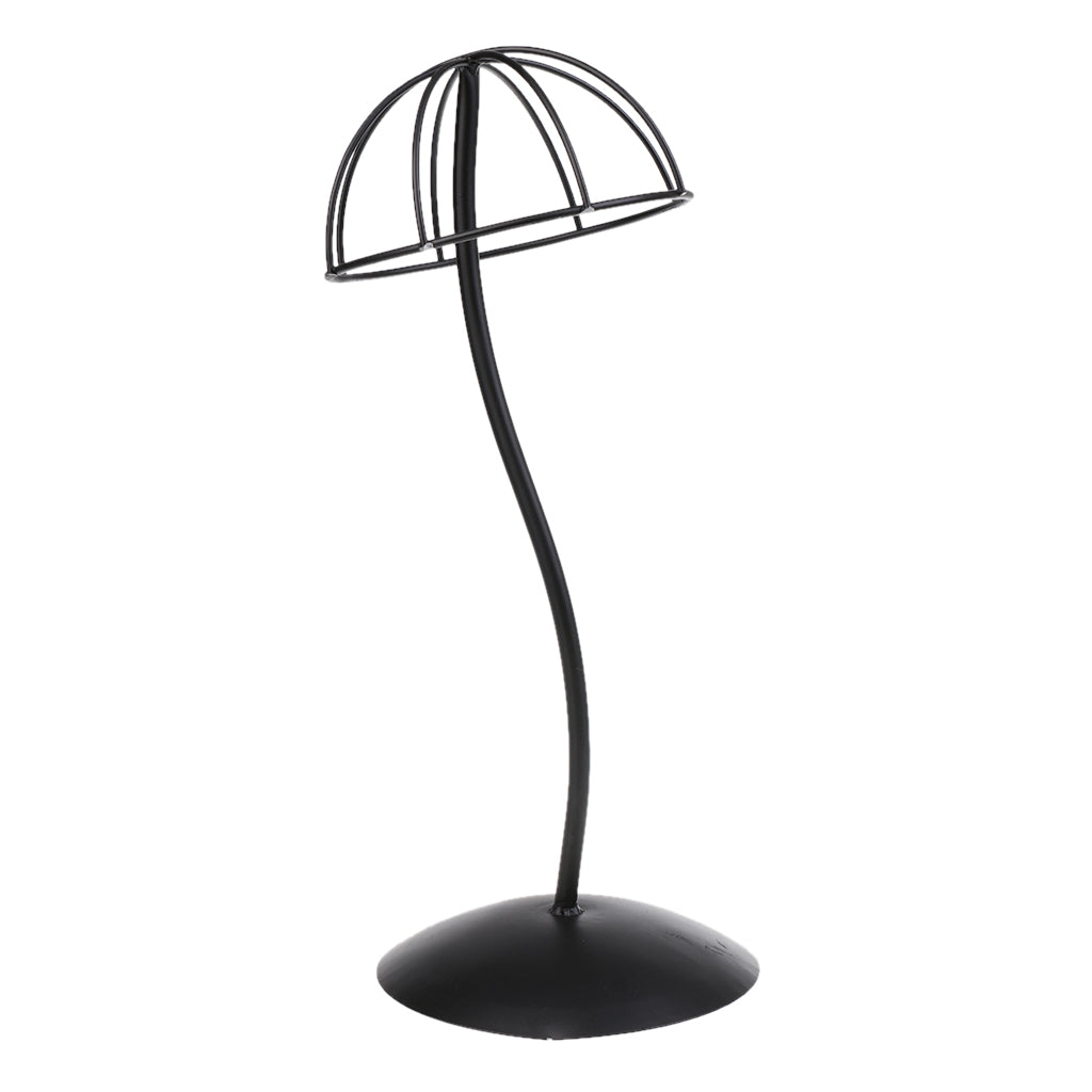 Curved Metal pole and round Metal base help keep this hat & wig stand sturdy and upright.
