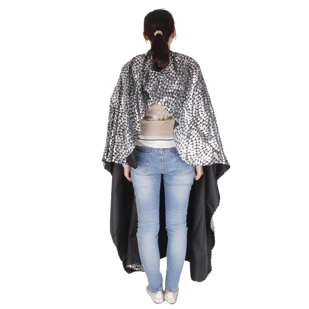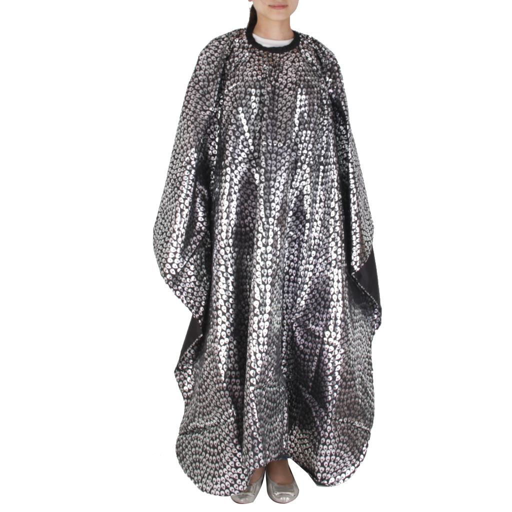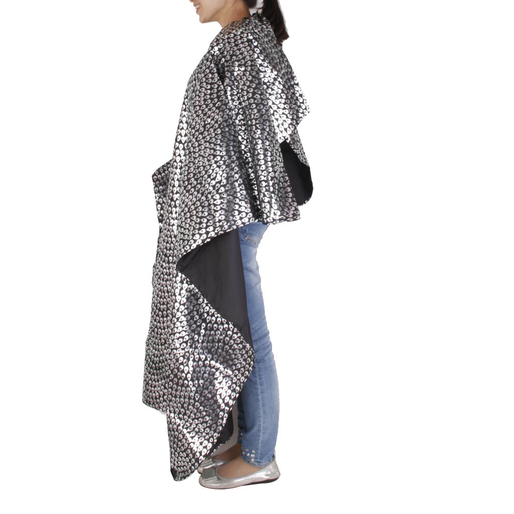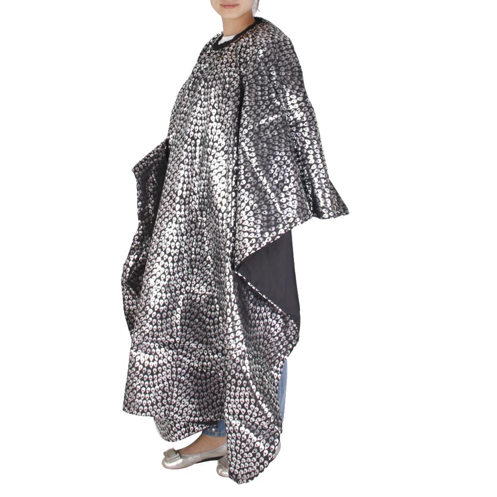 Peacock Feather Printing Hair Cape Gown Cloth Apron for Adult - Black