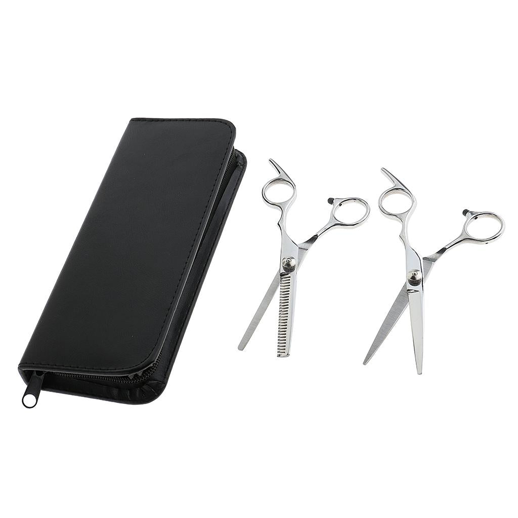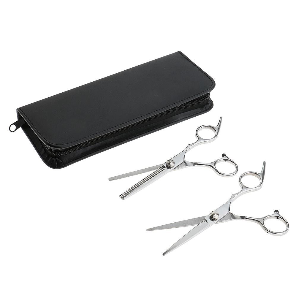Professional 6.0'' Silver Hair Cutting Shears/Scissors and Barber Thinning/Texturizing Set with Black Storage Case