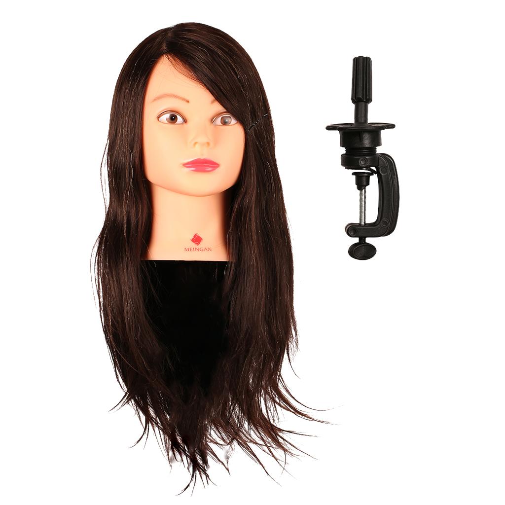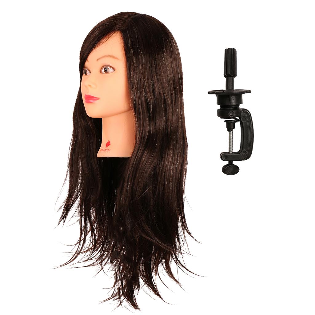 Synthetic Hair Hairdressing Training Salon Mannequin Head Clamp Brown 22" #1