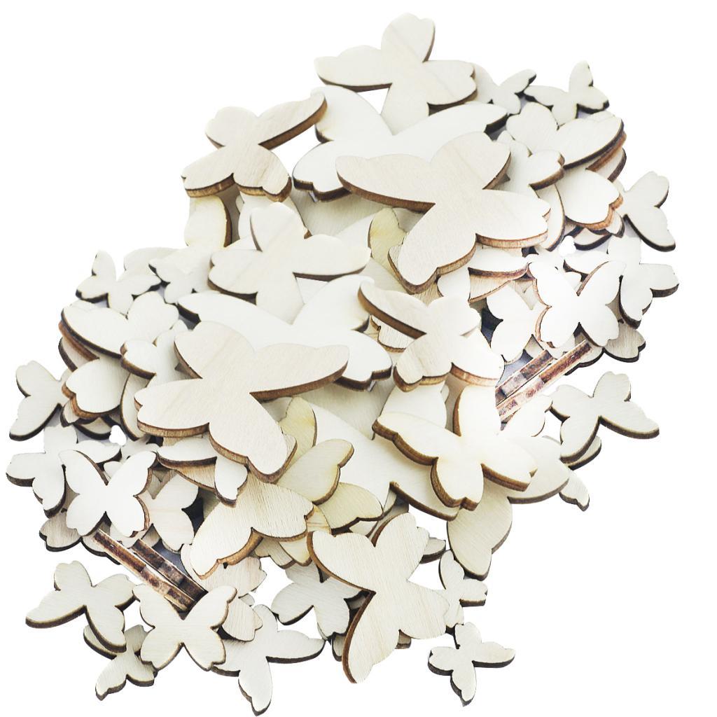 100 Pieces Mixed Wooden Butterfly Shape Shabby Chic DIY Embellishment Decoration