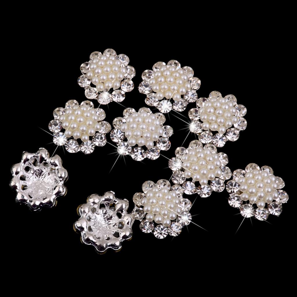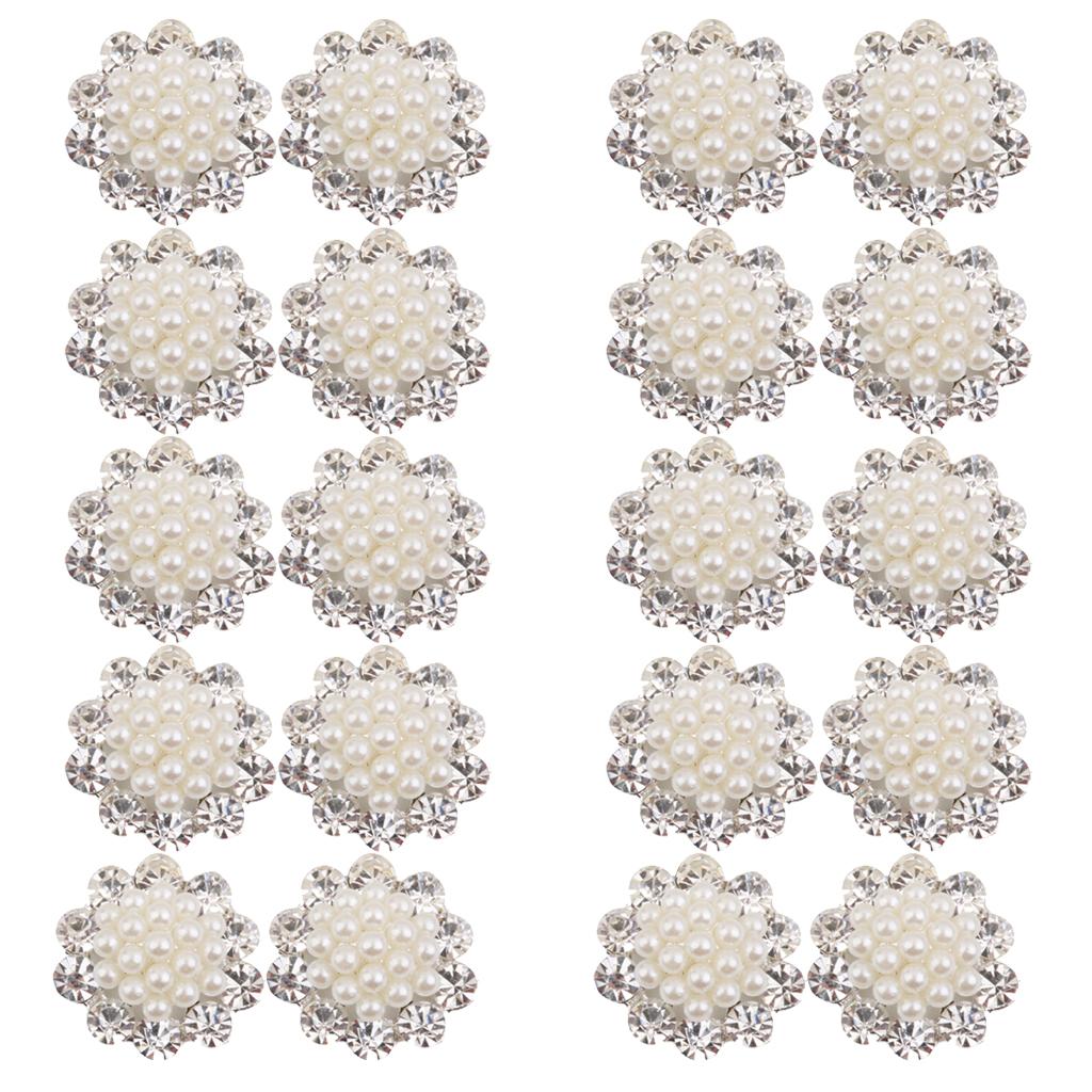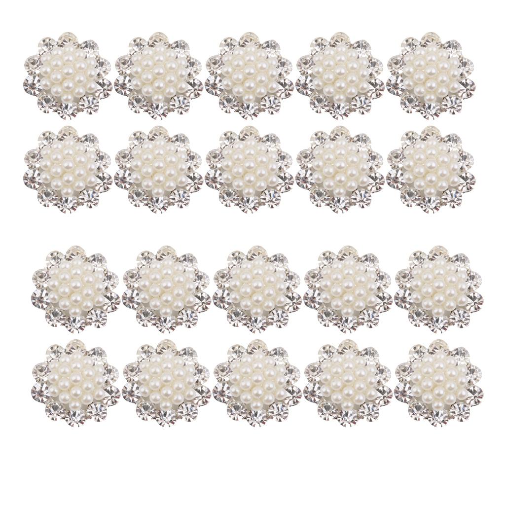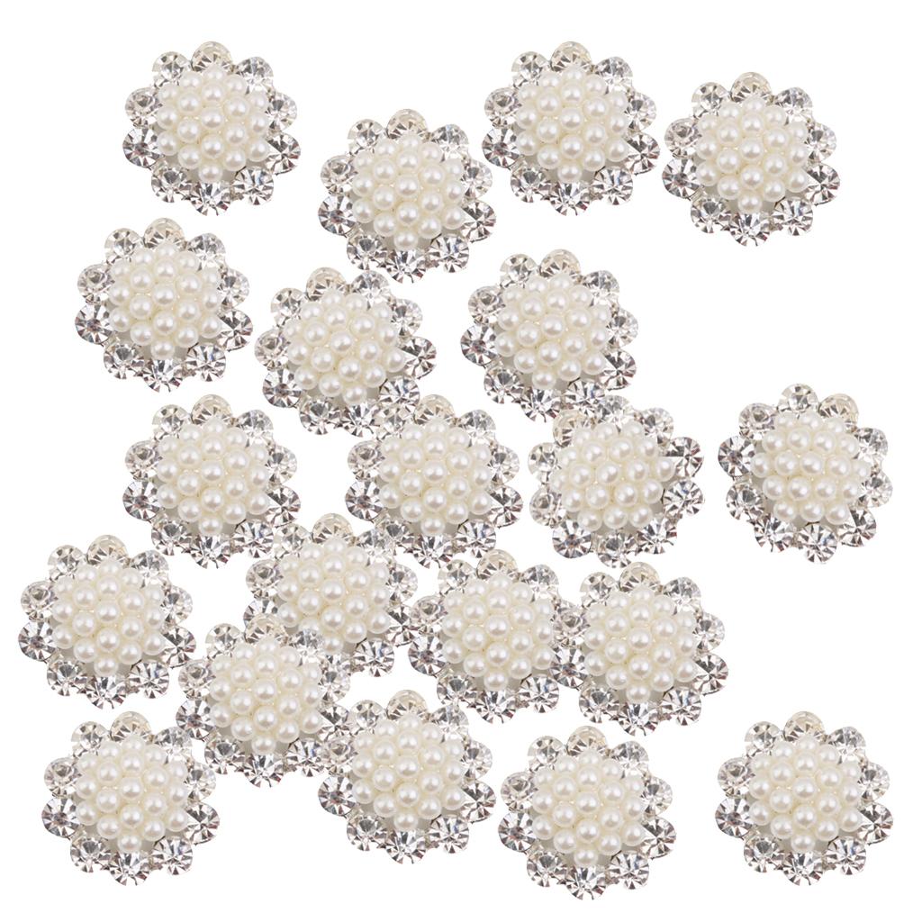 20 Pieces Crystal Diamante Pearl Brooch Button DIY Wedding Bouquet Decor