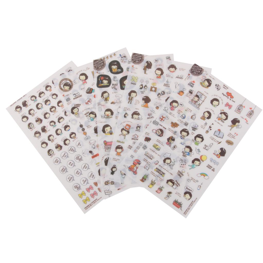 5 sheets Korean Cooky's Helloday stickers adhesive journal Diary scrapbook