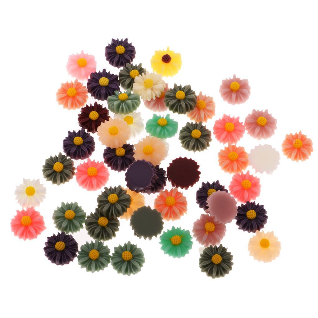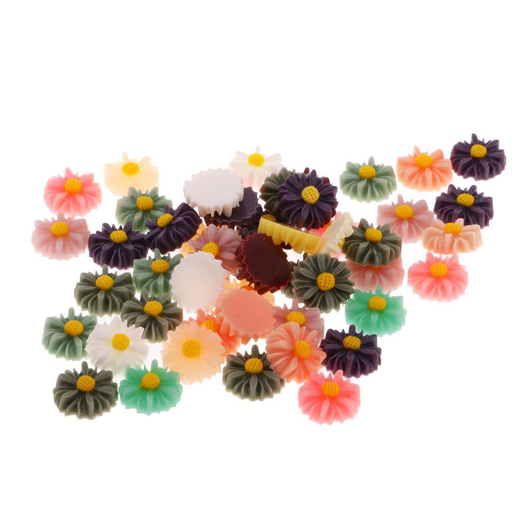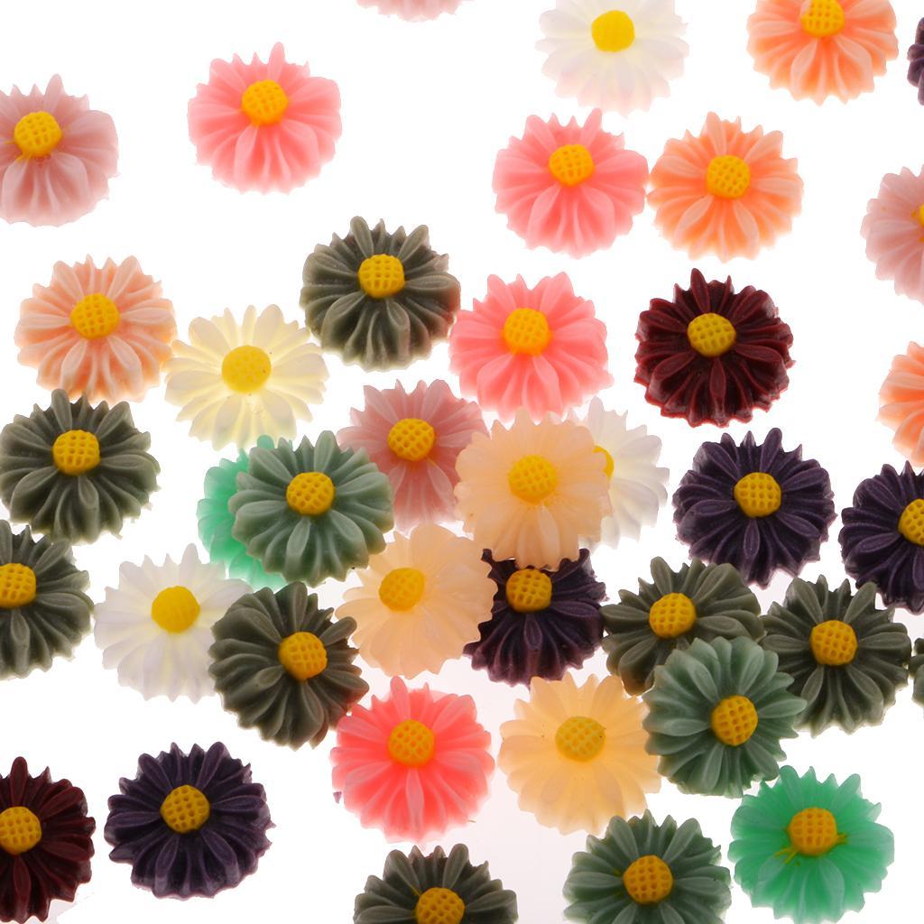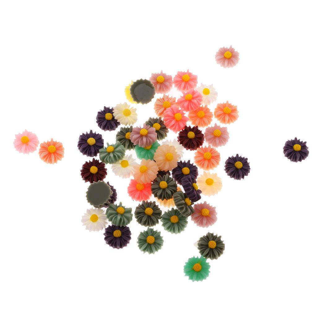 50 Pieces Assorted Daisy Resin Flatback Embellishment for DIY Hair Accessories Crafts
