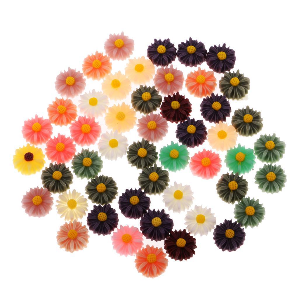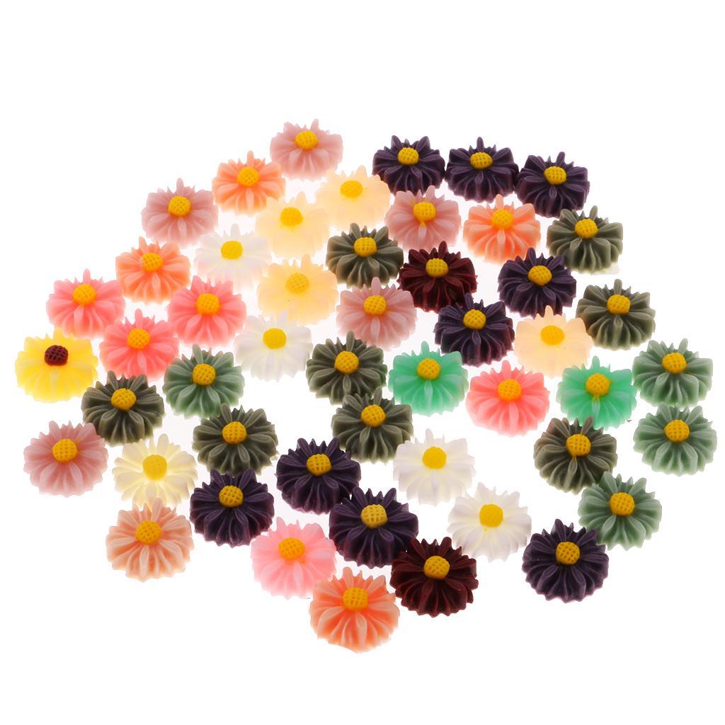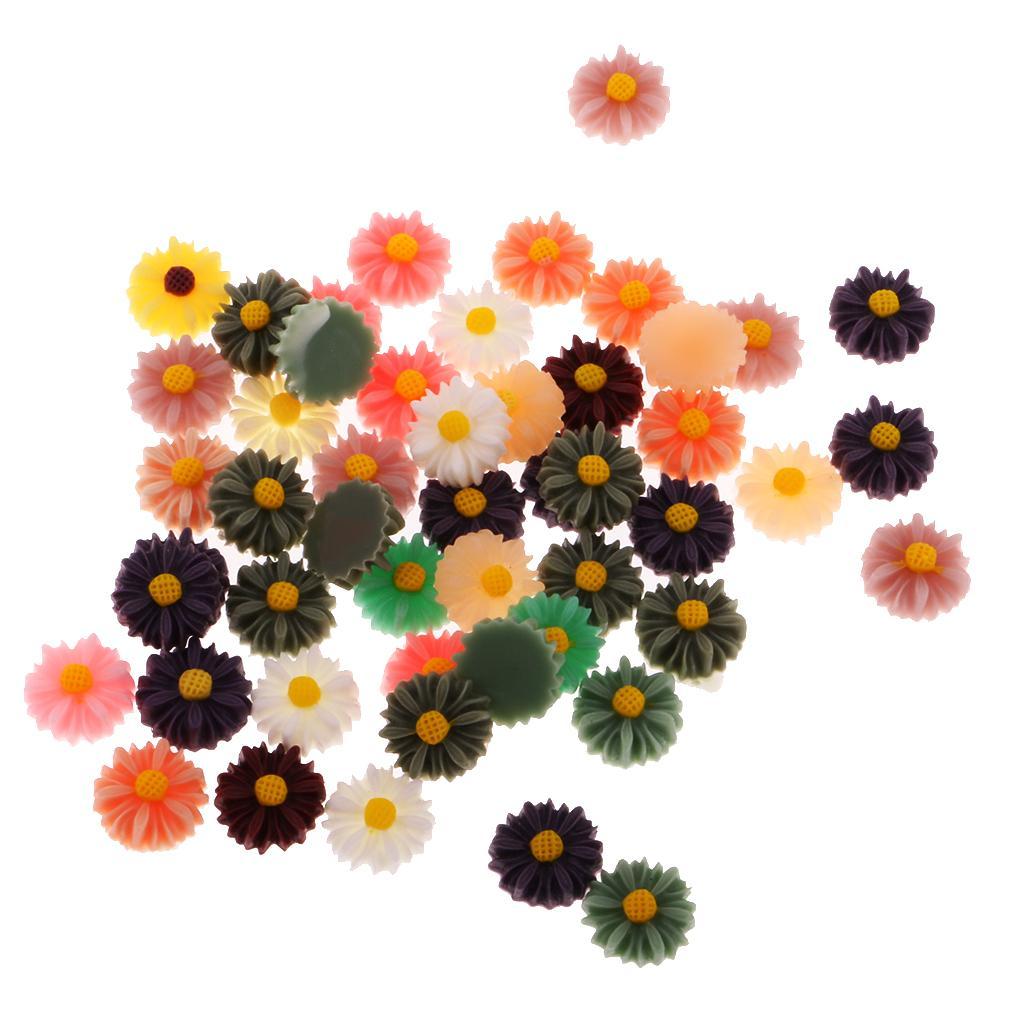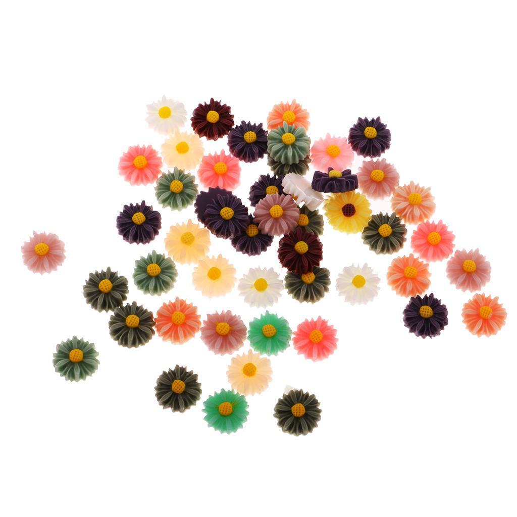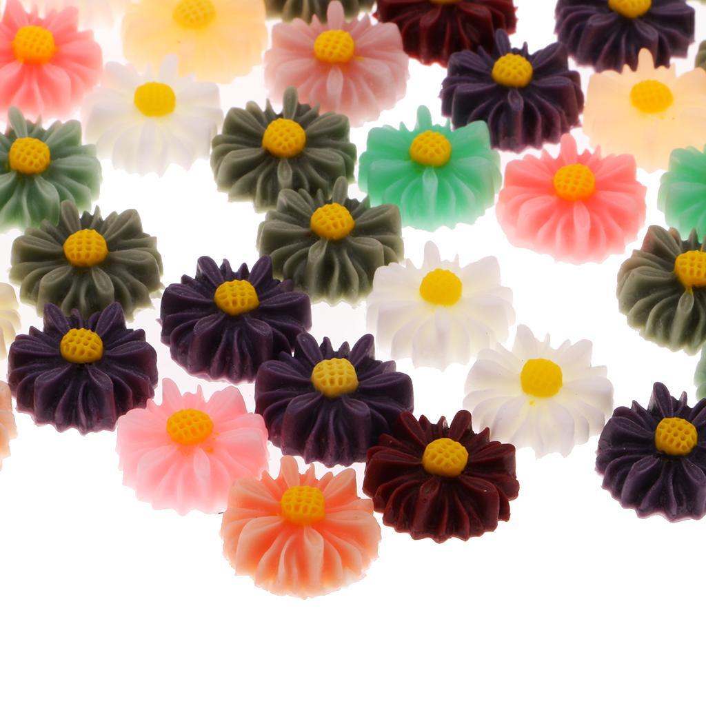 50 Pieces Assorted Daisy Resin Flatback Embellishment for DIY Hair Accessories Crafts