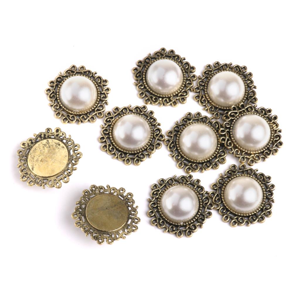 50 Pieces Faux Pearl Buttons Flatback for Decoration DIY 25mm