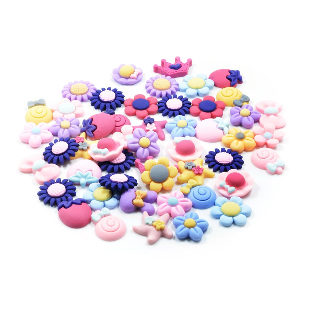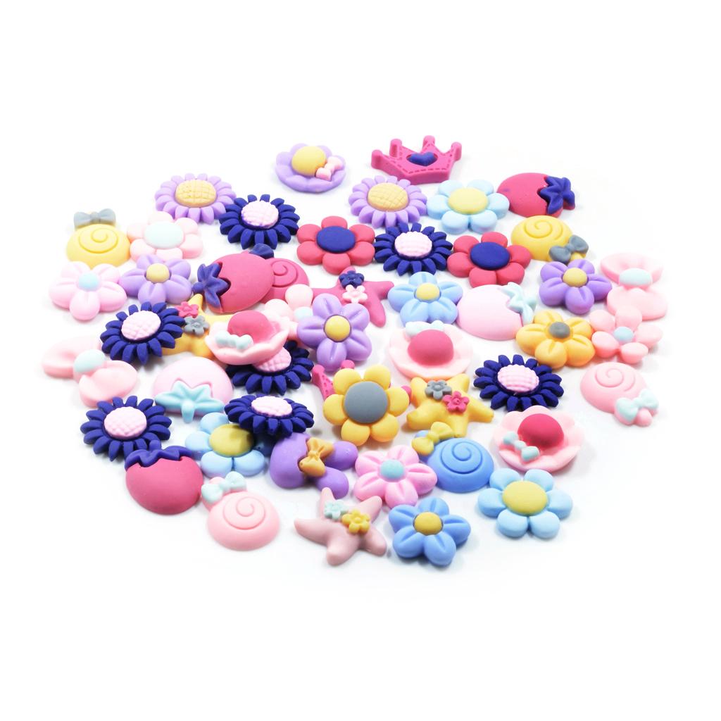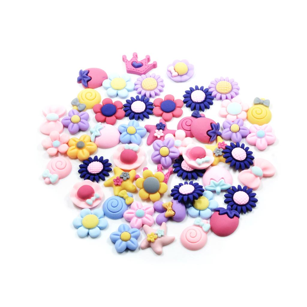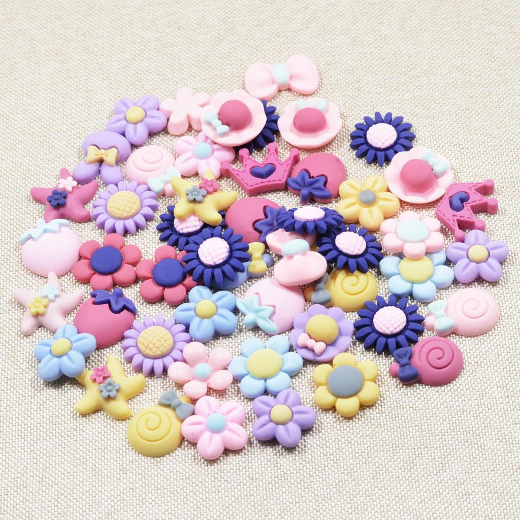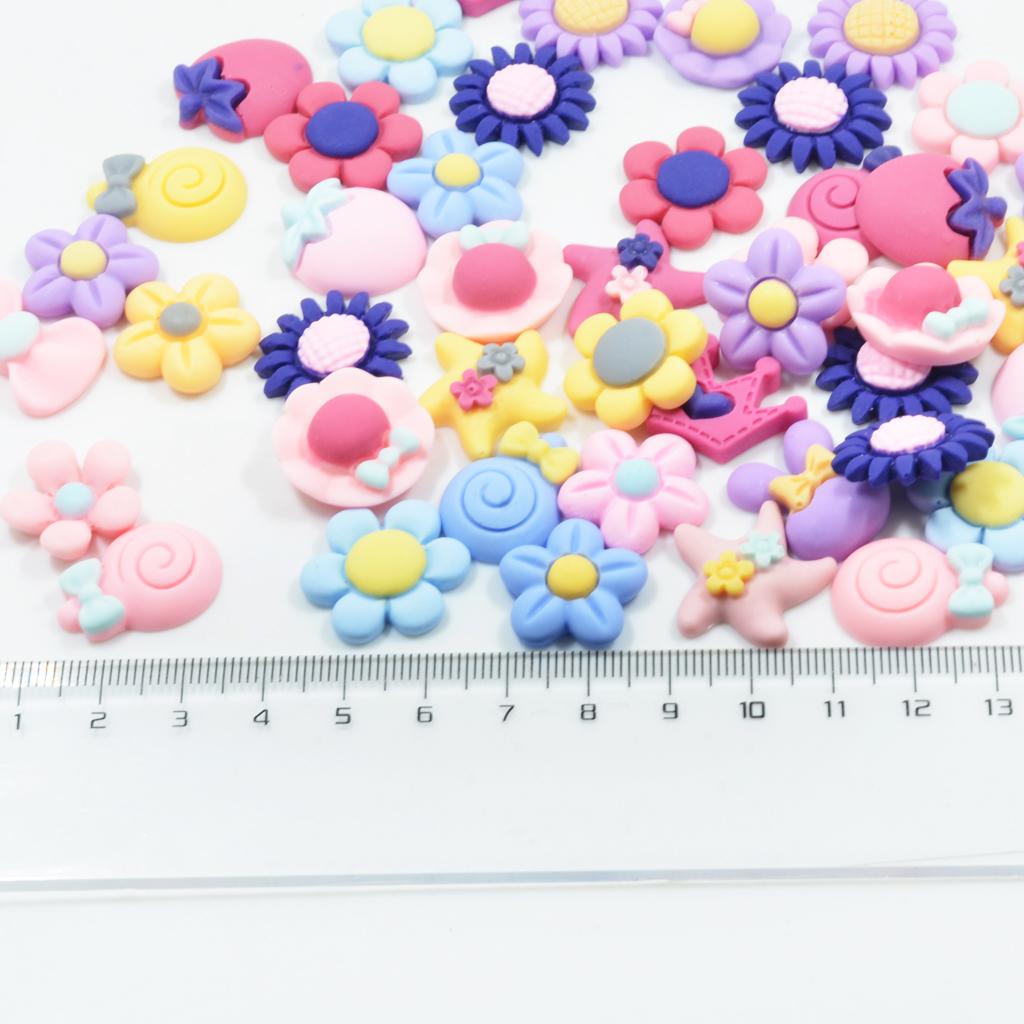 50 Pieces Lots Mixed DIY Kawaii Flatbacks Resin Flat Back Flowers Star Lollipop Cabochon Buttons Scrapbooking Slime Charm DIY Embellishment Craft