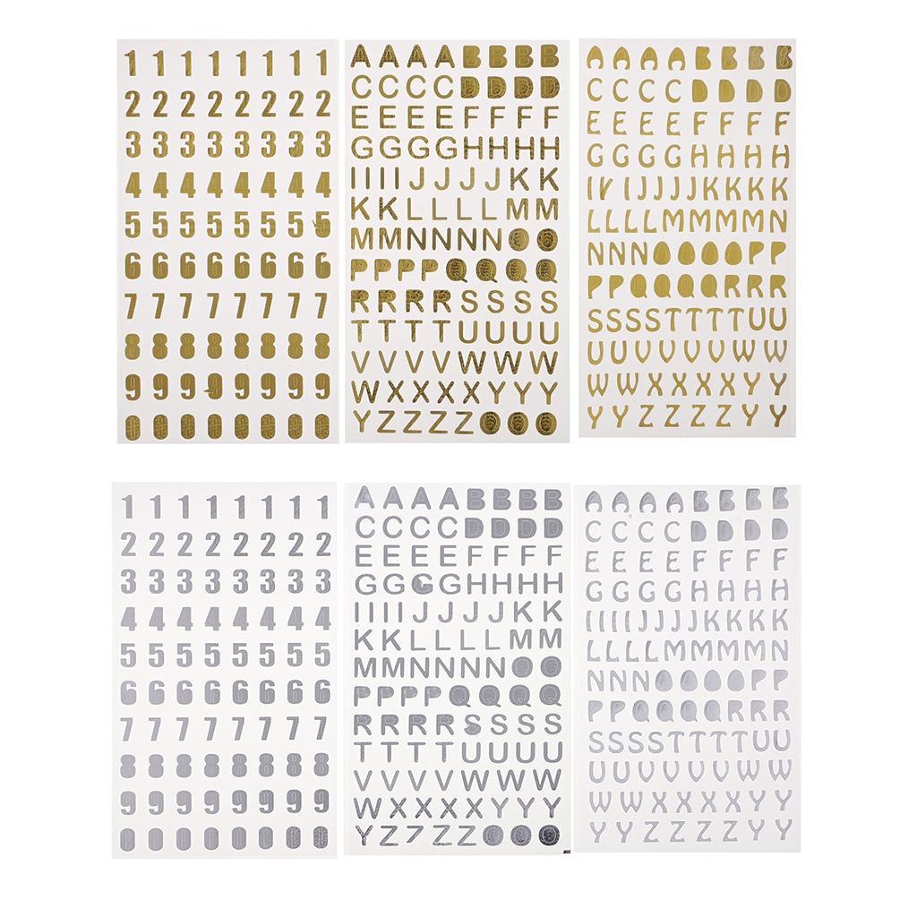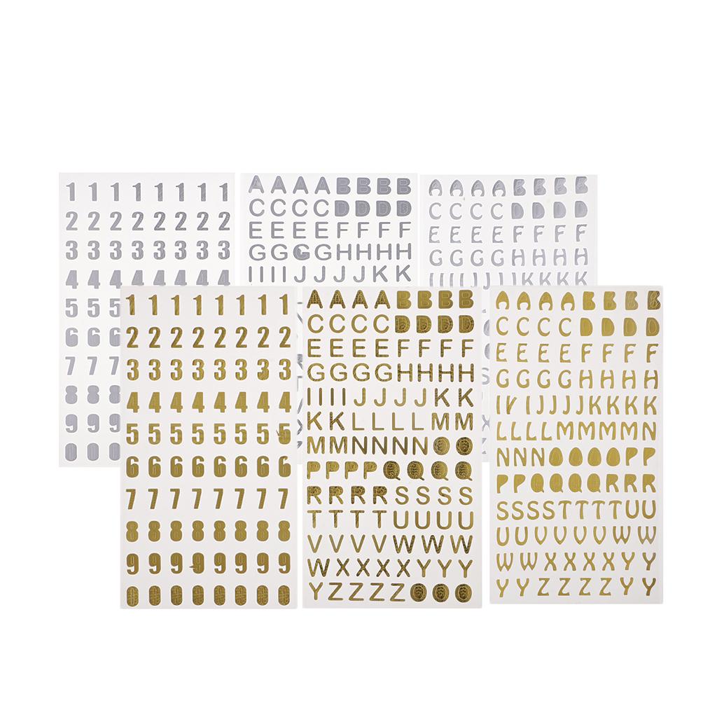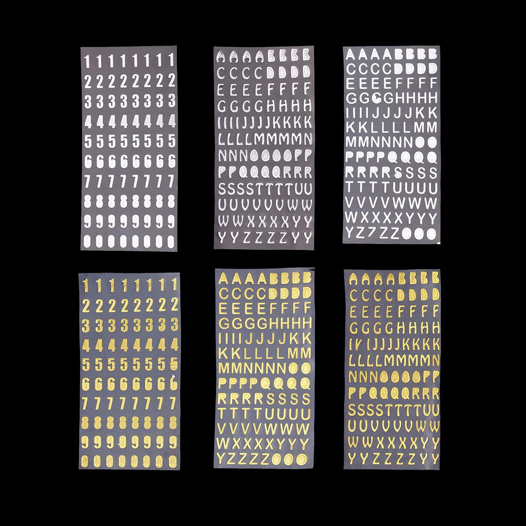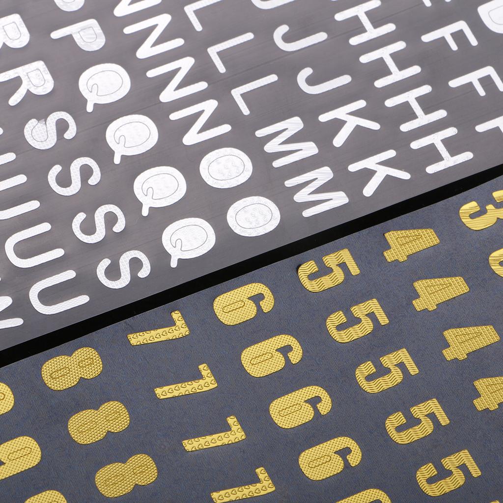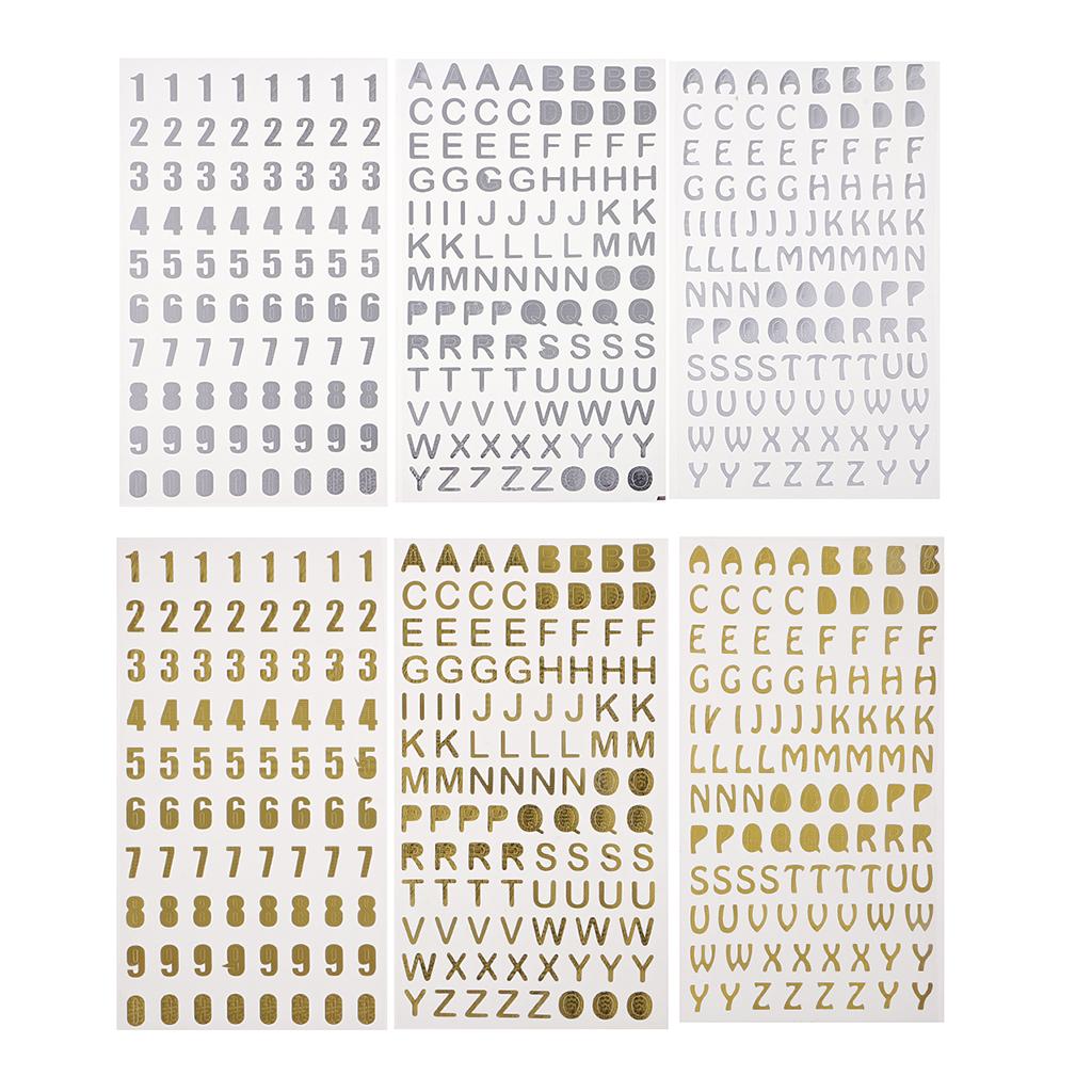 6Pc Embossed Bronzing Numbers Alphabet Stickers Album Hand Account Scrapbook