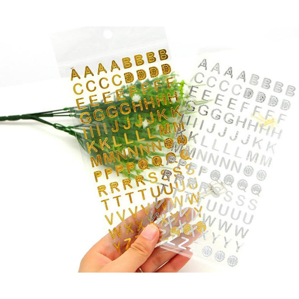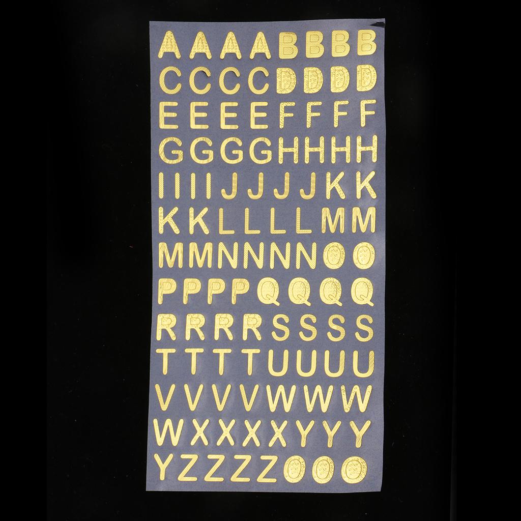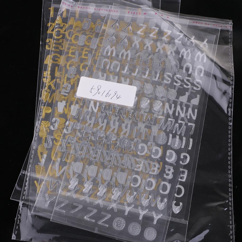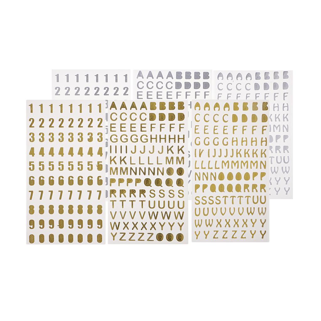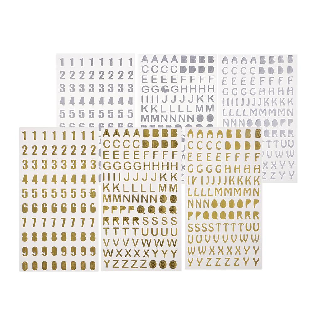 6Pc Embossed Bronzing Numbers Alphabet Stickers Album Hand Account Scrapbook