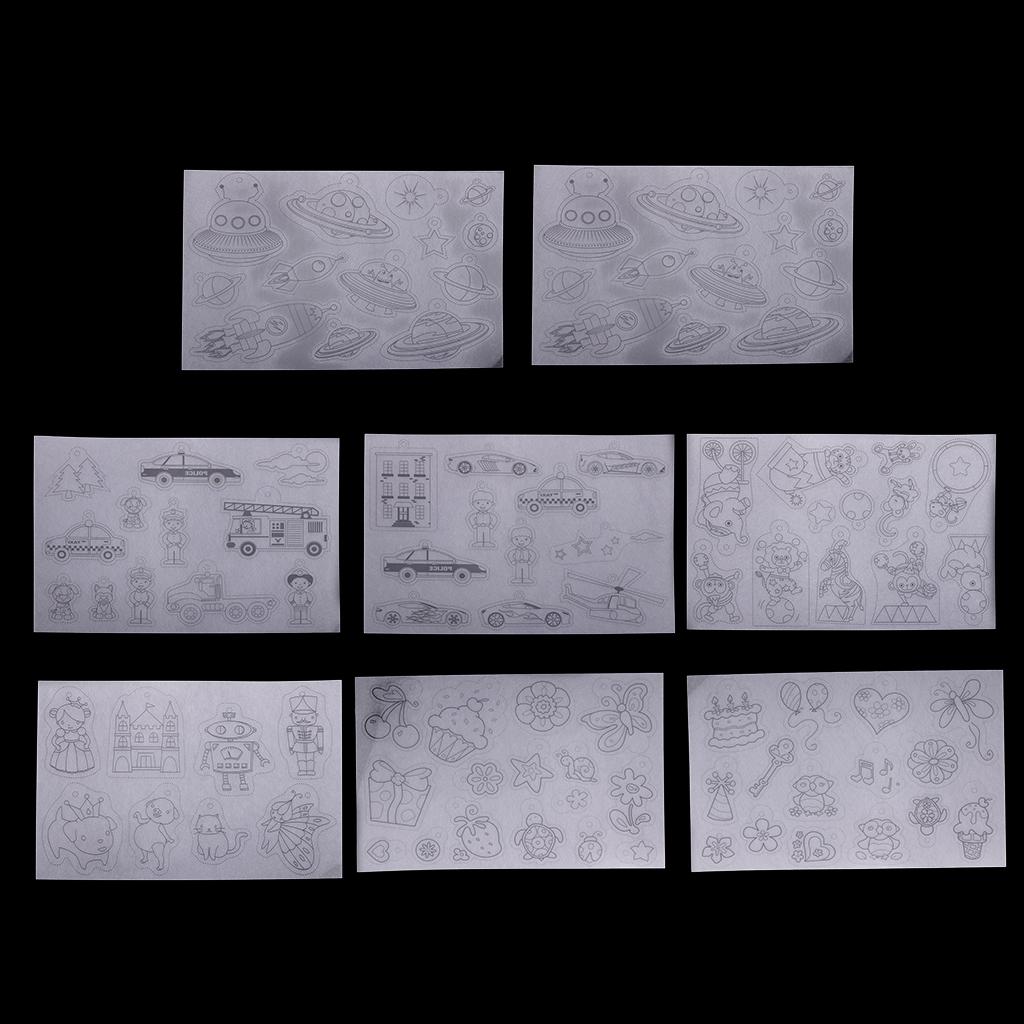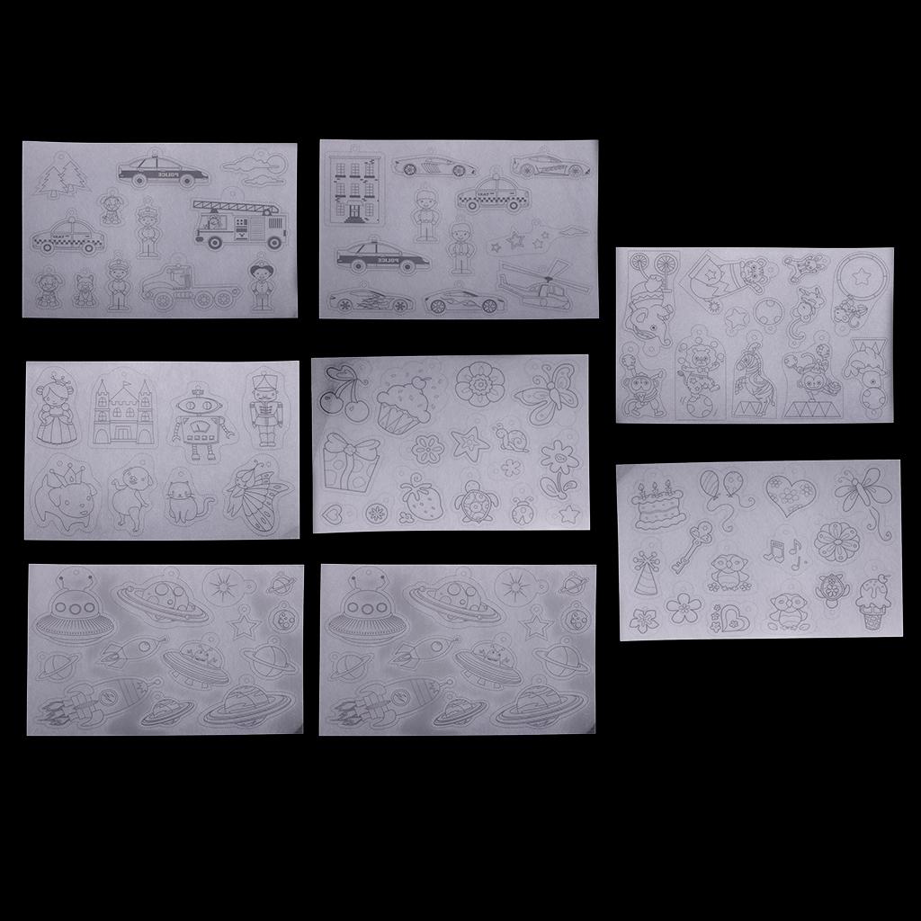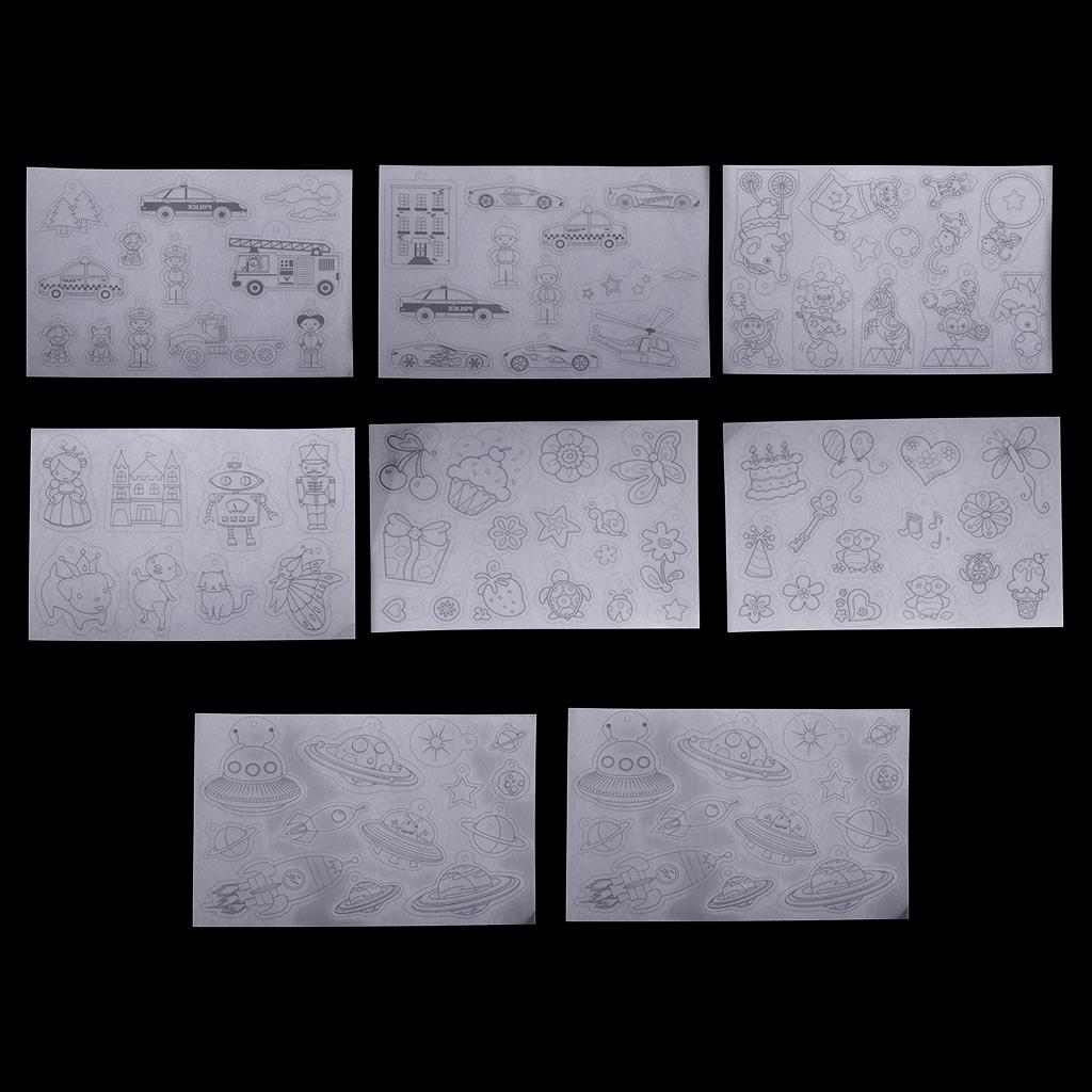 The shrinkable plastic comes with 8 sheets of multi patterns designs, these crystal clear sheets are ready for any kids art and day camp kids crafts.