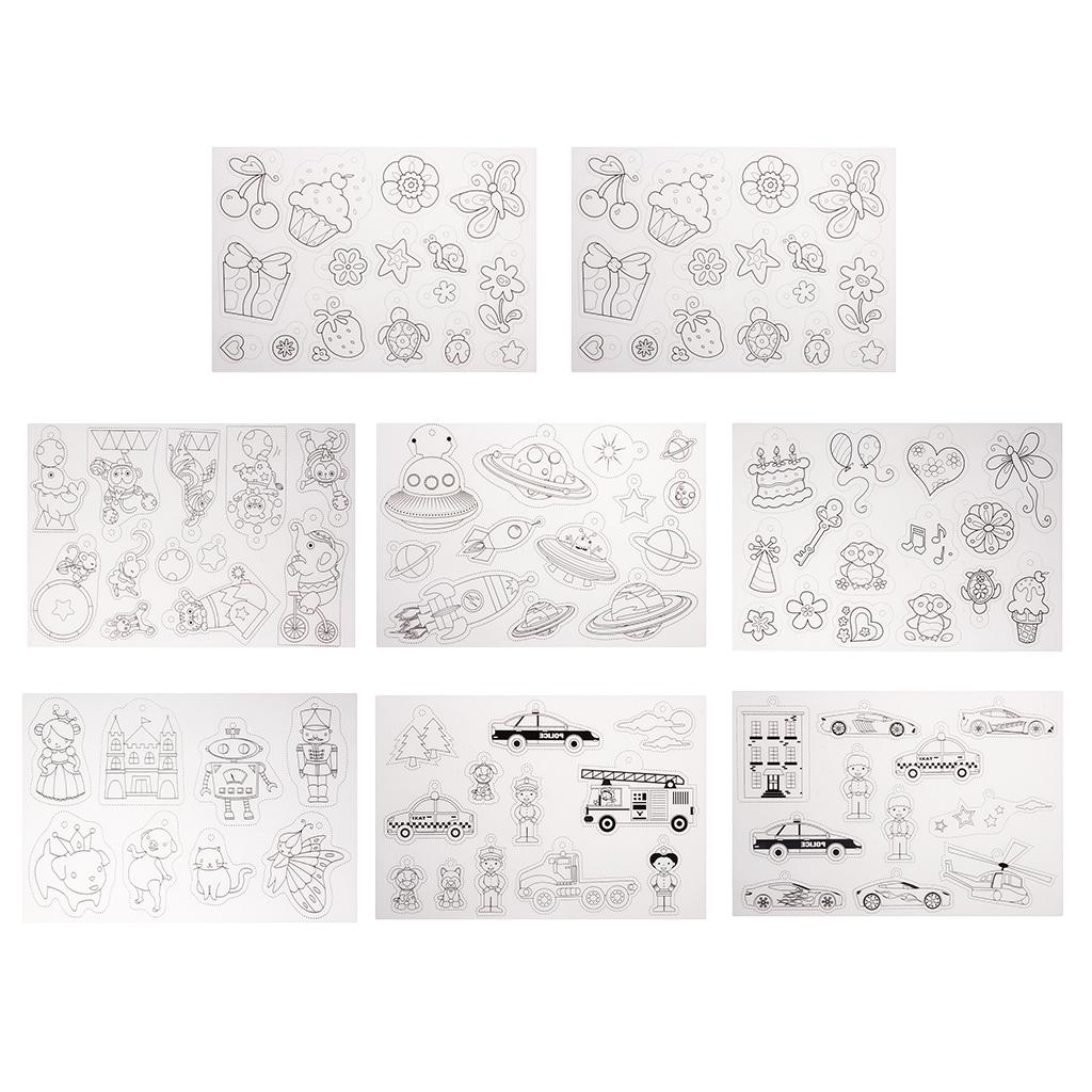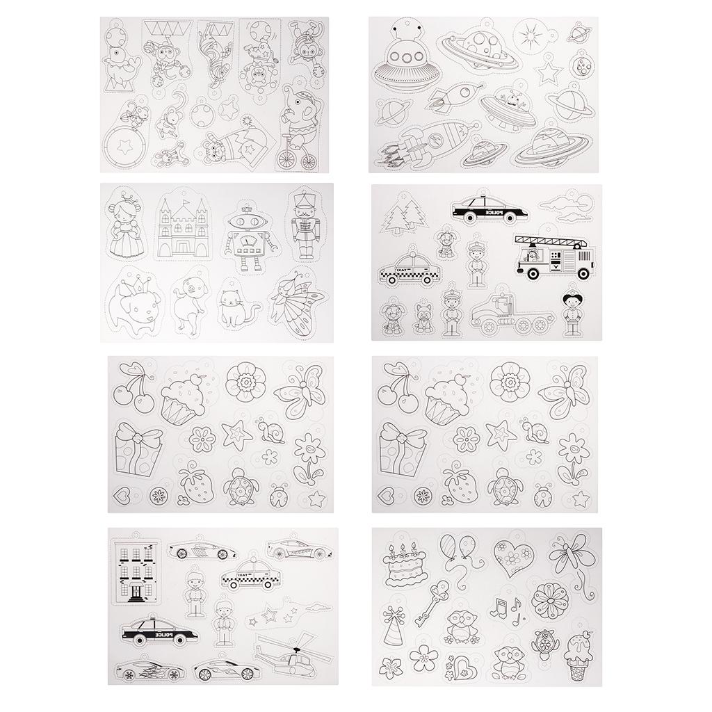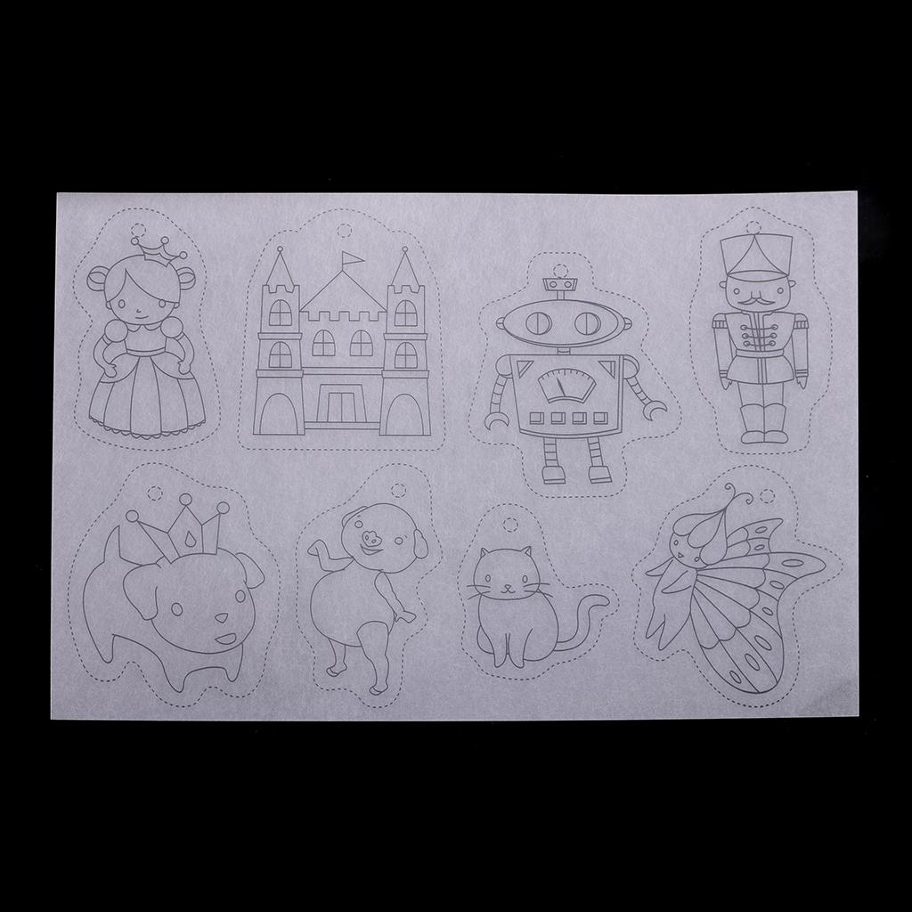 The shrinkable plastic comes with 8 sheets of multi patterns designs, these crystal clear sheets are ready for any kids art and day camp kids crafts.