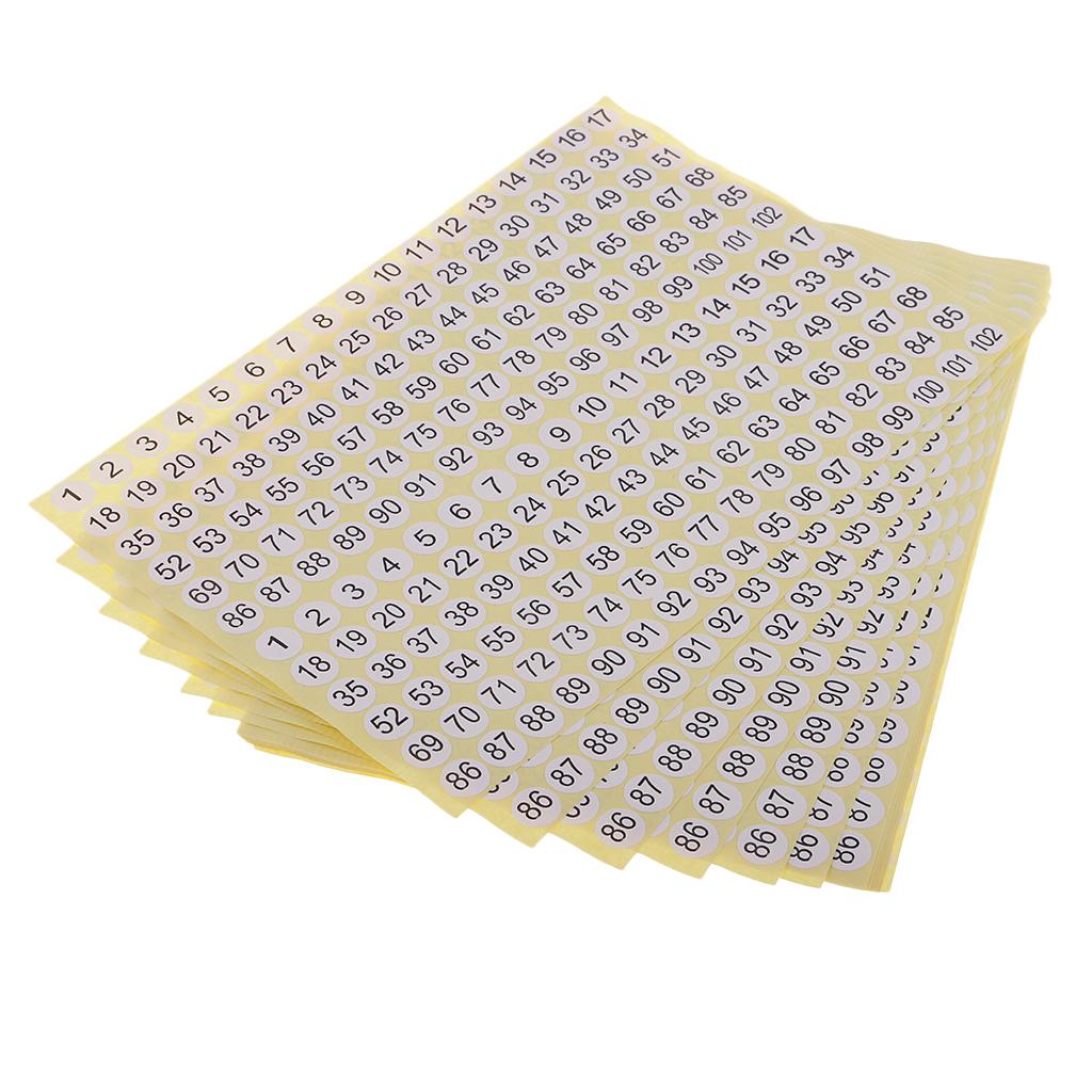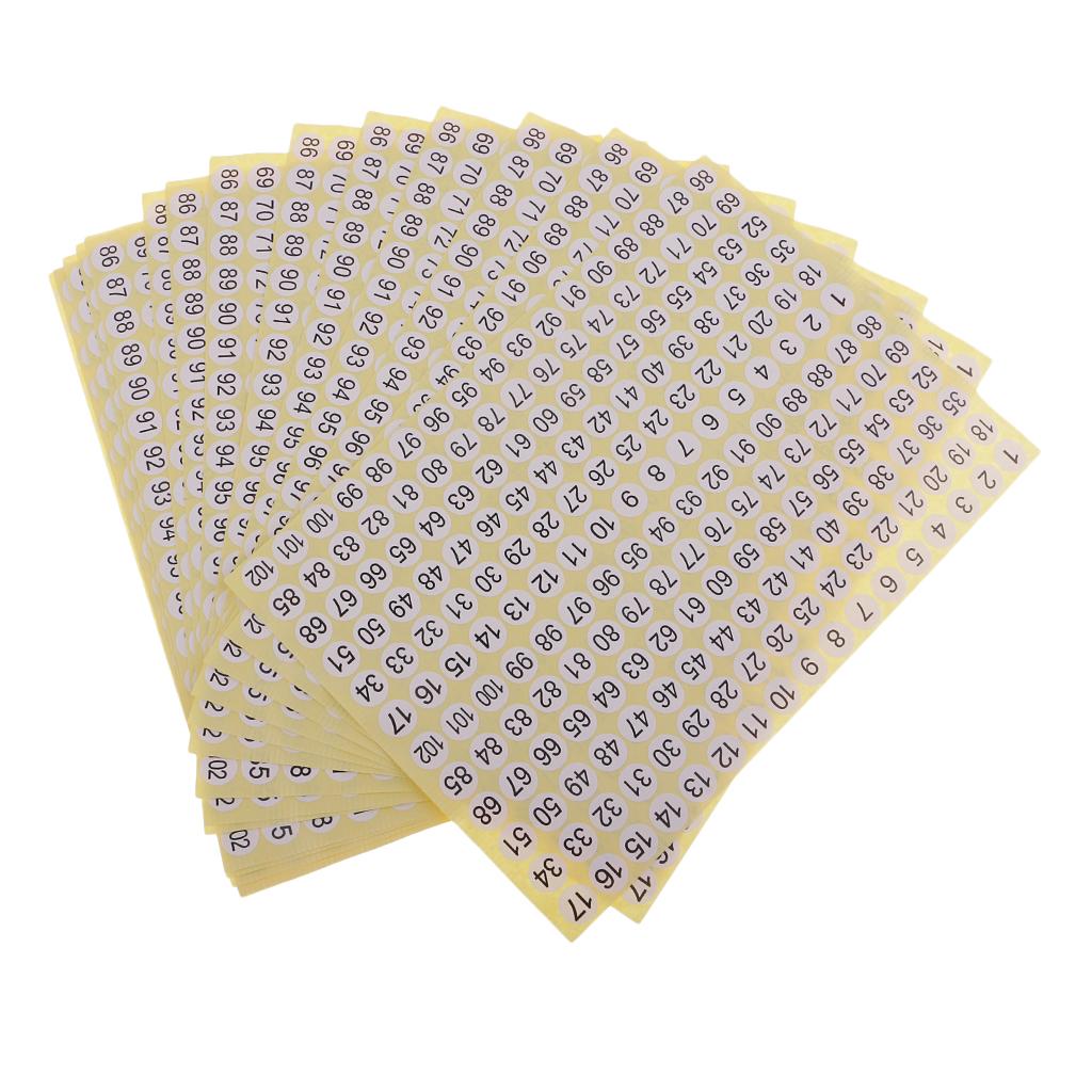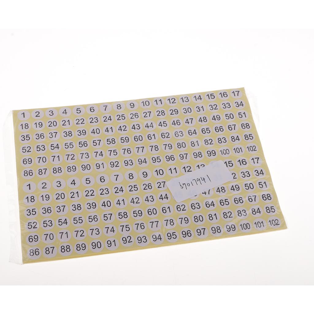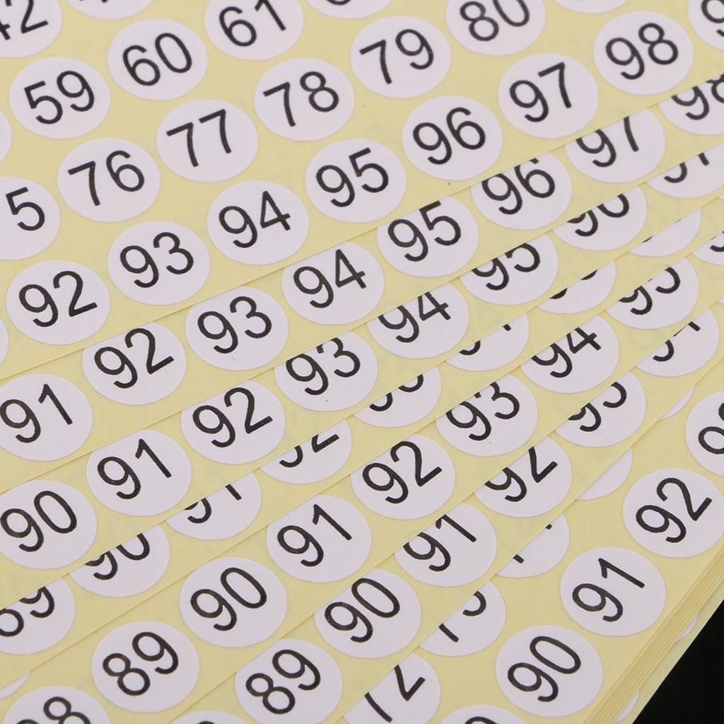 White Round Self Adhesive PVC Stickers with Black Numbers Printed