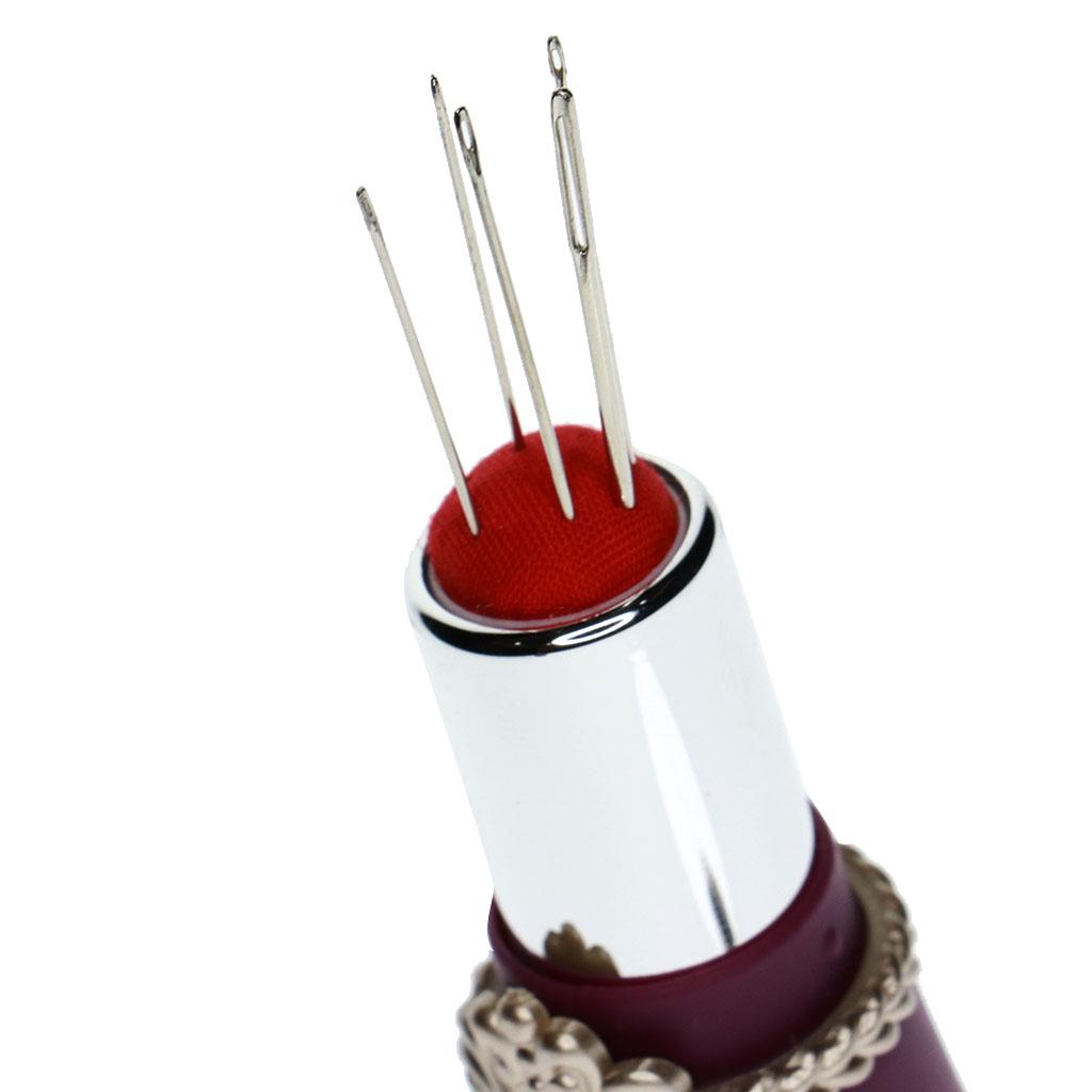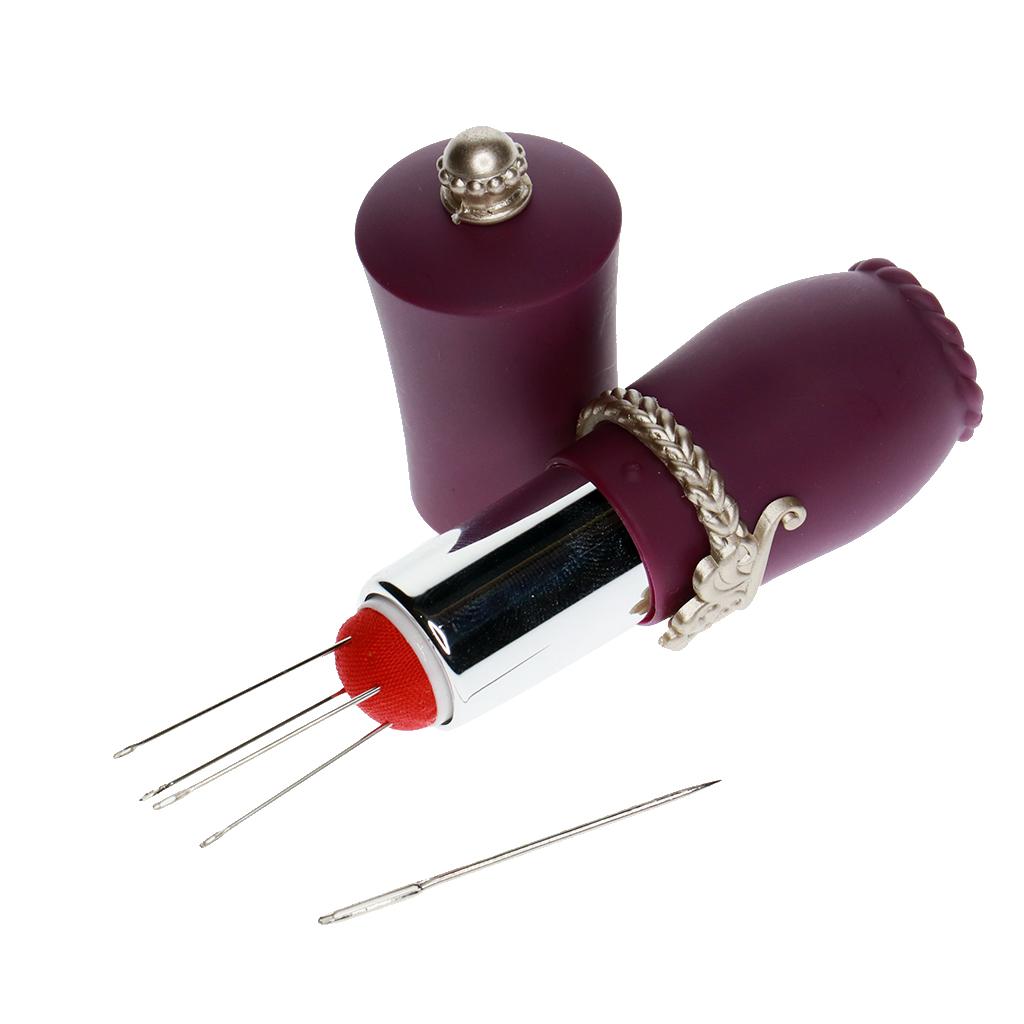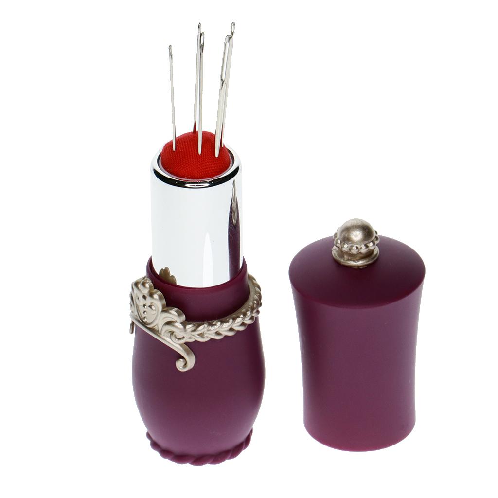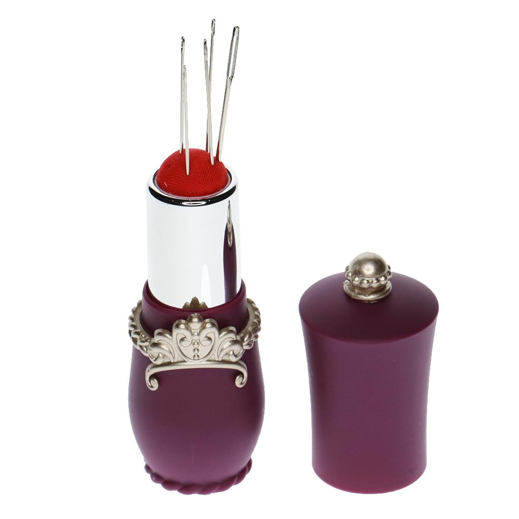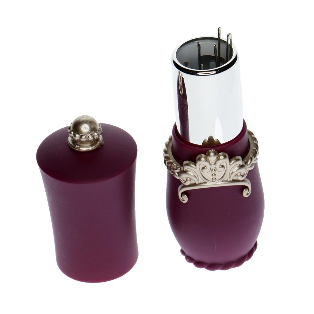 Lipstick Shaped Needles Pin Cushion Holder with 5pcs Sewing Needles Purple