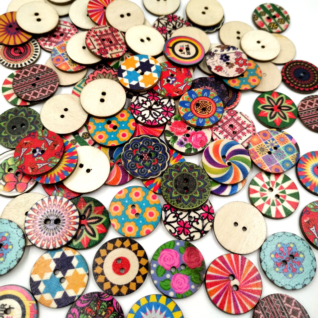 100pcs 25mm Round Wood Sewing Button DIY Clothing Bags Ornament Embellishments
