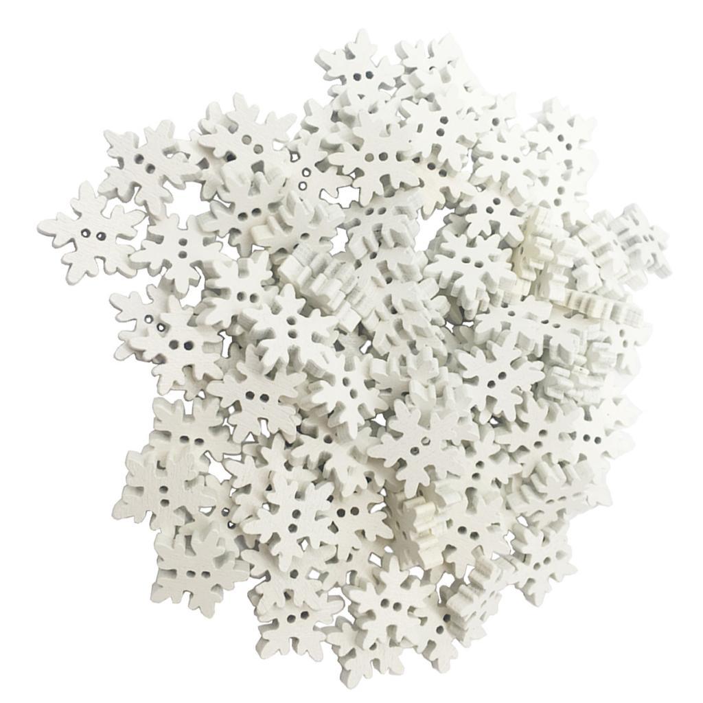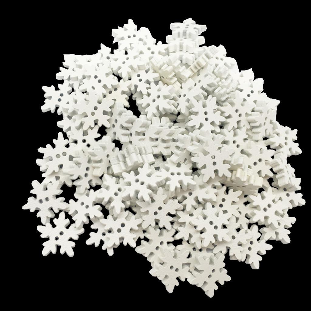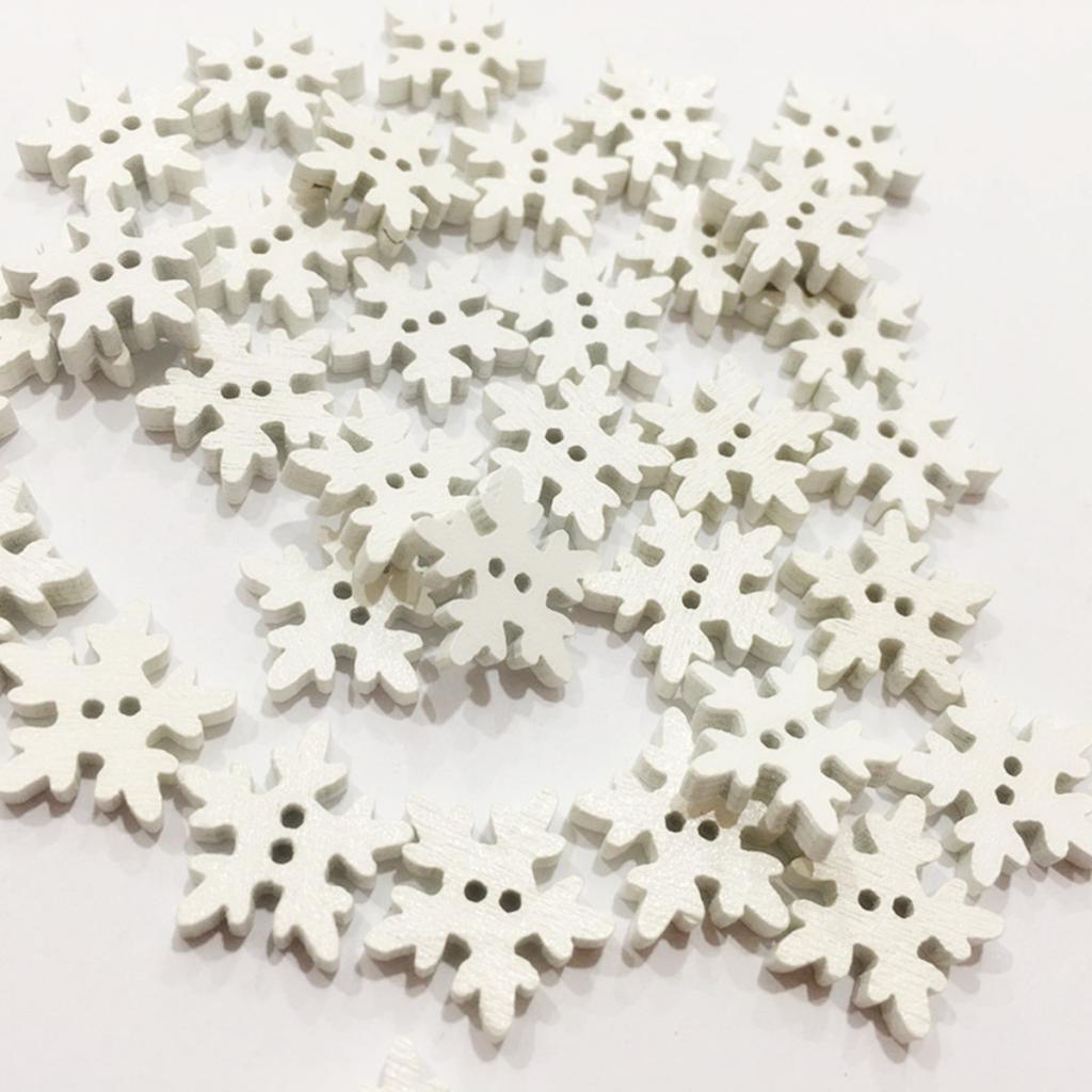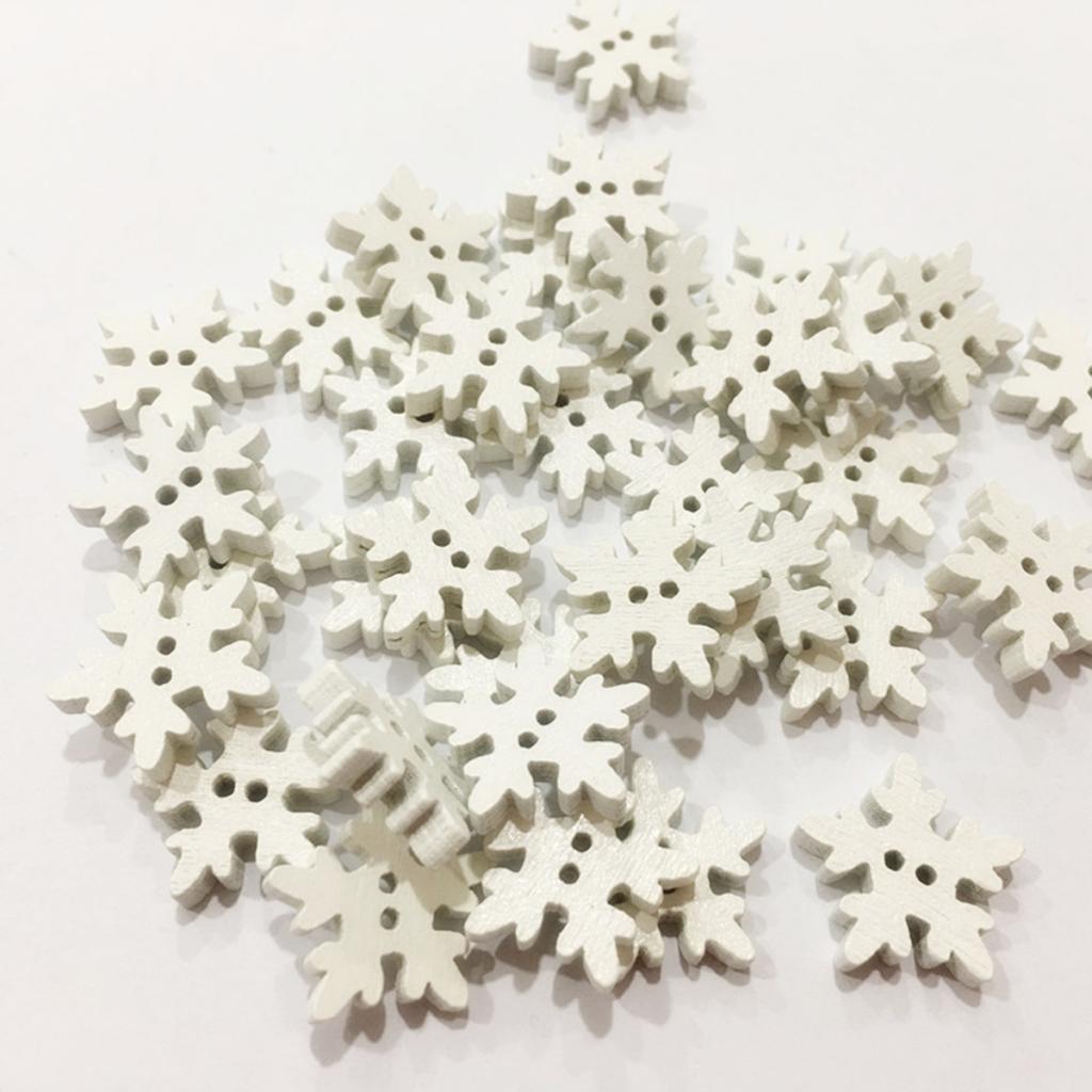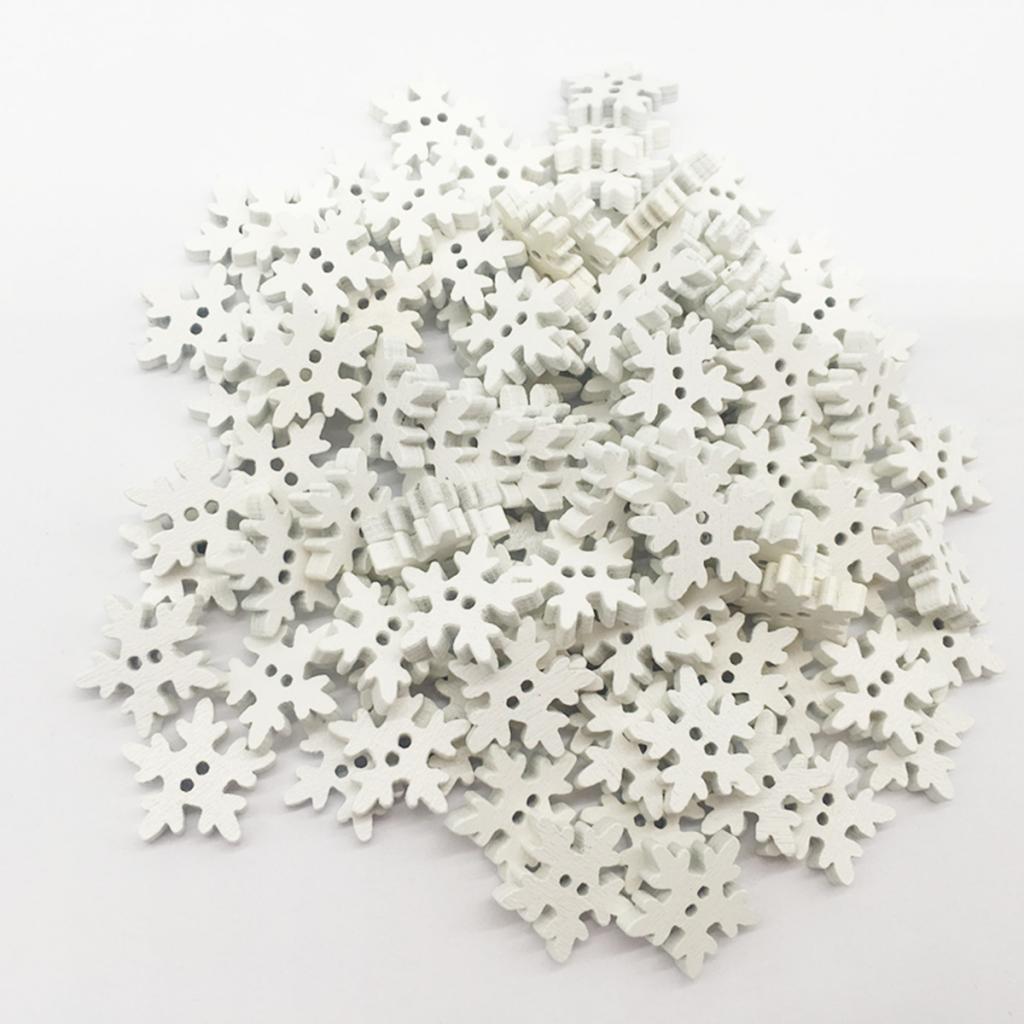 100Pcs White 2 Holes Snowflake Wooden Buttons for DIY Sewing Accessories