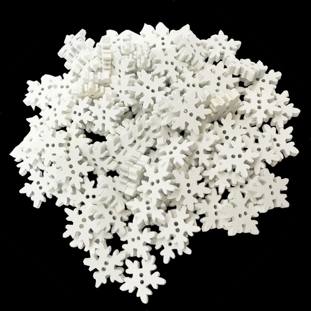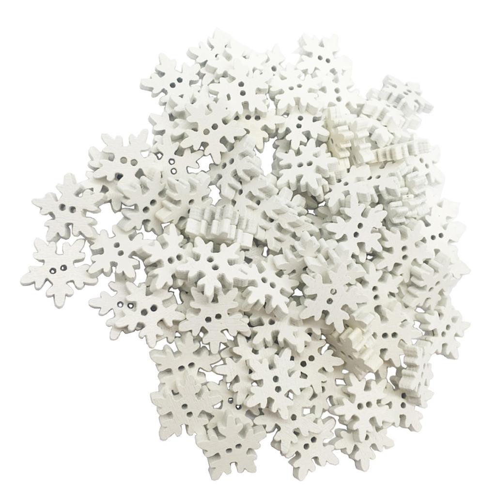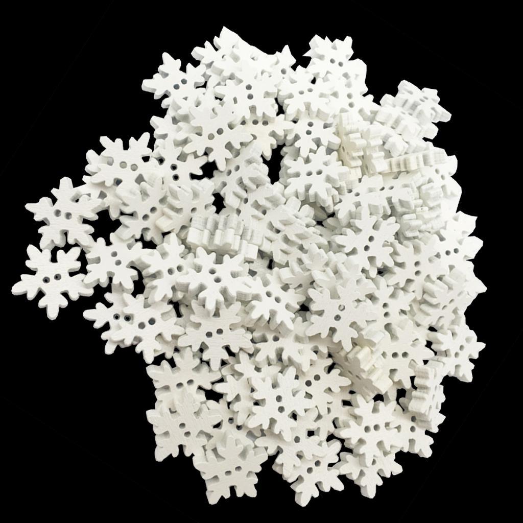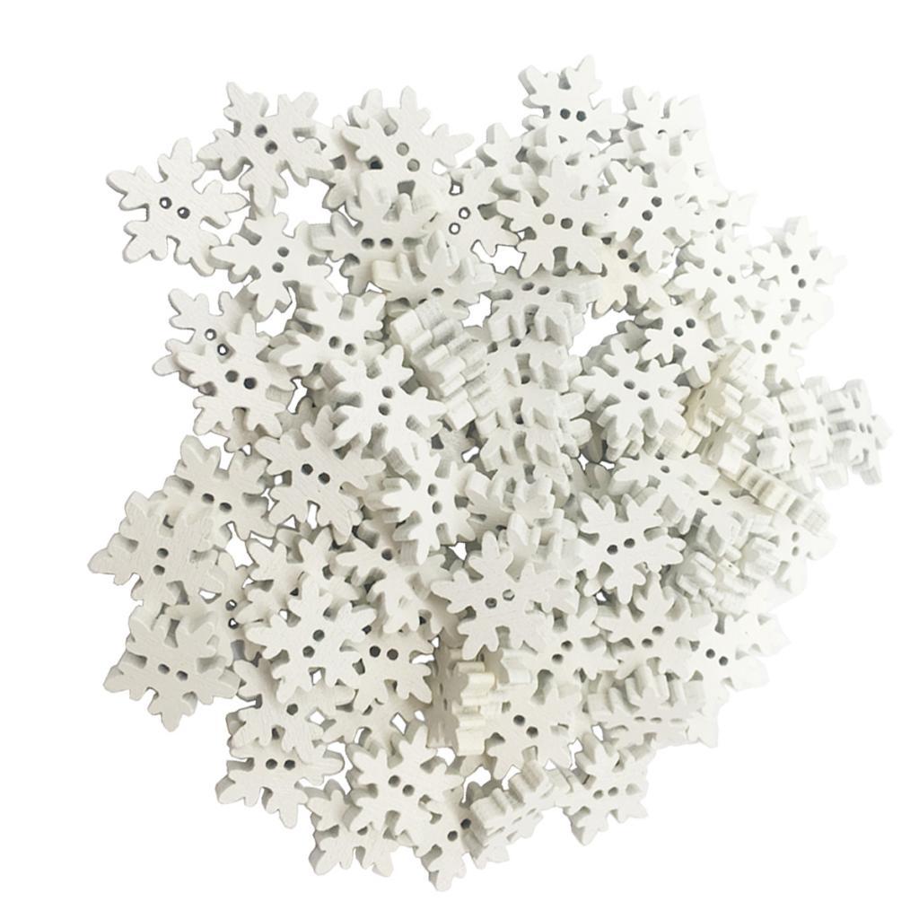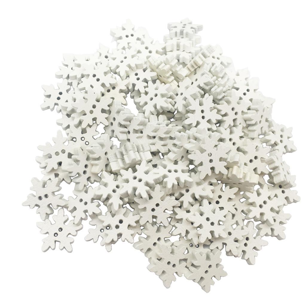 100Pcs White 2 Holes Snowflake Wooden Buttons for DIY Sewing Accessories
