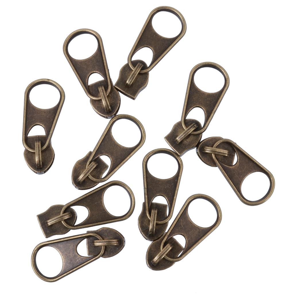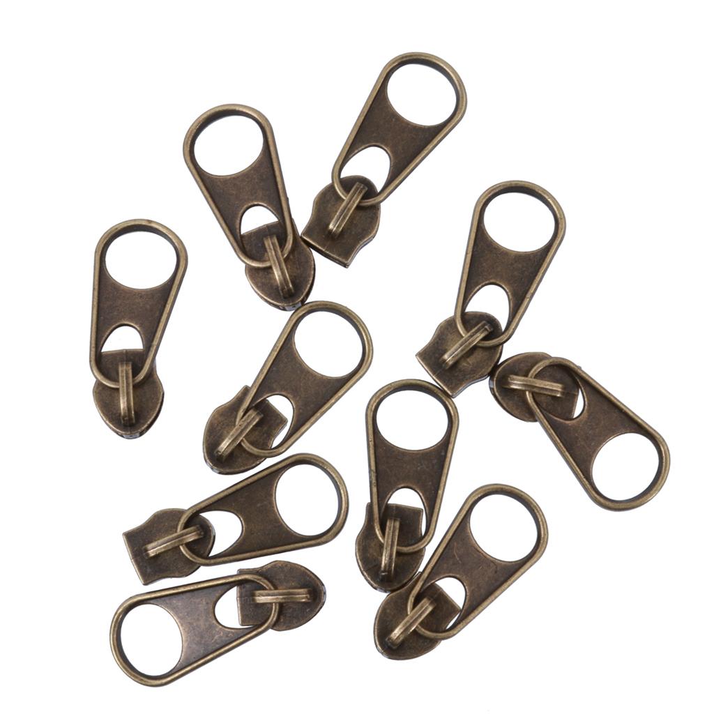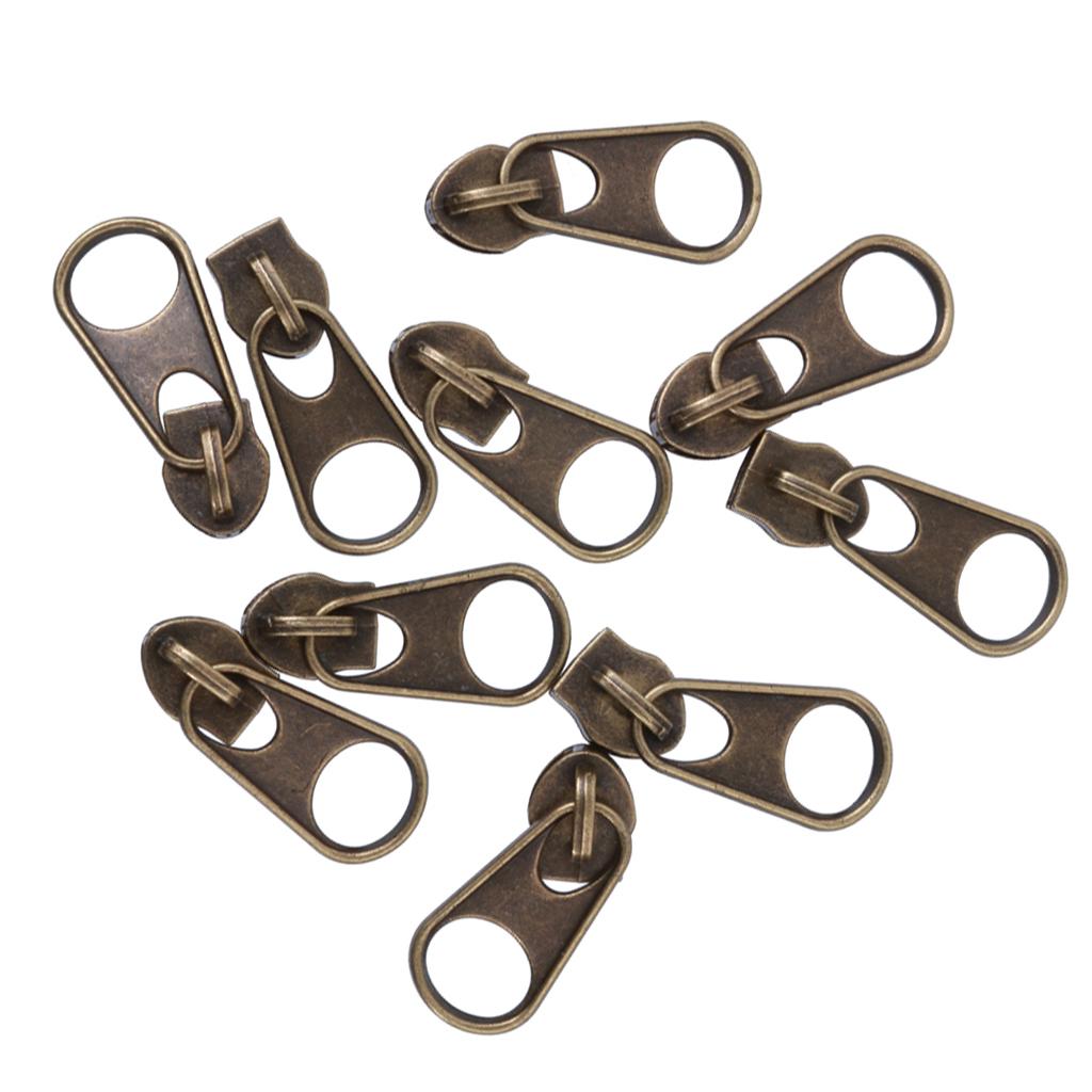 10pcs Bronze Round Hole Zip Puller/Zipper Pull Sliders Head Zipper Repair Kit