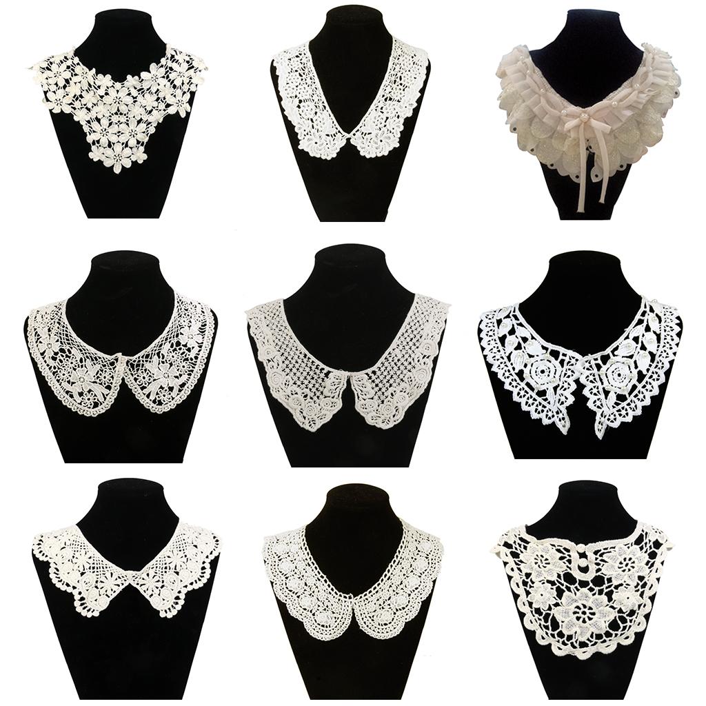 1pair White Flower DIY Lace Collar Sewing Craft Neckline Trimming Decoration