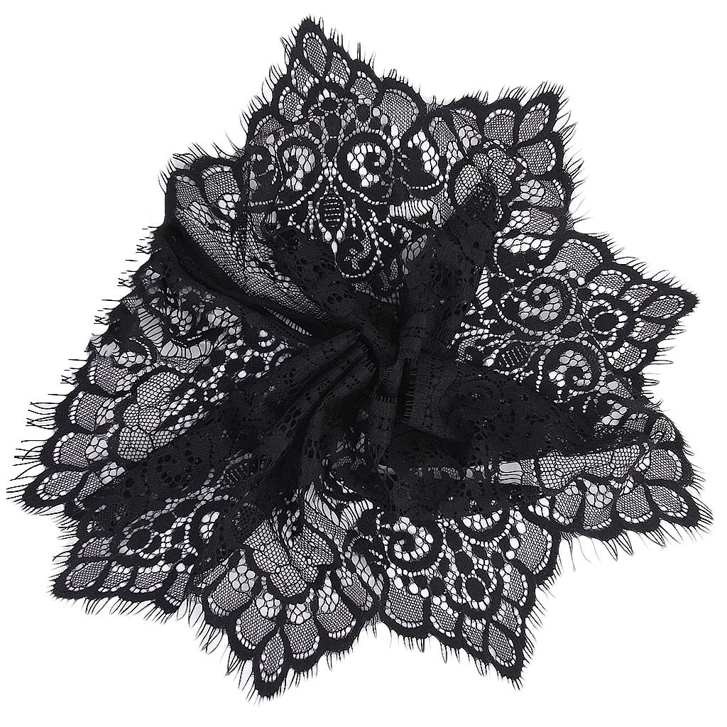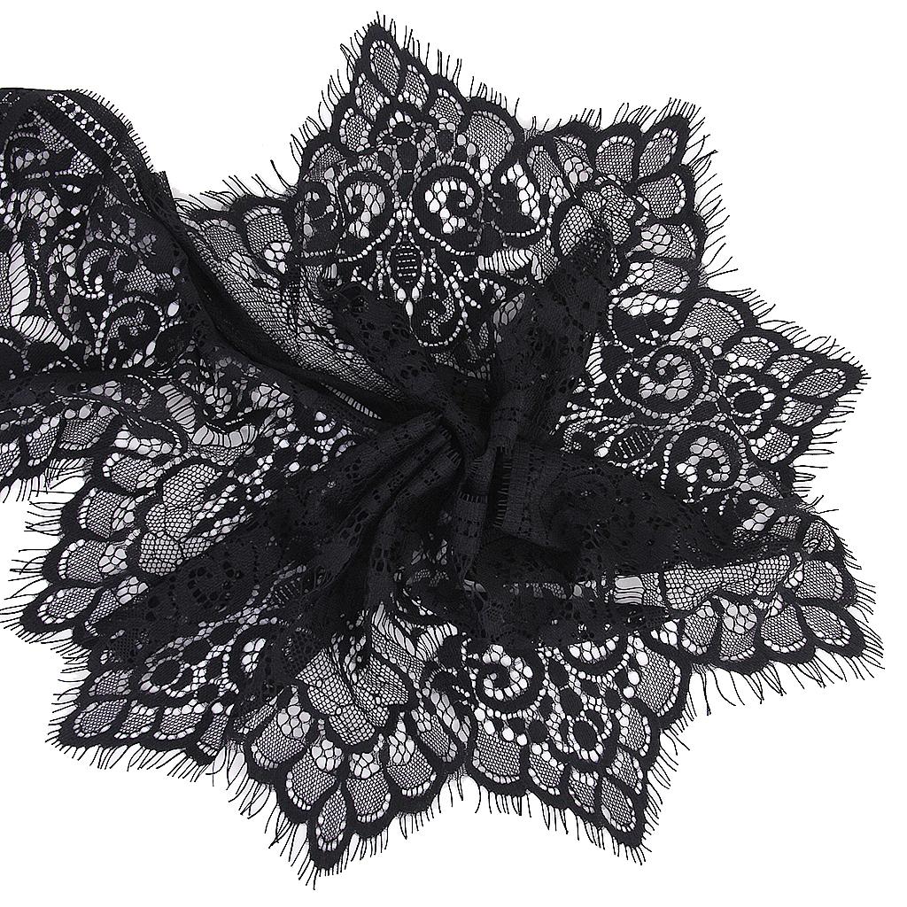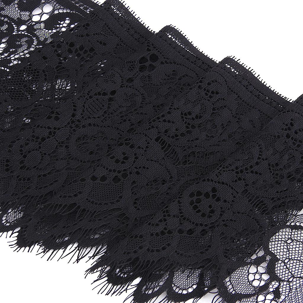3 Yard 19cm Wide Black Eyelash Lace Trim DIY Sewing Applique
