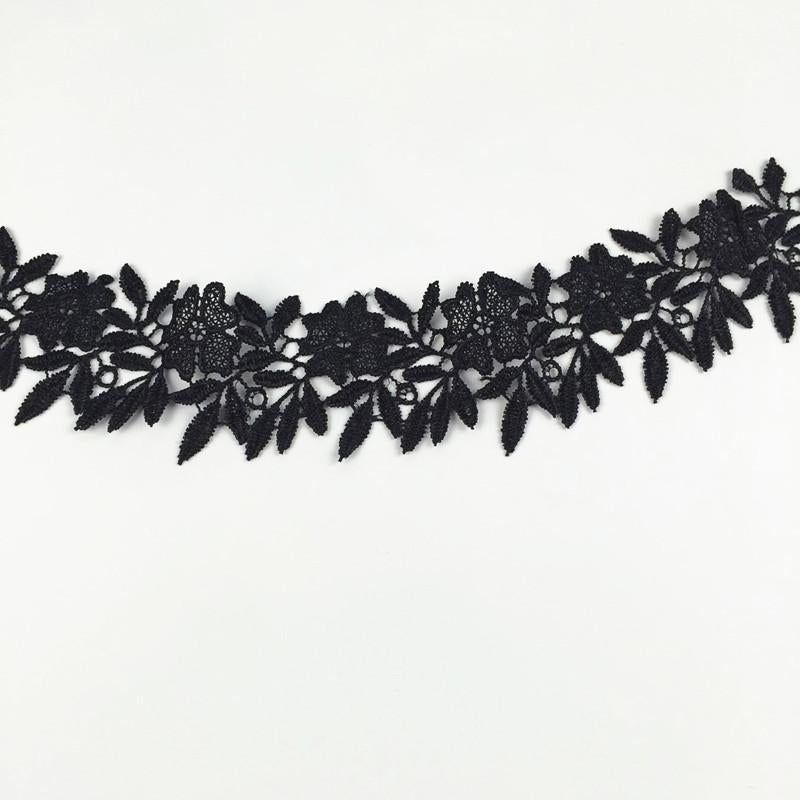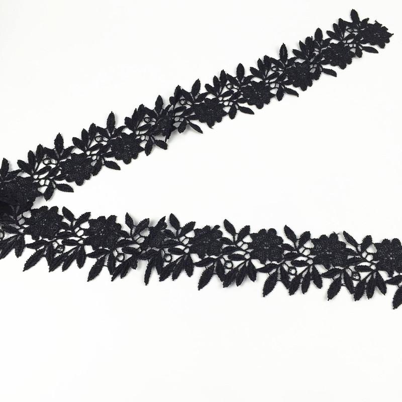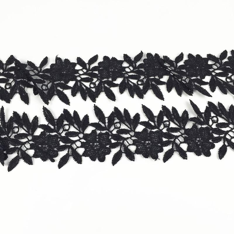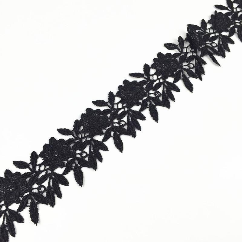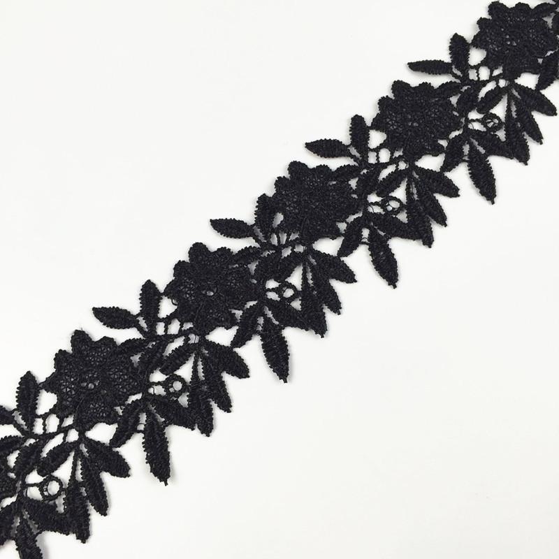3Yard Embroidered Floral Lace Trim Applique Sewing DIY Craft Black 5cm