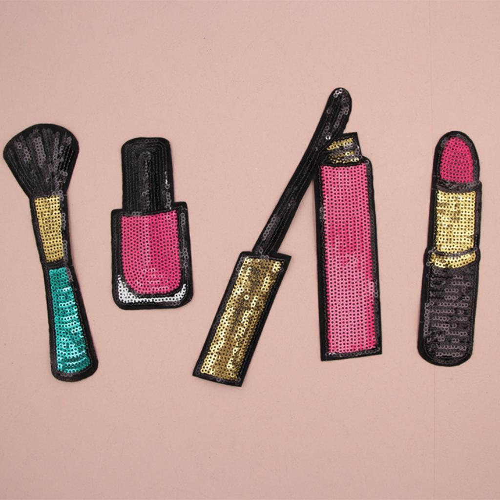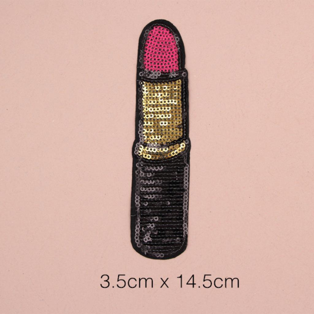 4 Pieces Fashion Lipstick Makeup Embroidered Sequin Iron on Appliques Patches for Clothing jackets Jeans Backpacks