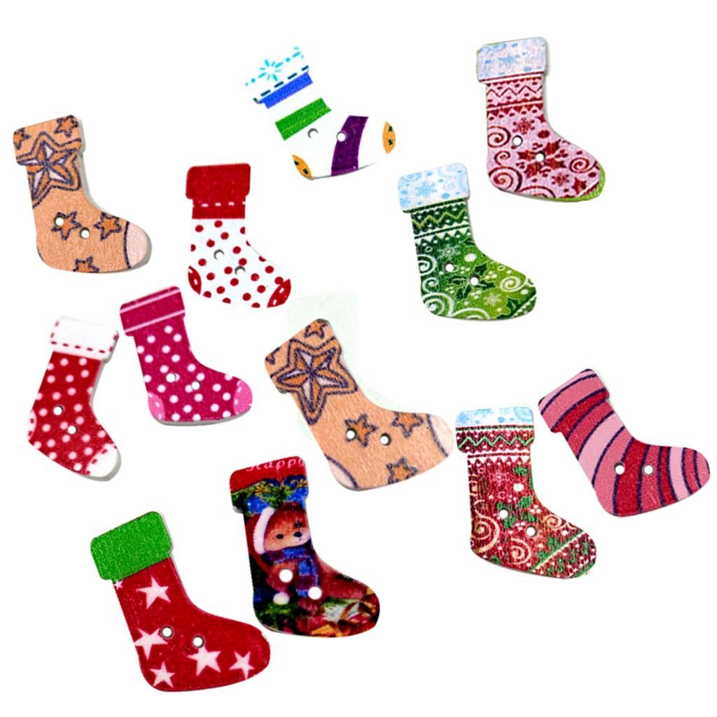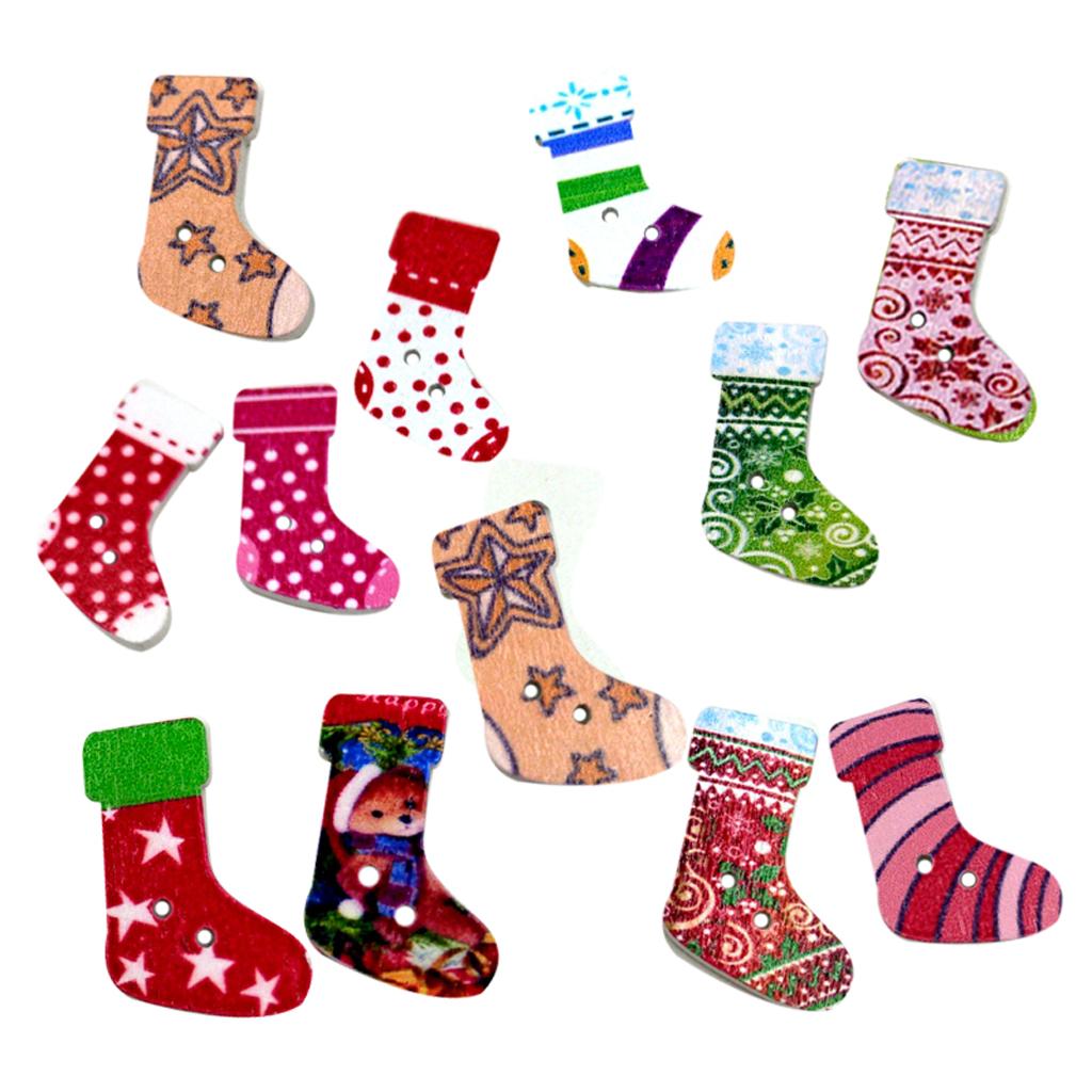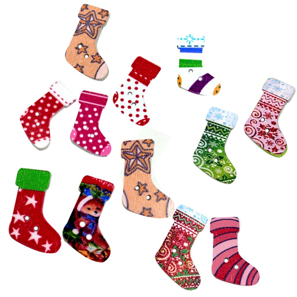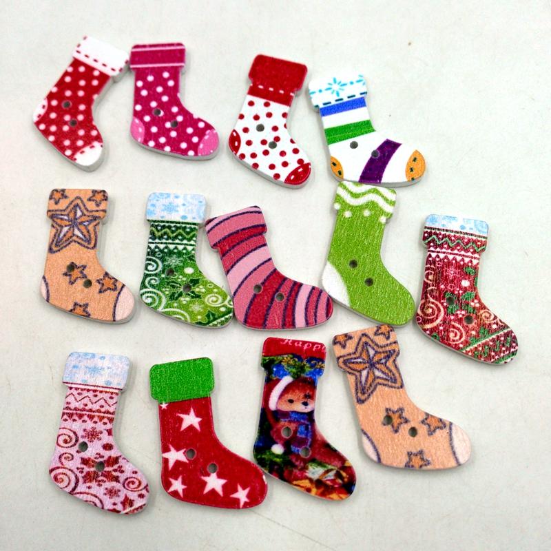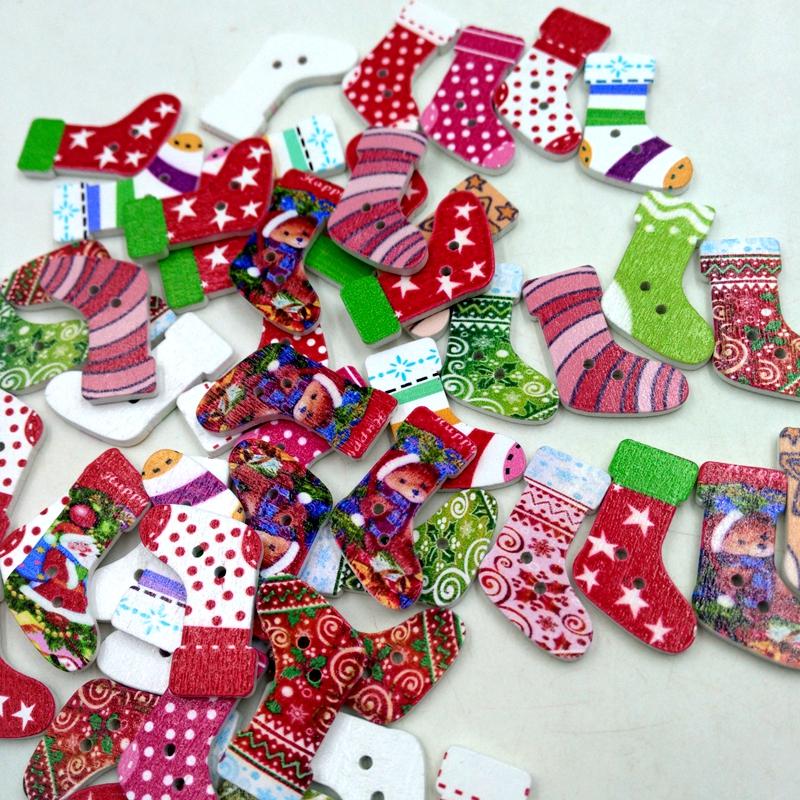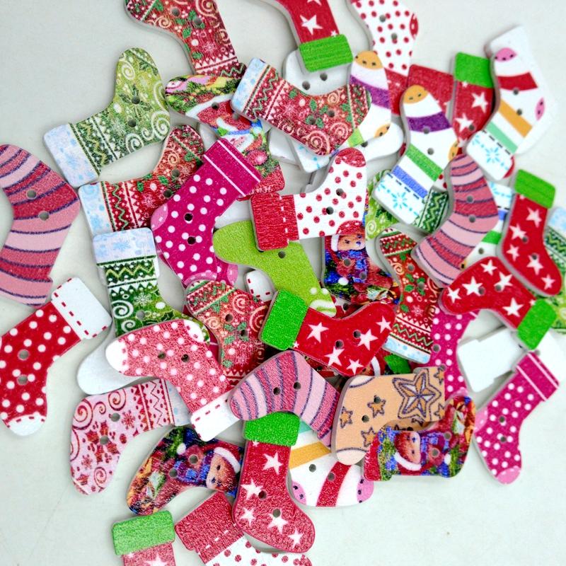 50 Colorful Xmas Stocking Wooden Buttons Embellishment Sewing Craft DIY 30mm