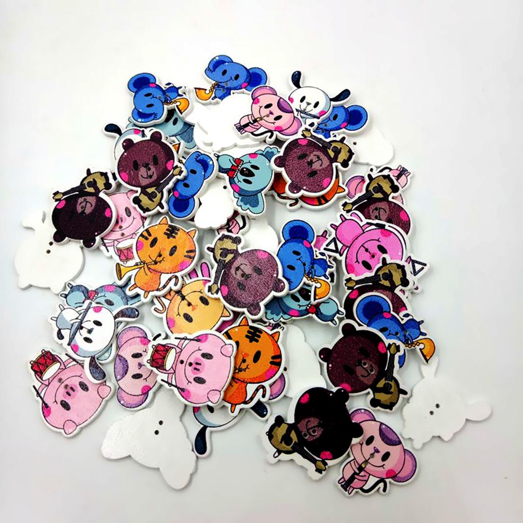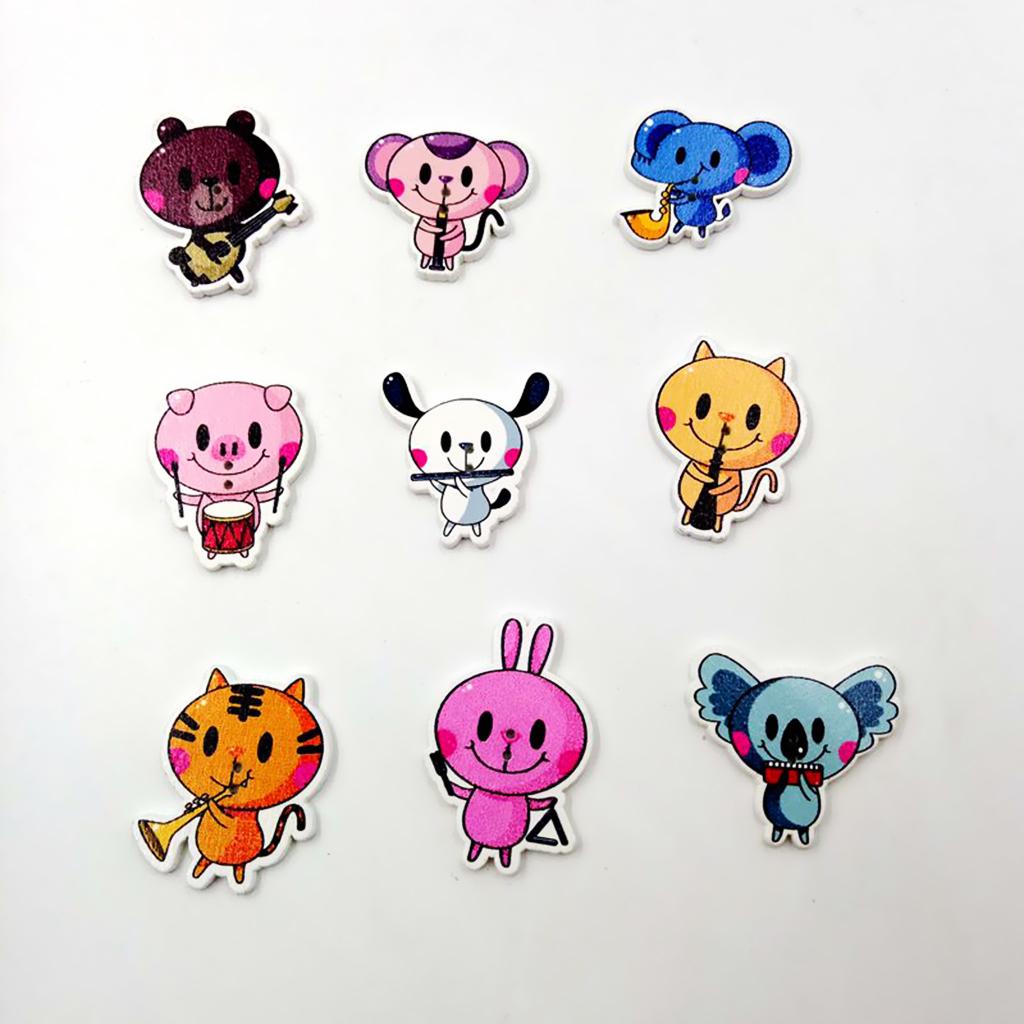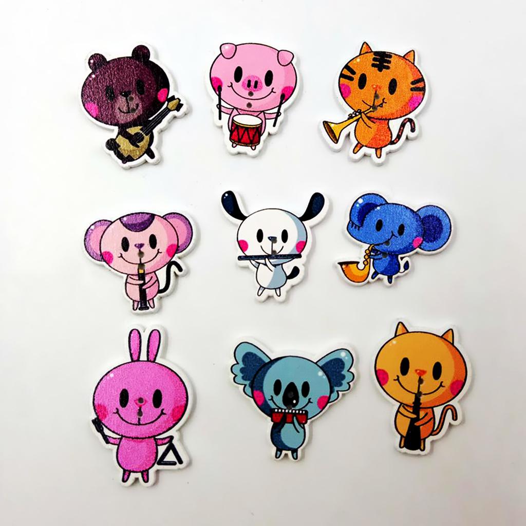 2-hole white back cartoon animal patterned wooden buttons.