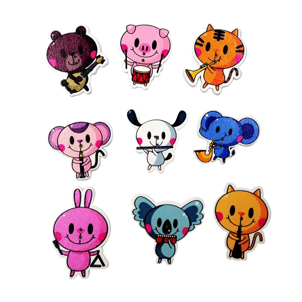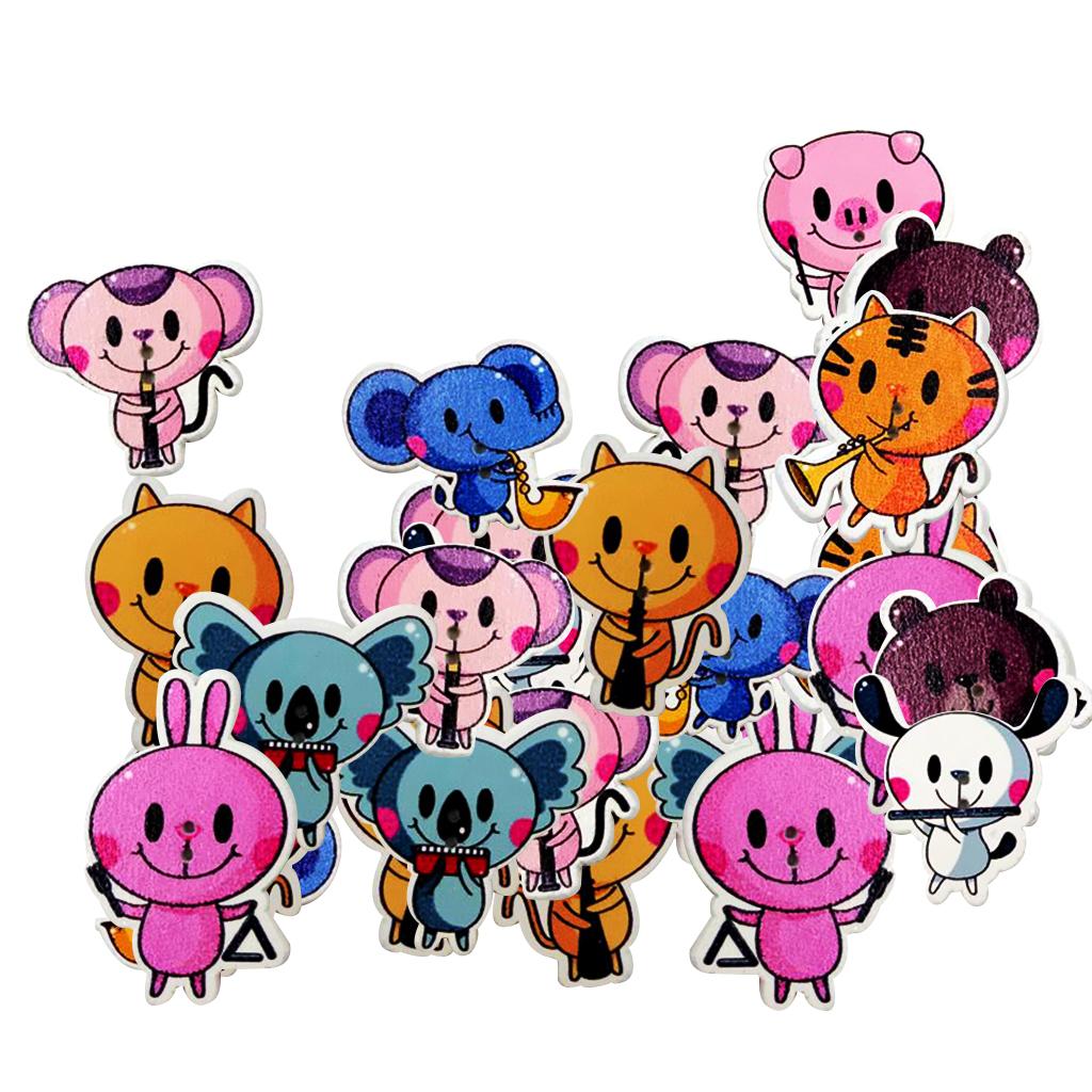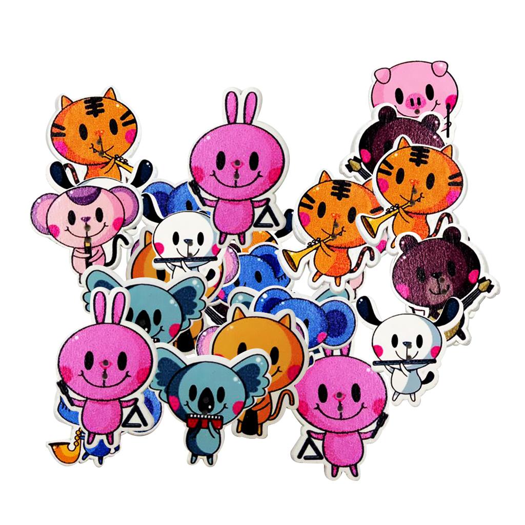 2-hole white back cartoon animal patterned wooden buttons.