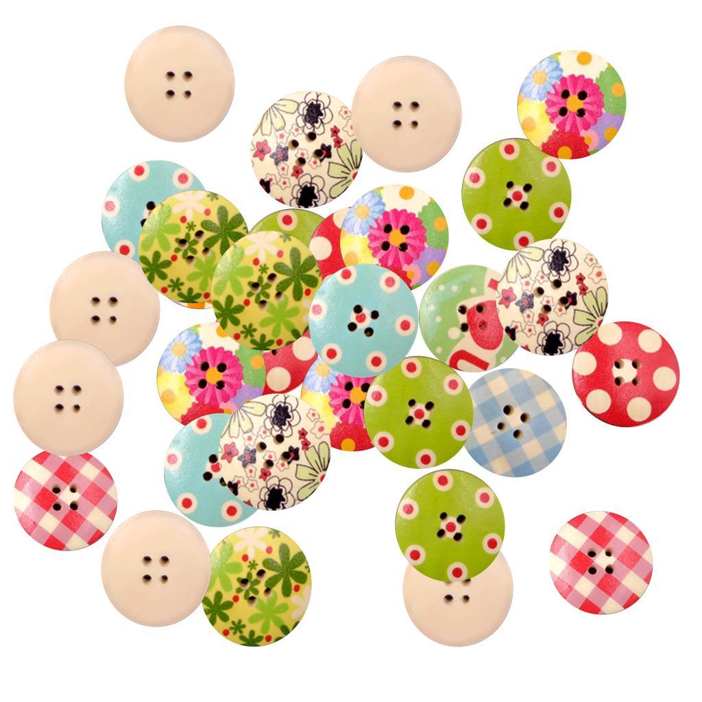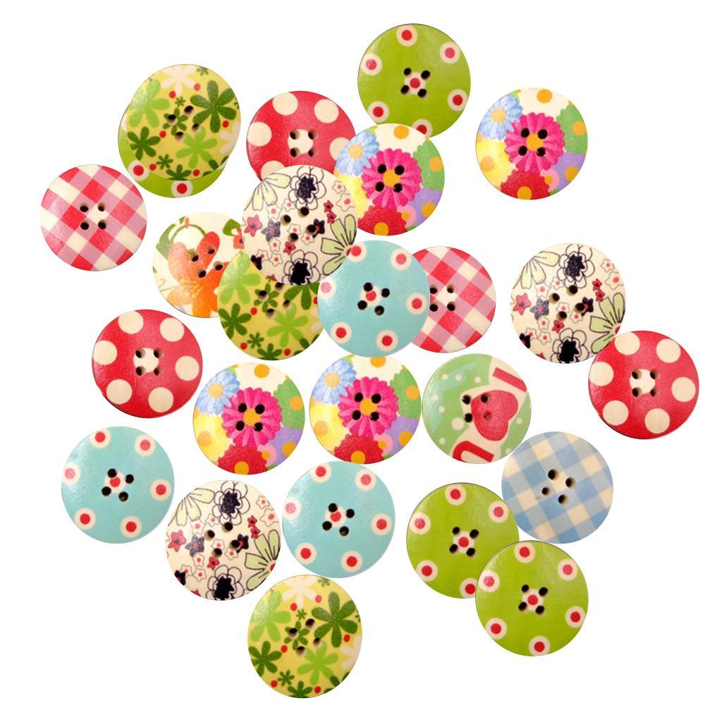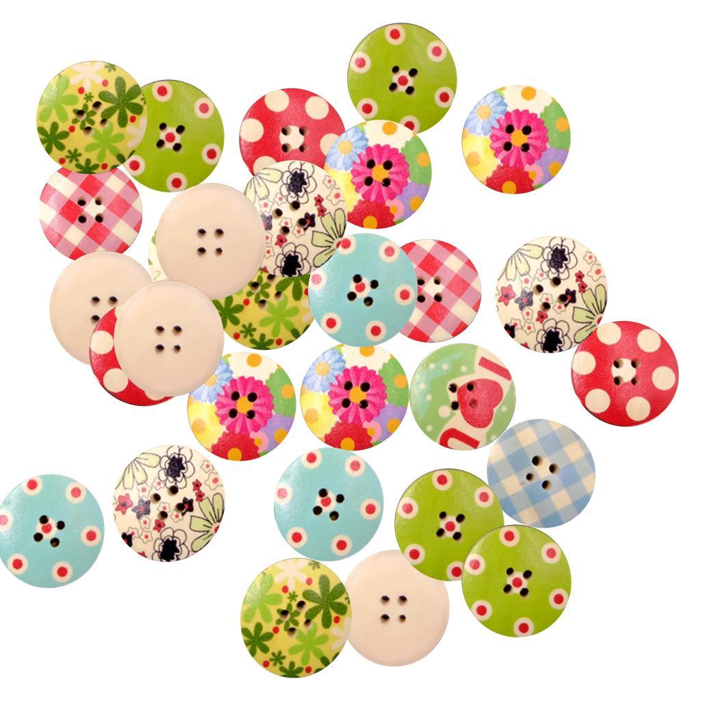 50 Pieces Assorted Printed Wooden Buttons for Sewing and Craft 25mm