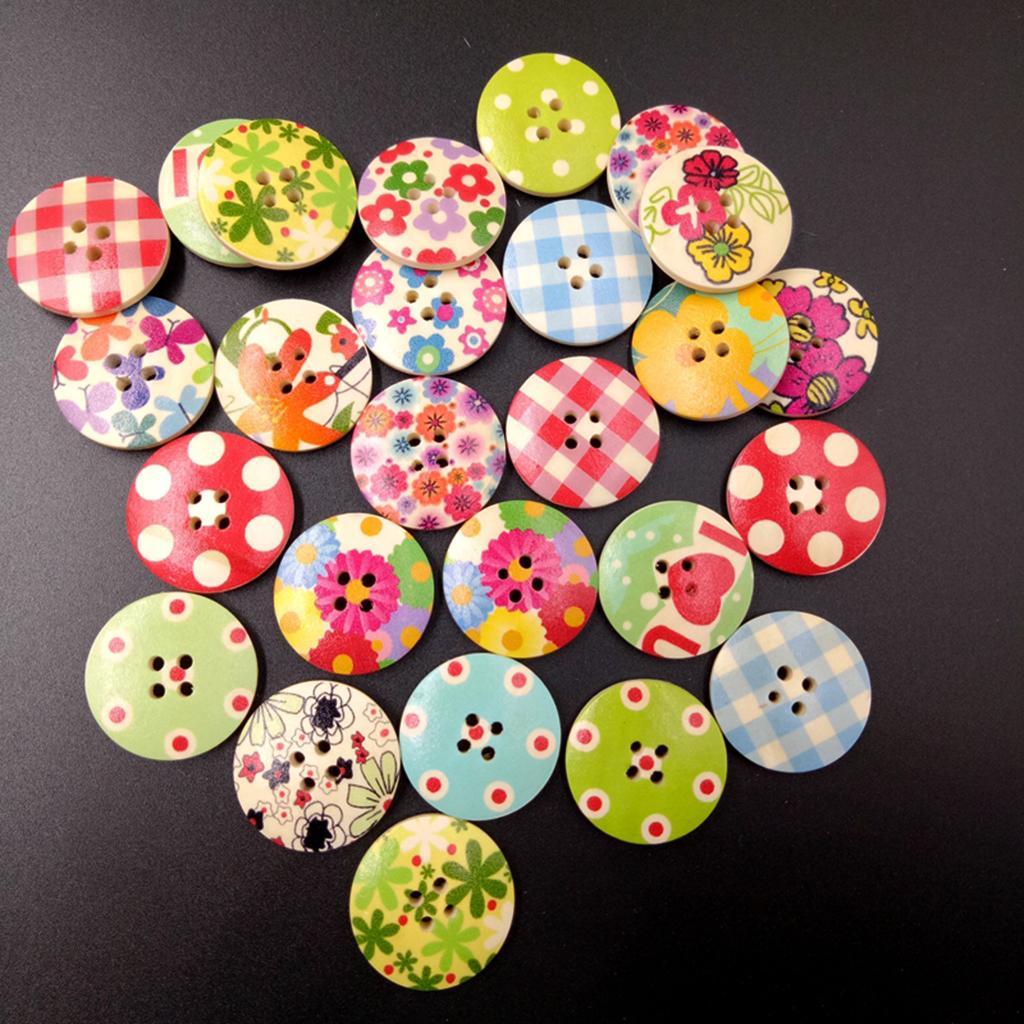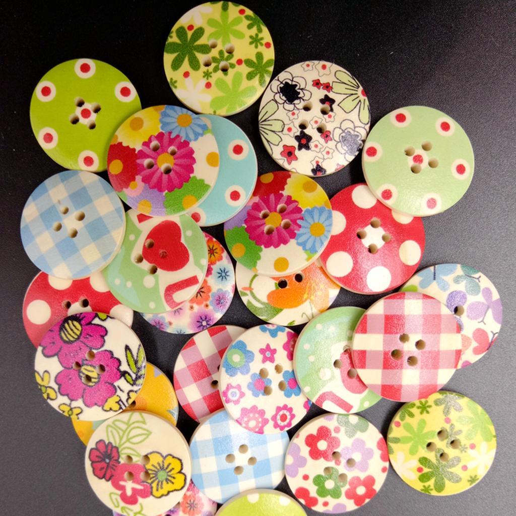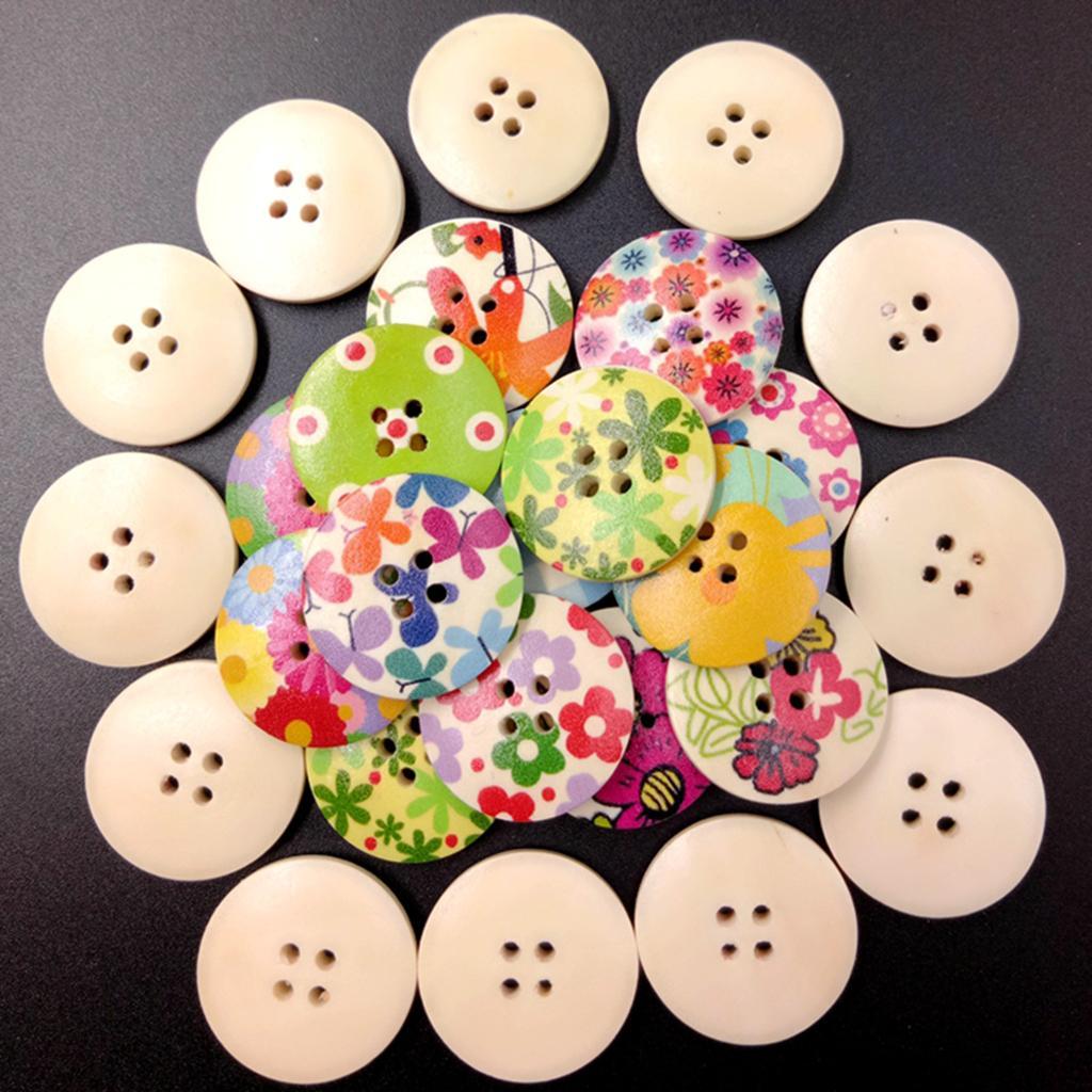50 Pieces Assorted Printed Wooden Buttons for Sewing and Craft 25mm