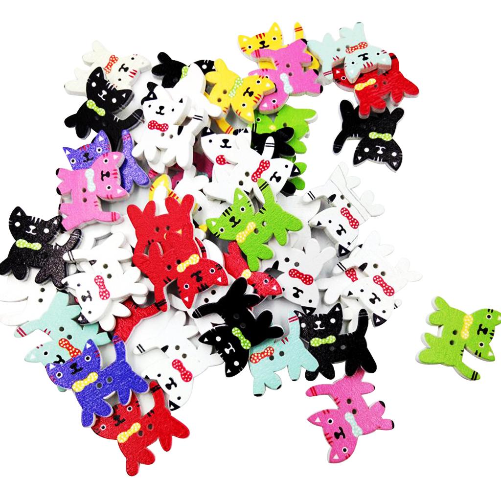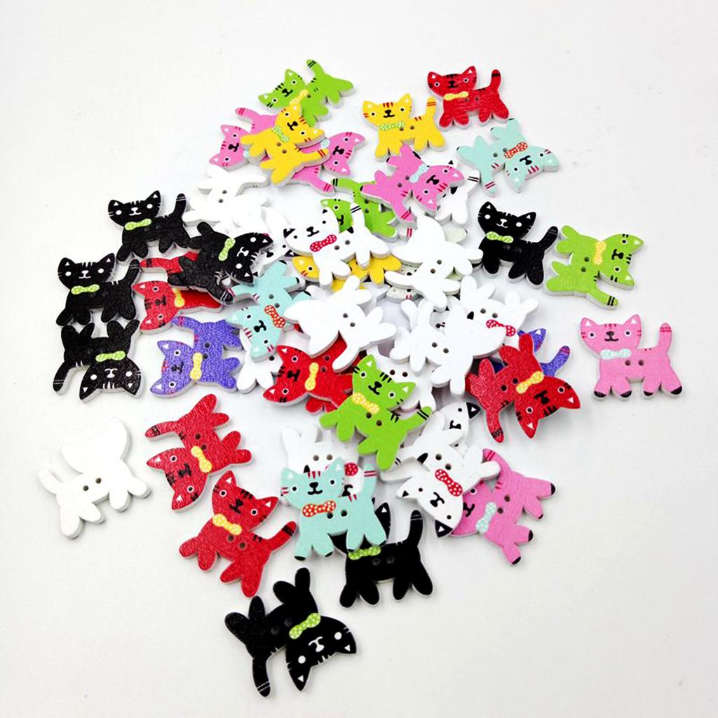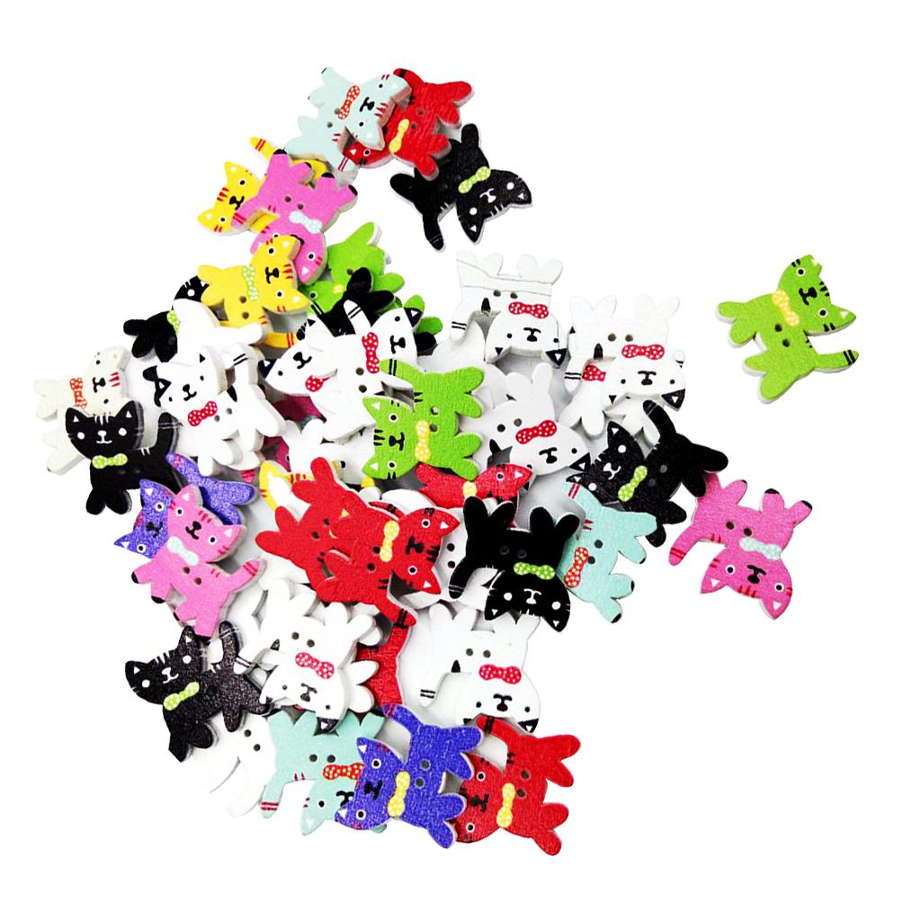 2-hole white back cartoon cat in a bow tie patterned wooden buttons.