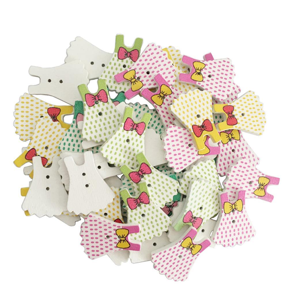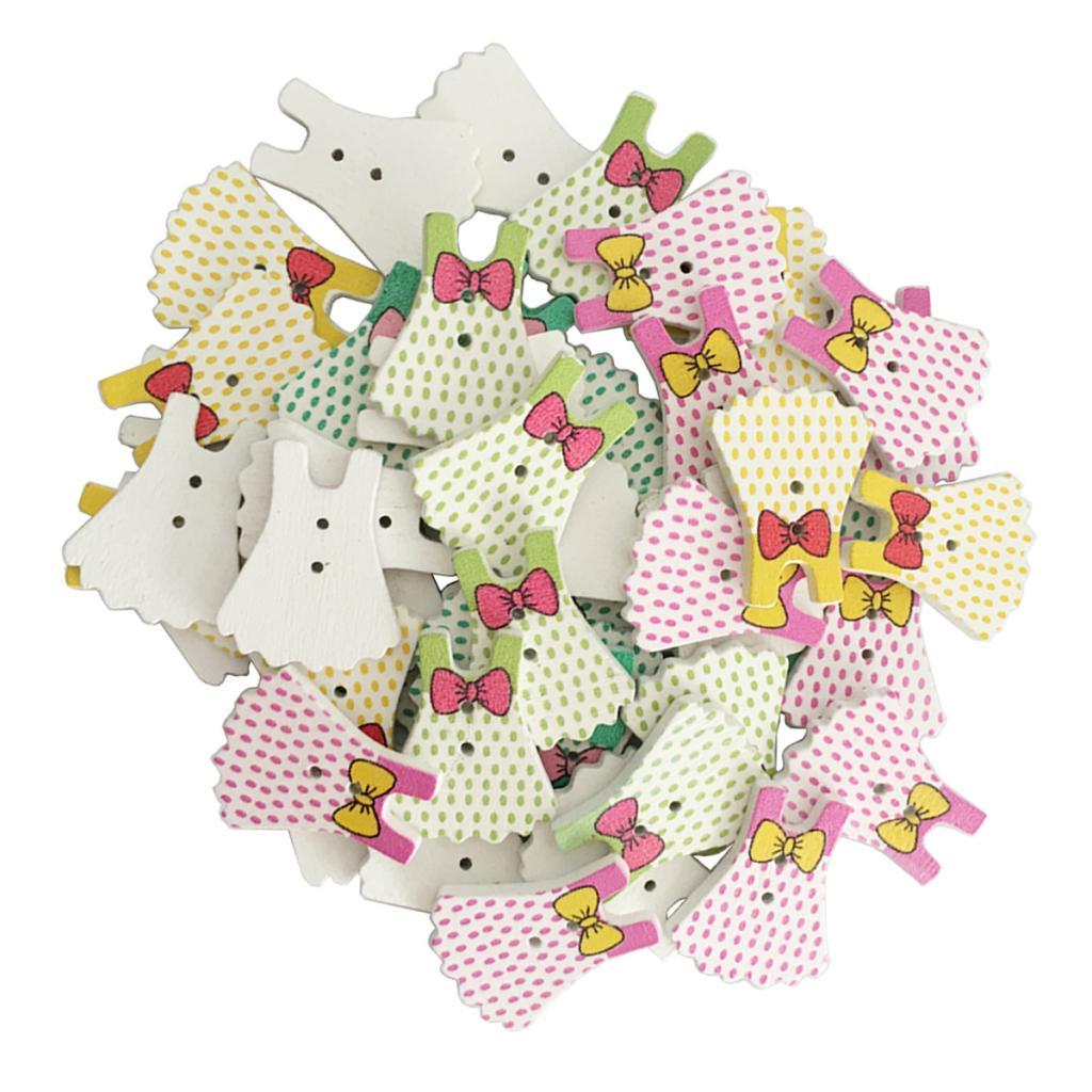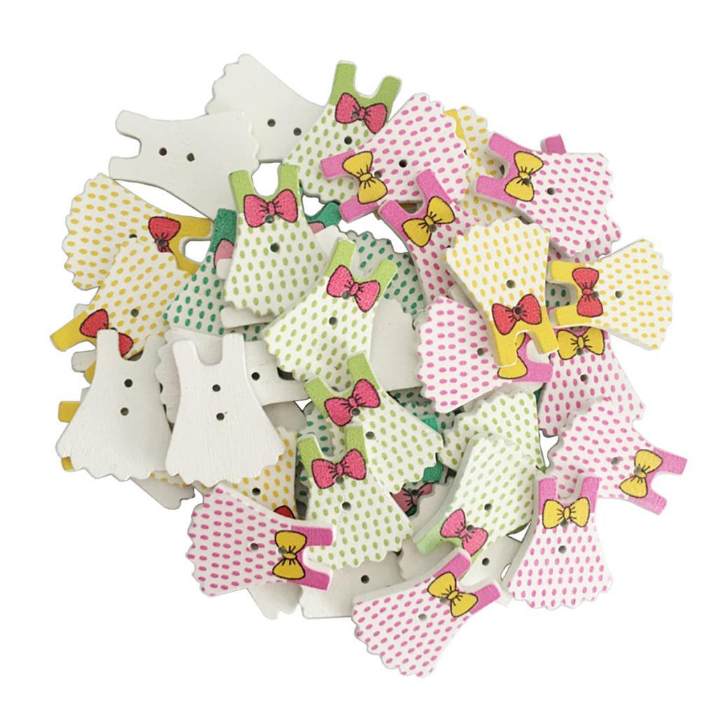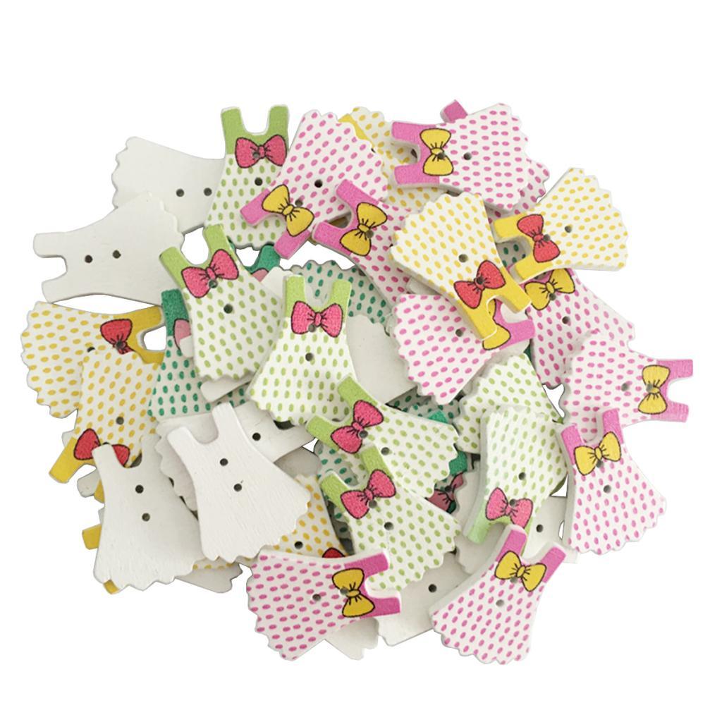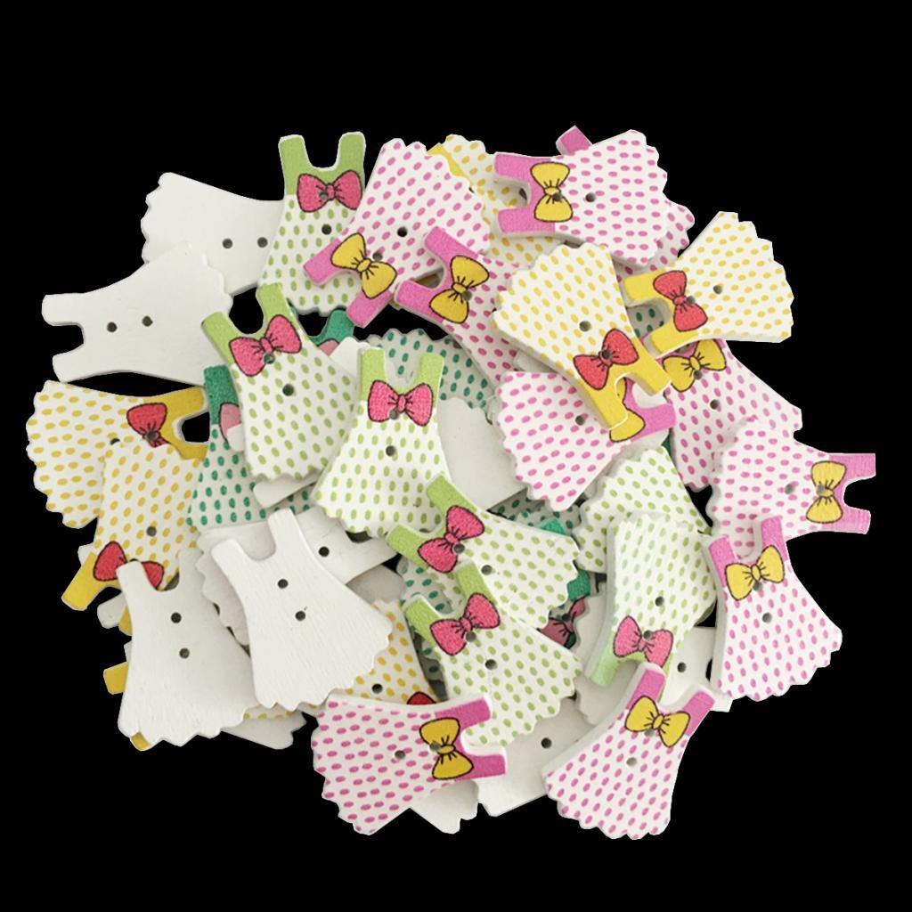 50 Pieces Mixed Dress Shaped Wooden Buttons Polka Dot Buttons for DIY Sewing Scrapbooking