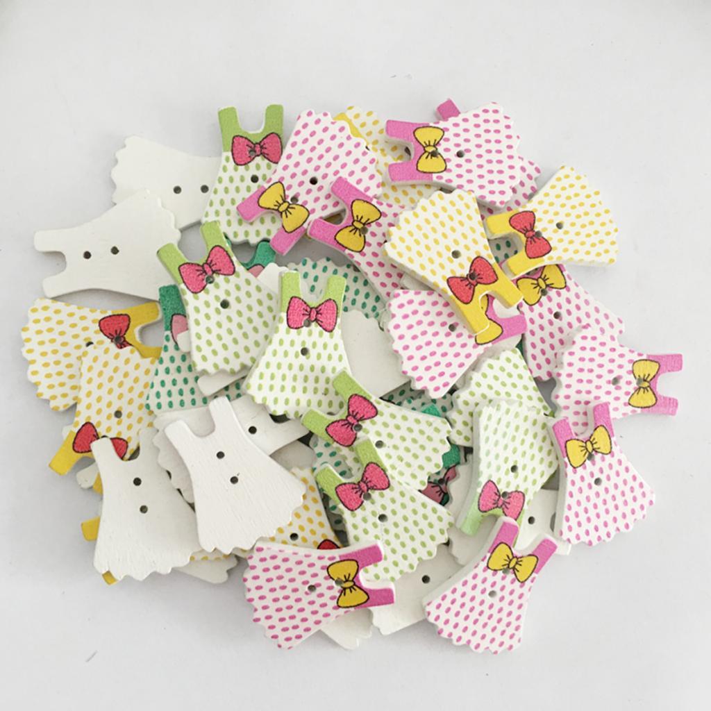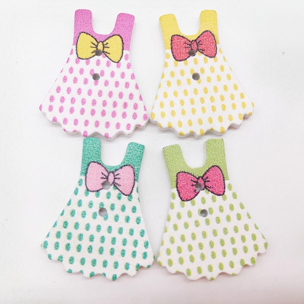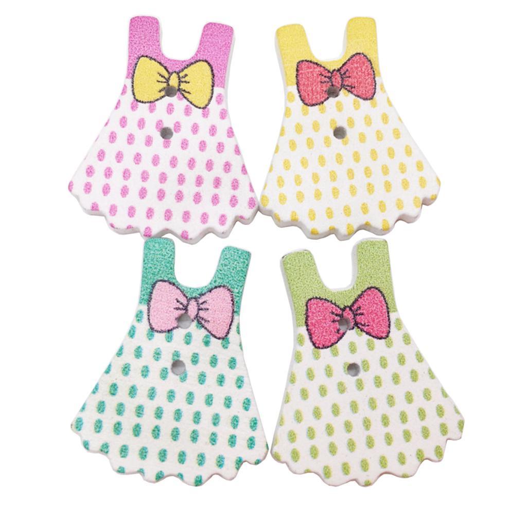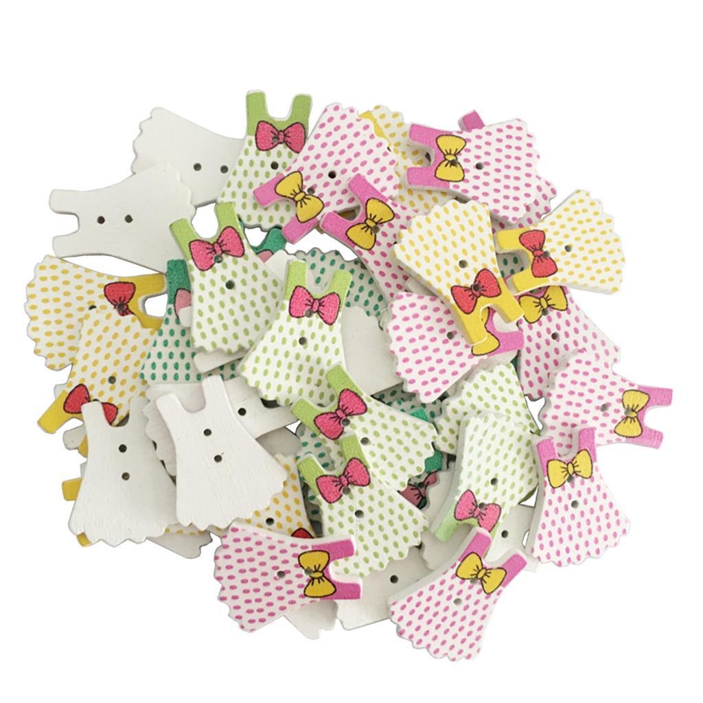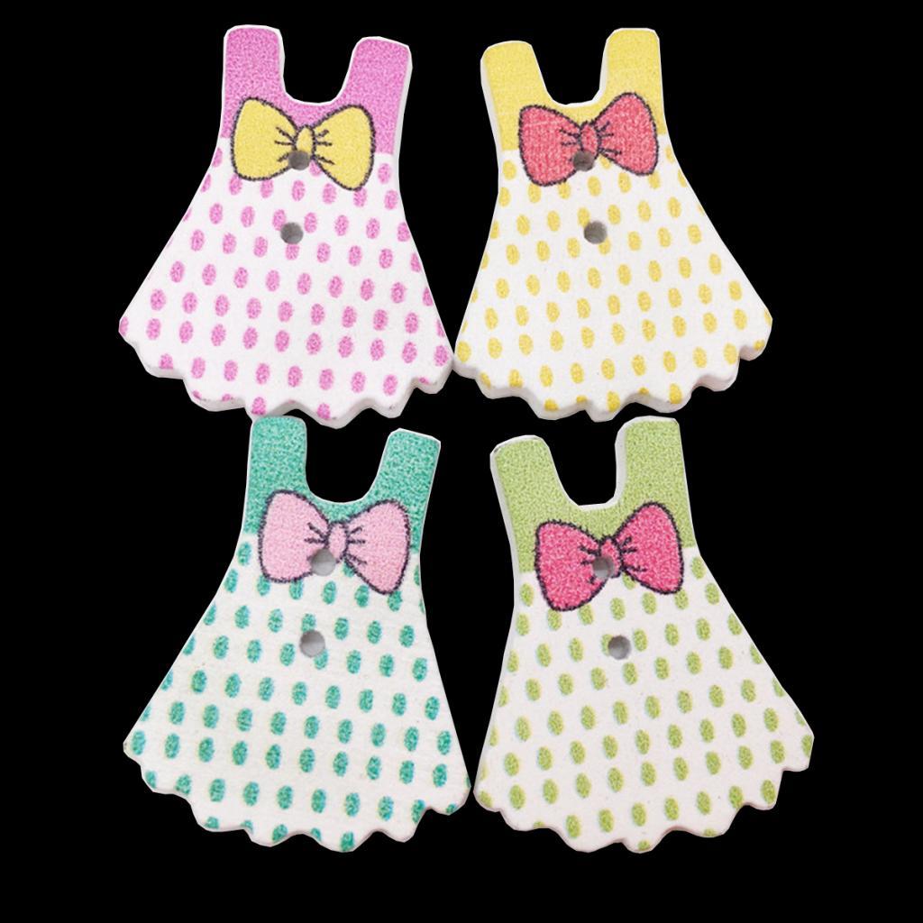 50 Pieces Mixed Dress Shaped Wooden Buttons Polka Dot Buttons for DIY Sewing Scrapbooking