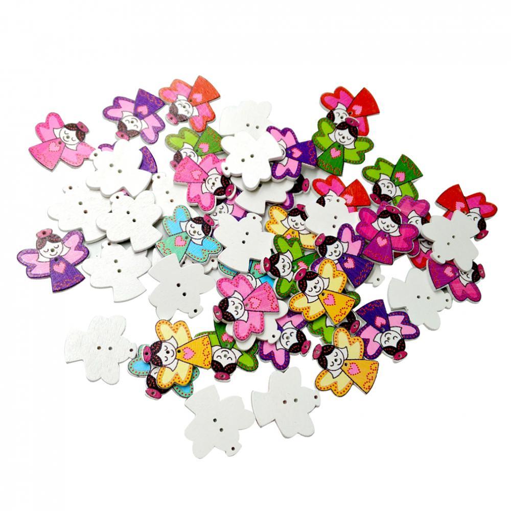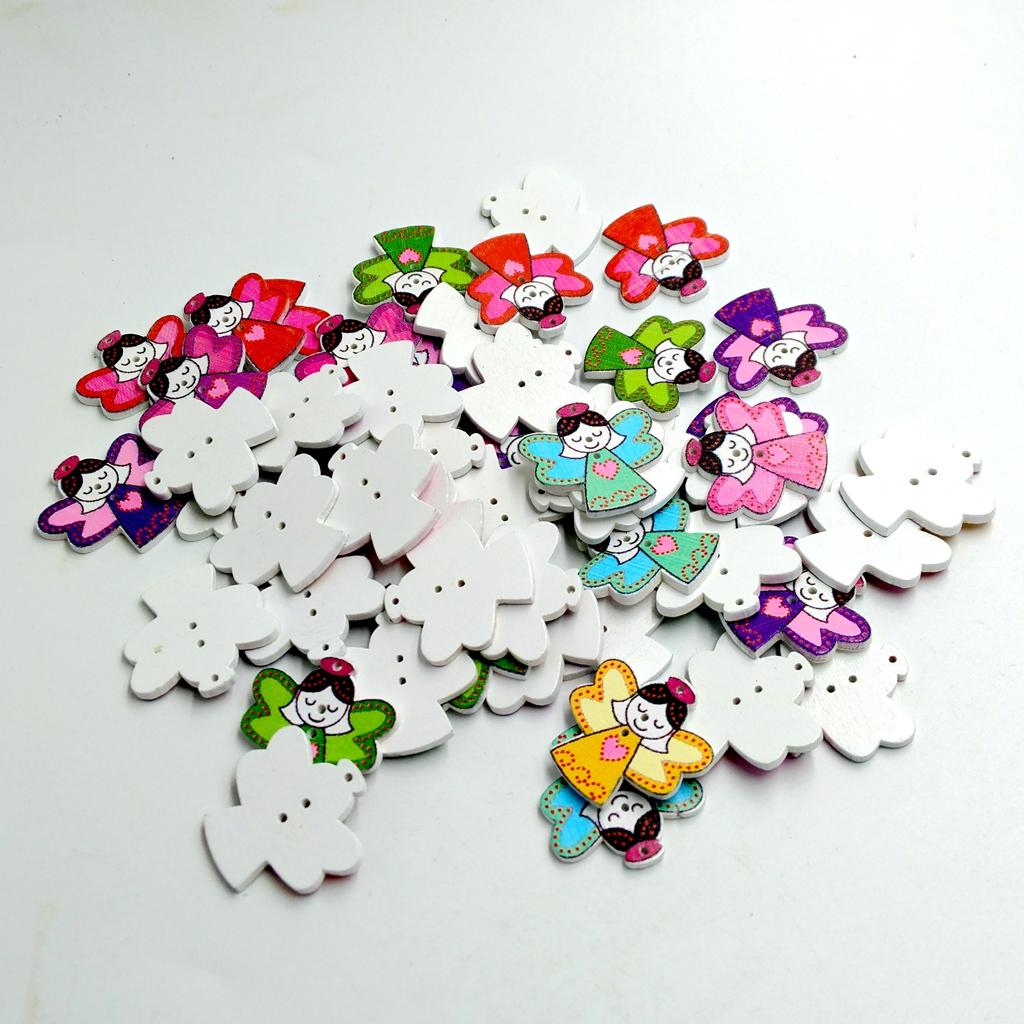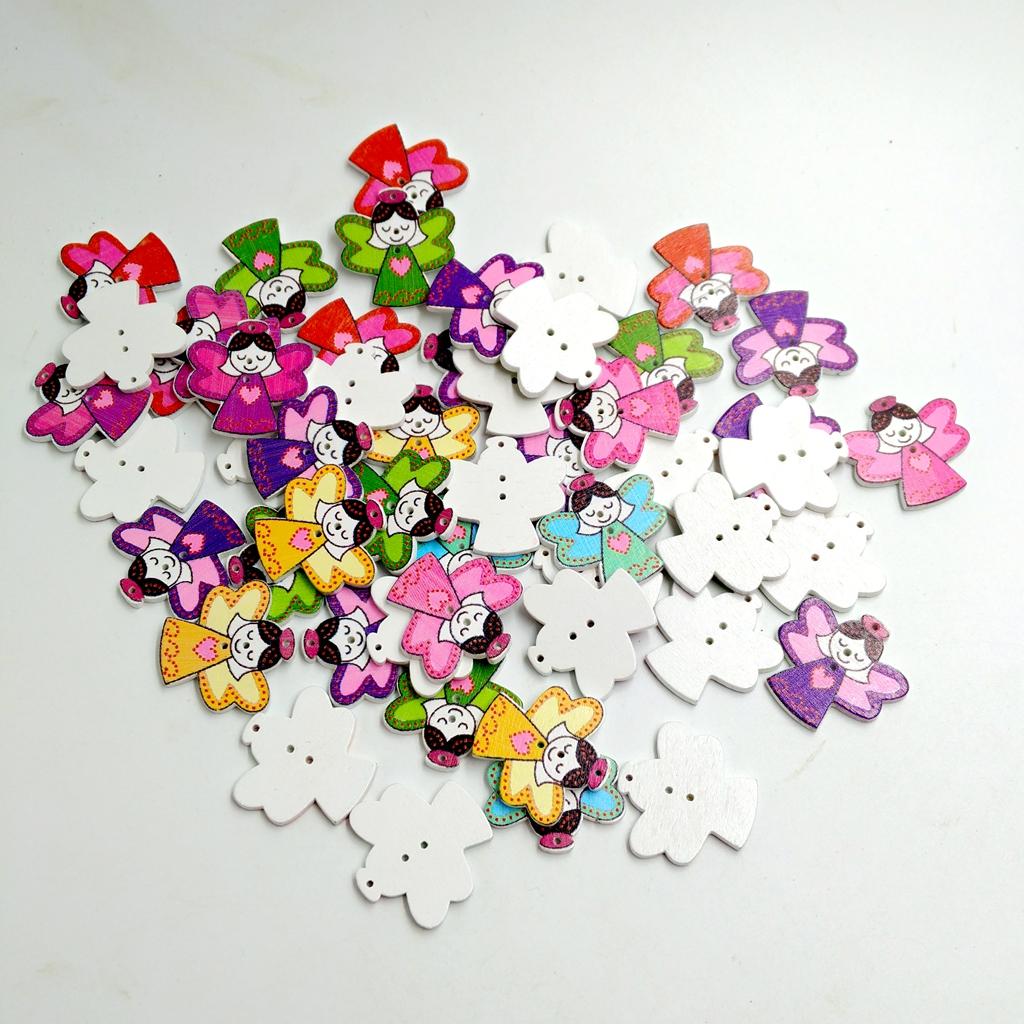 Cartoon angle girl shapes, nicely painting, good size buttons, 3 holes