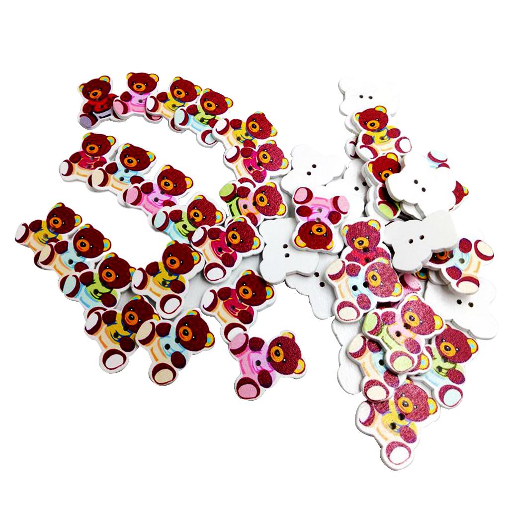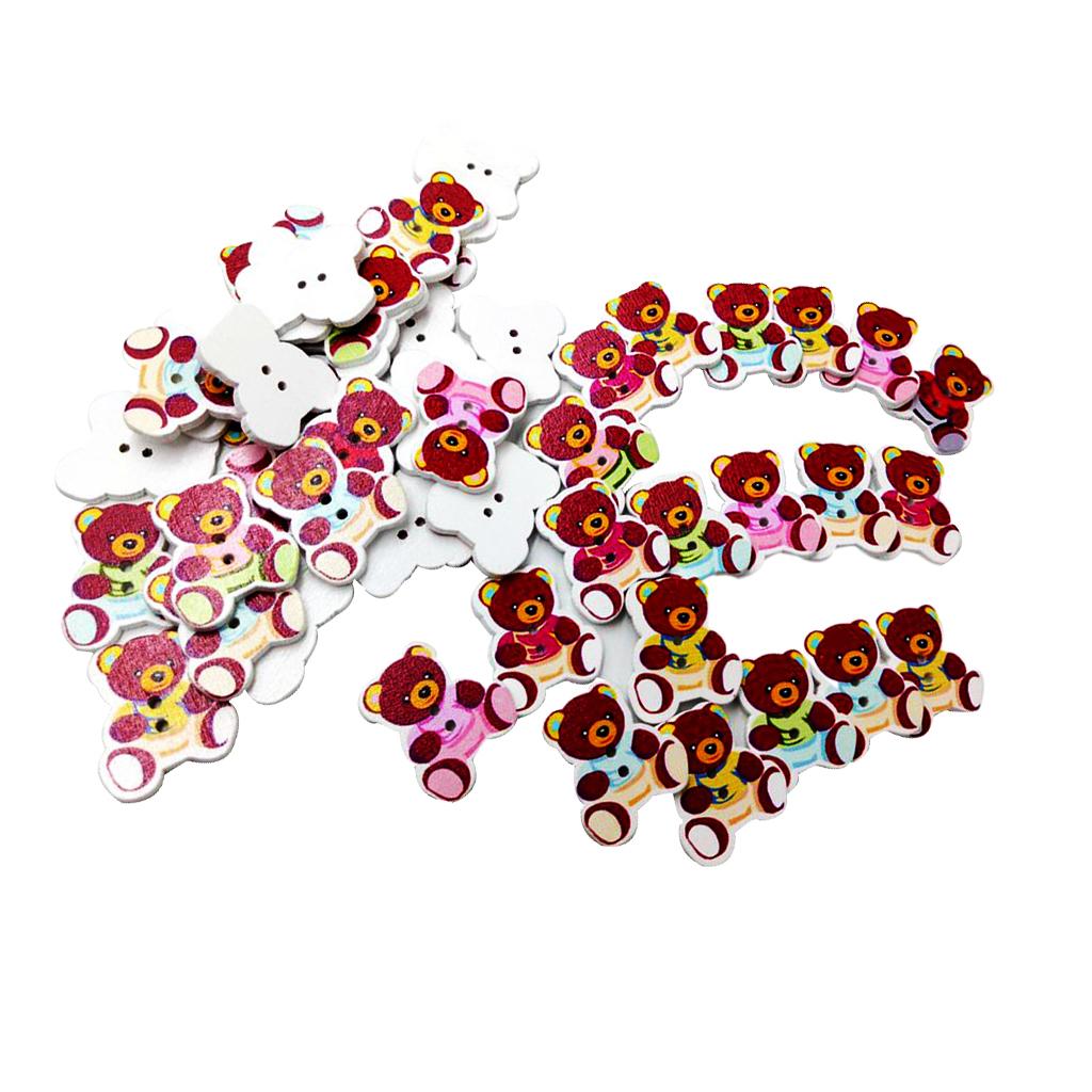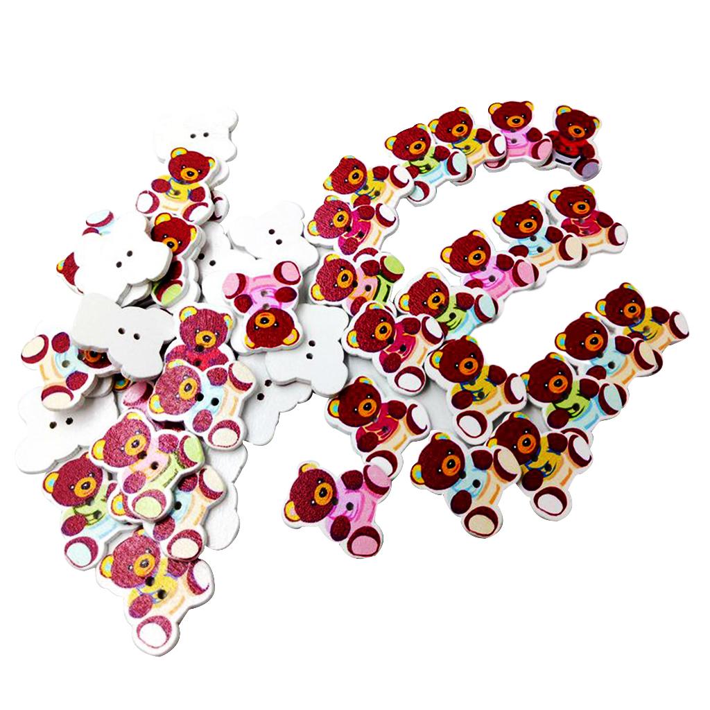 50 Pieces Wooden Bear Shape Flatback 2-holes Buttons Sewing Embellishment for Clothing Decoration