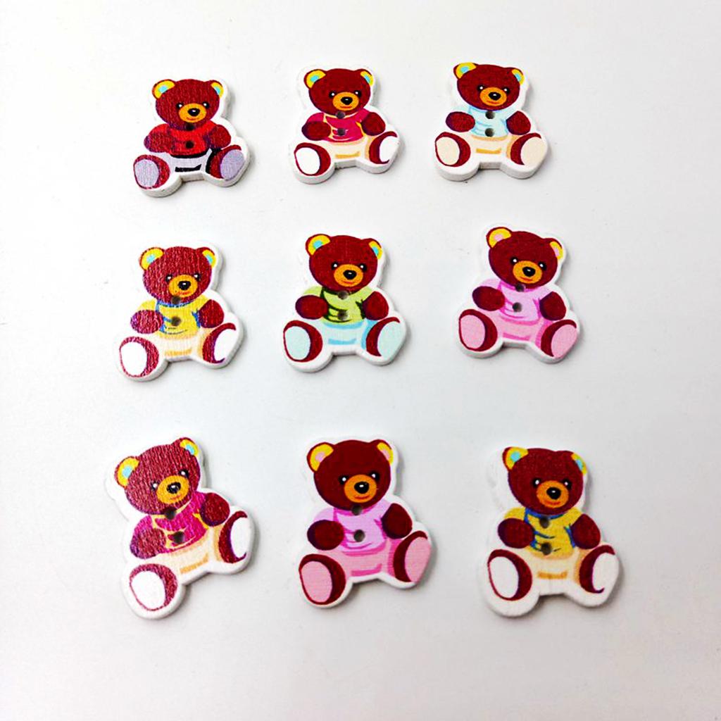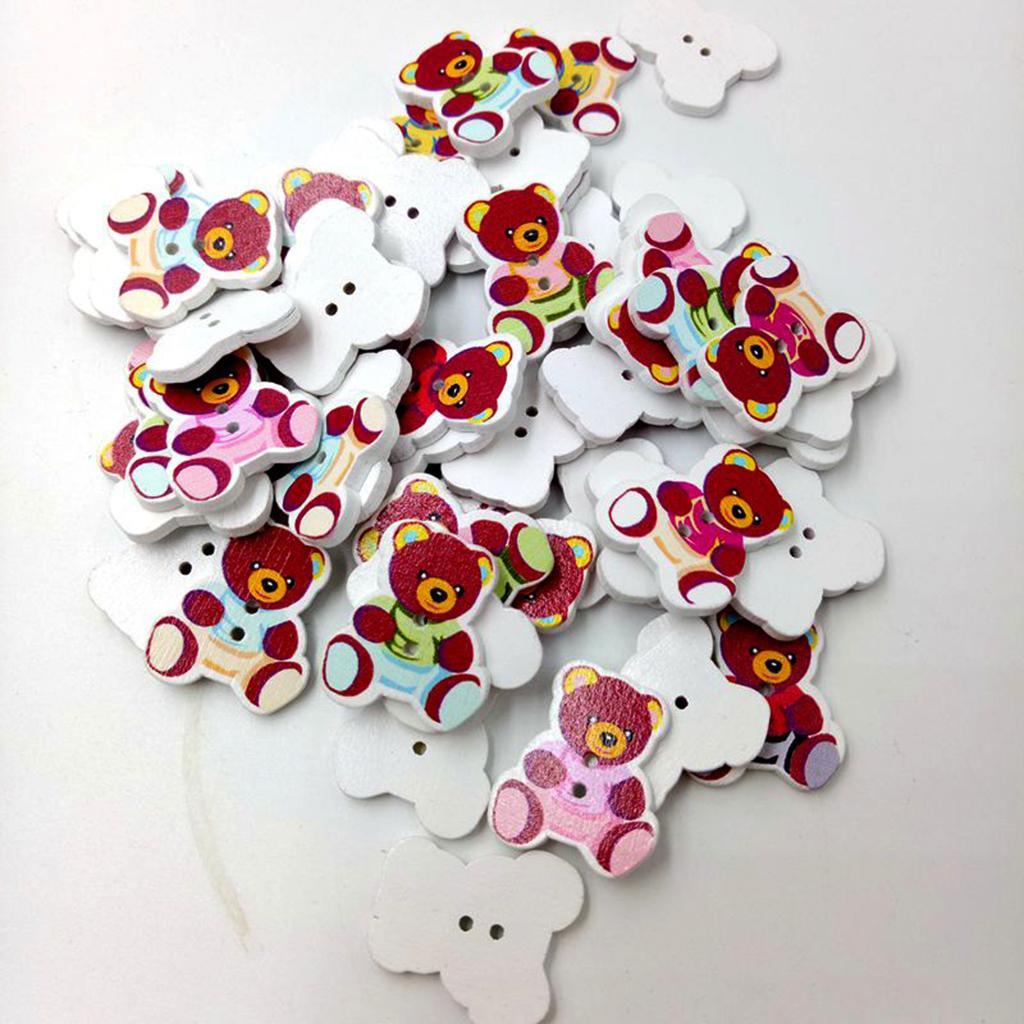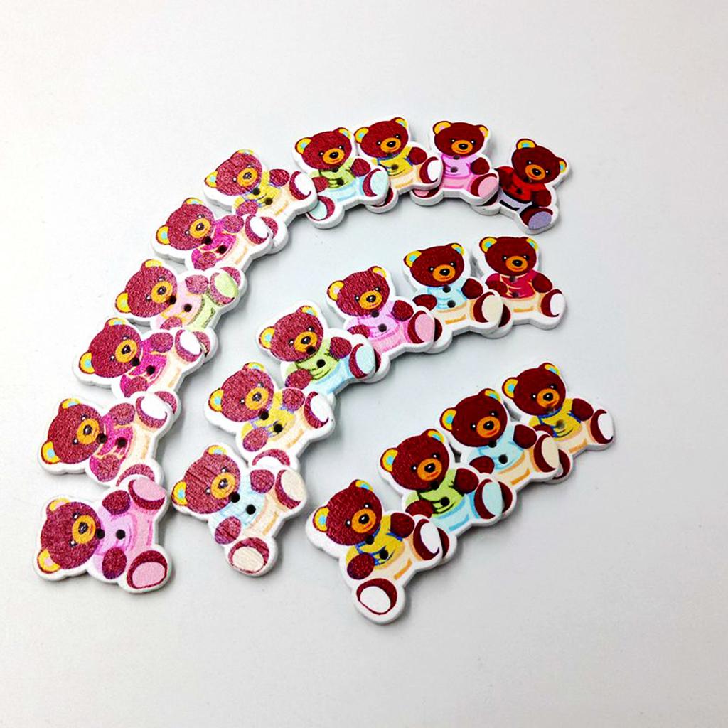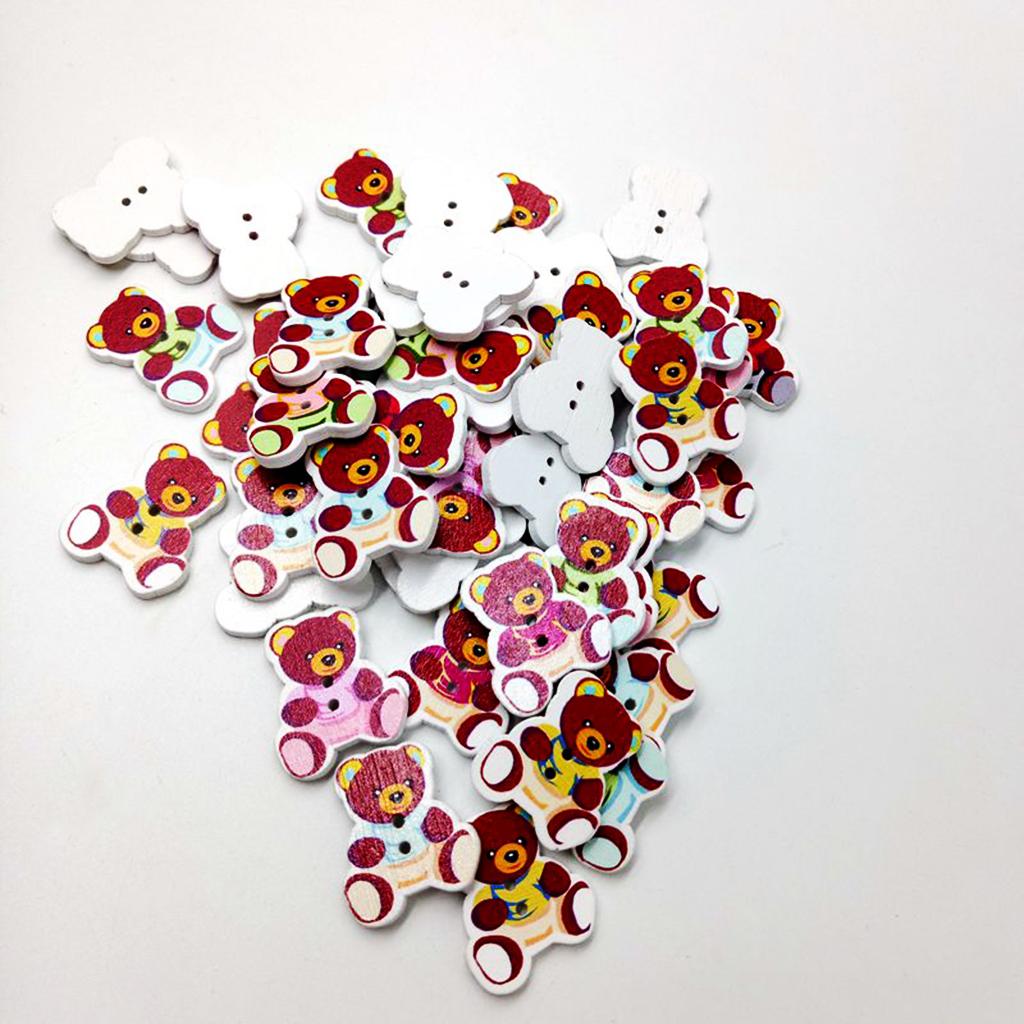 50 Pieces Wooden Bear Shape Flatback 2-holes Buttons Sewing Embellishment for Clothing Decoration