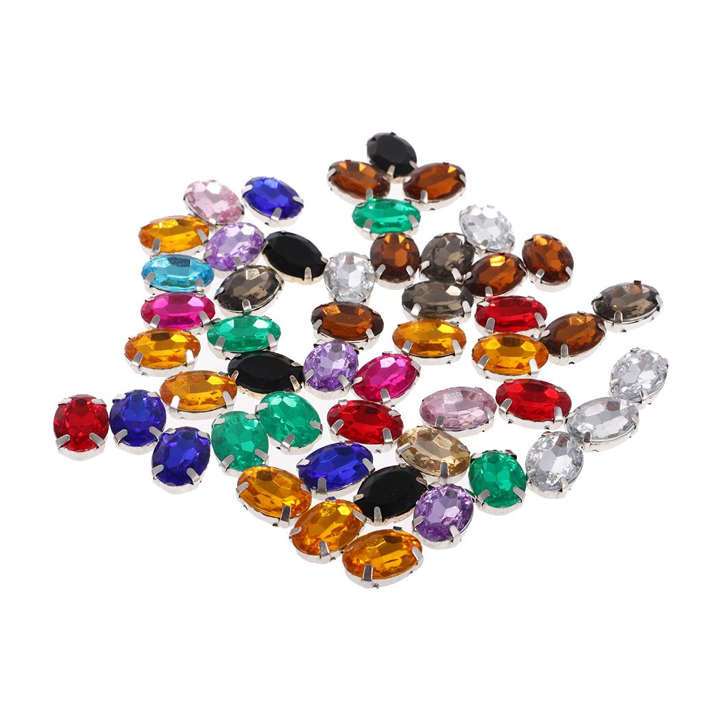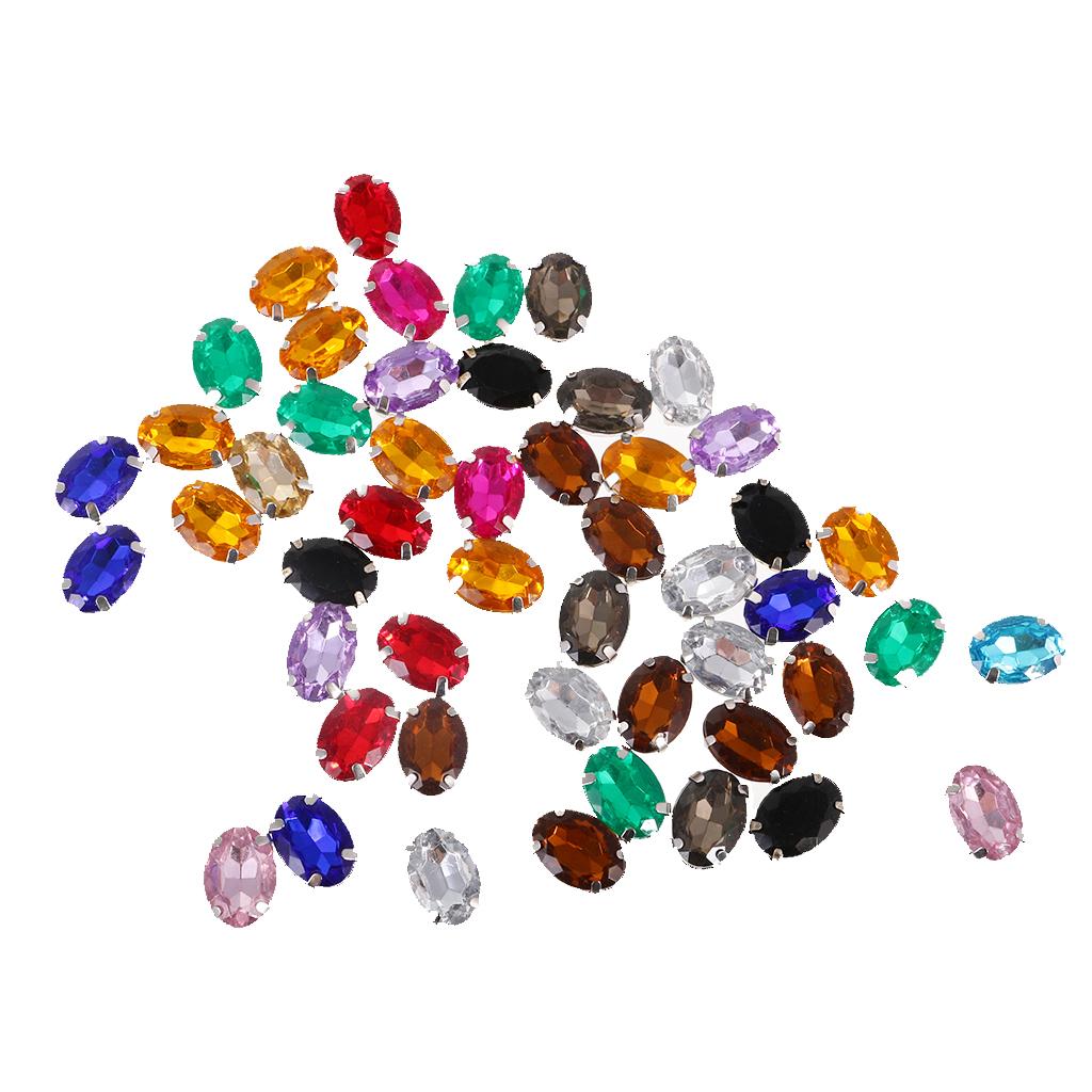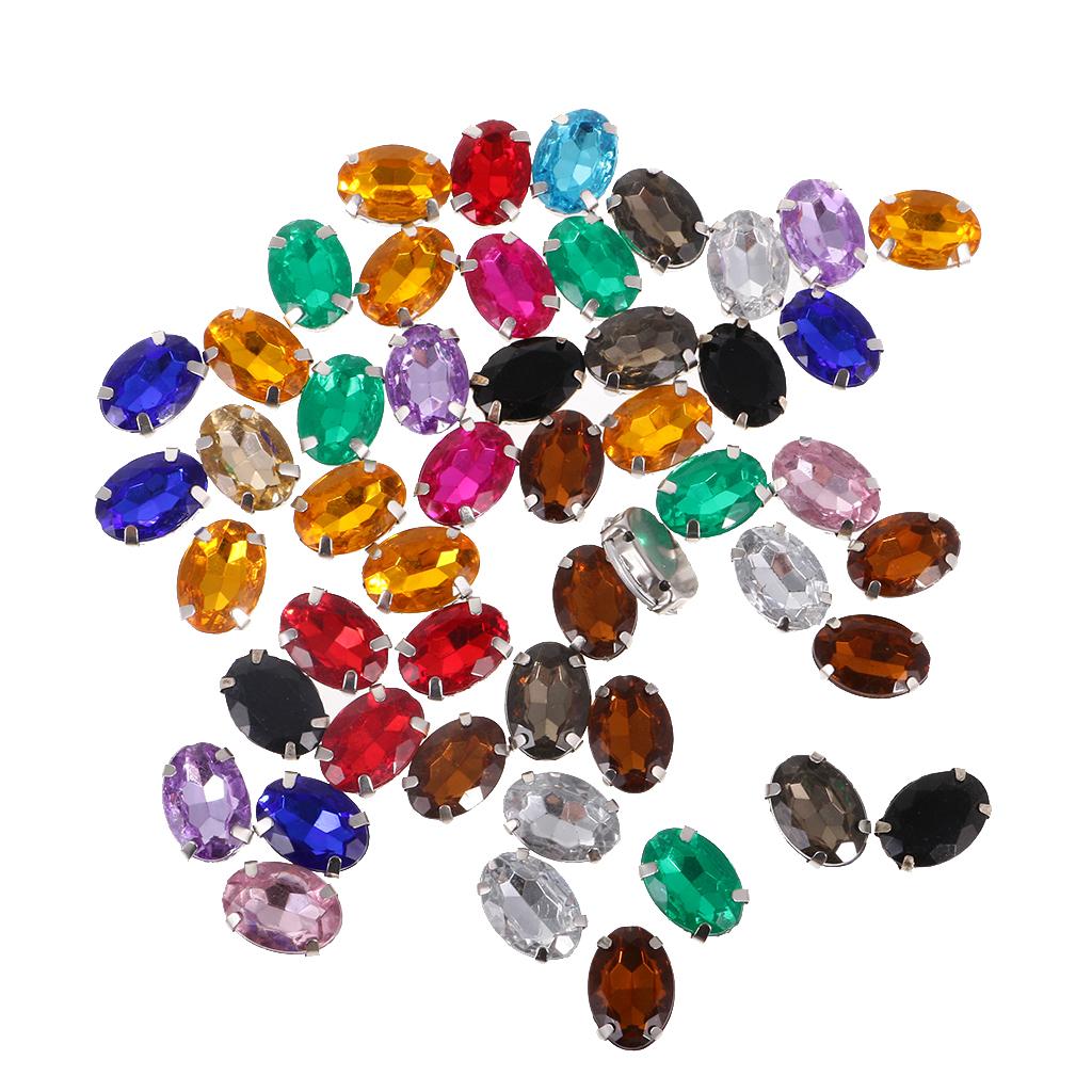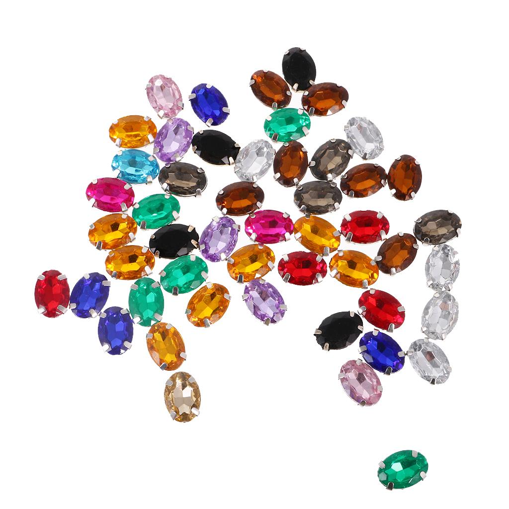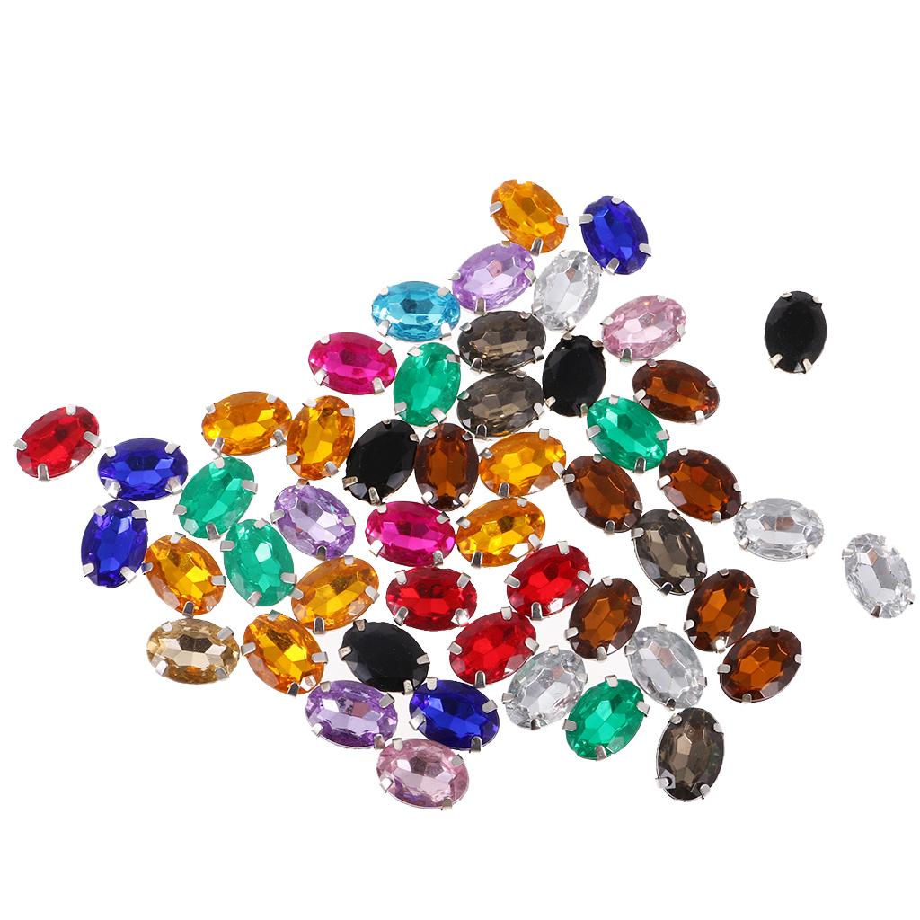 50pcs 10*14mm Oval Ellipse Acrylic Rhinestone Button Mix Color for DIY Craft